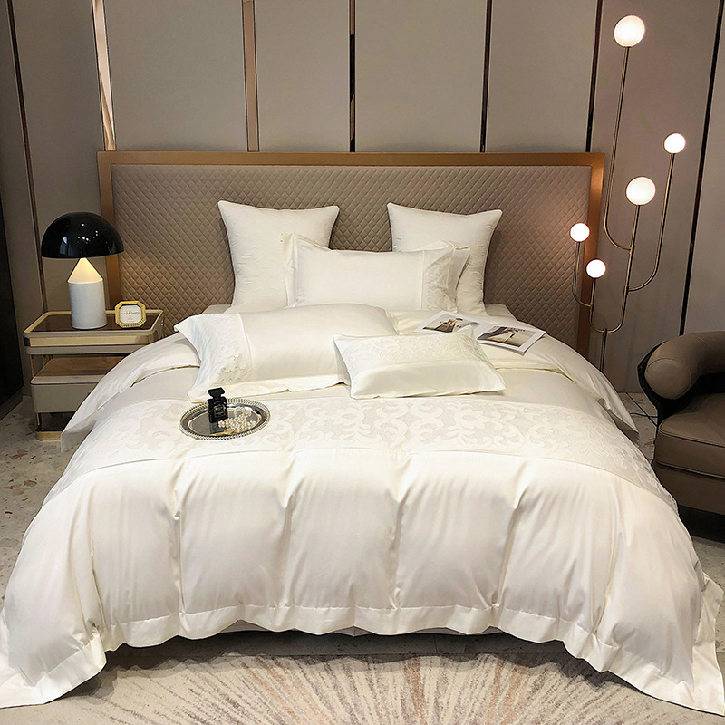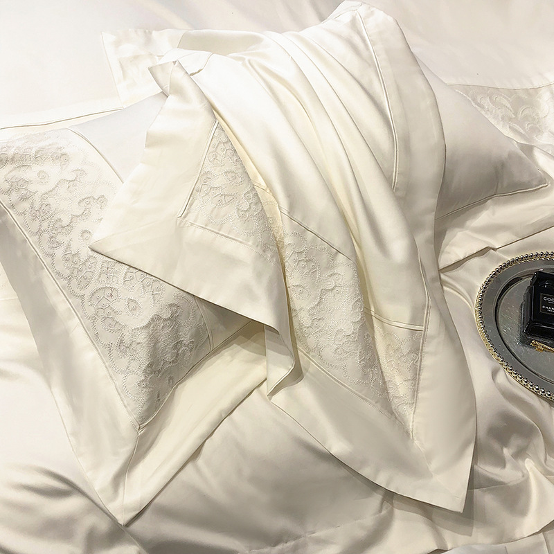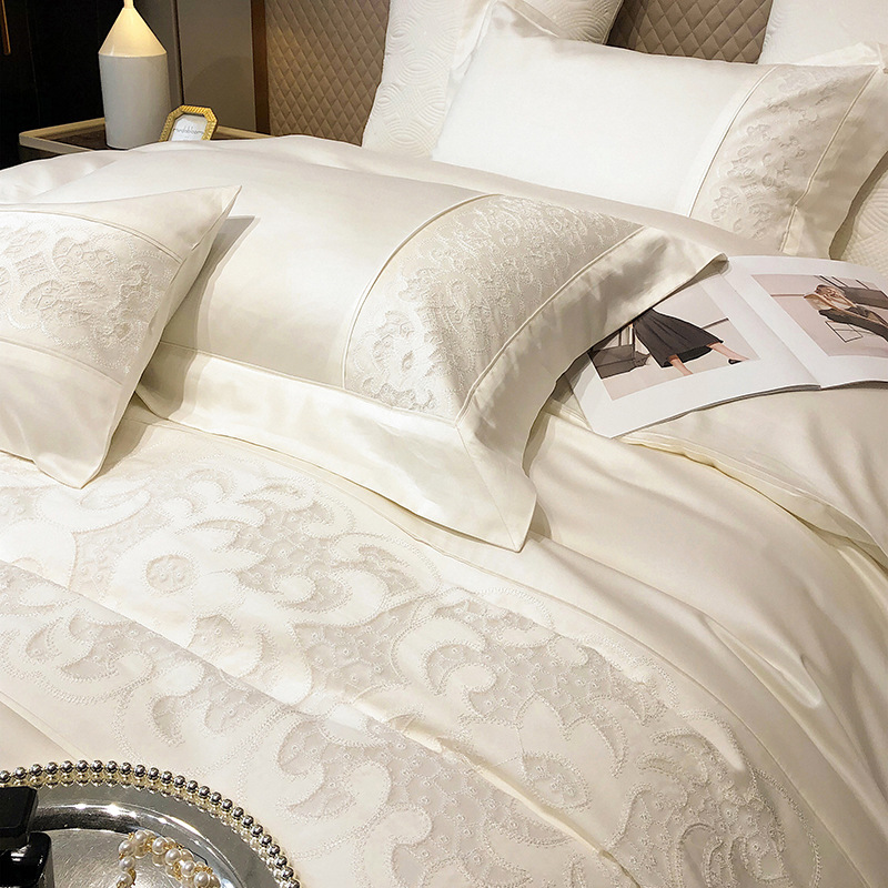 Light Luxury Wind 100 Long Staple Cotton Four-piece Romantic Lace Embroidery Stitching Quilt Cover Soft Cotton Bedding