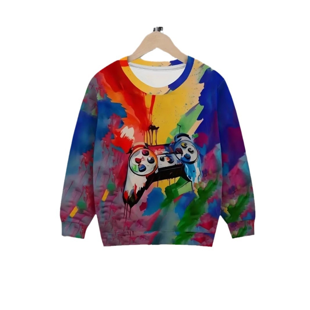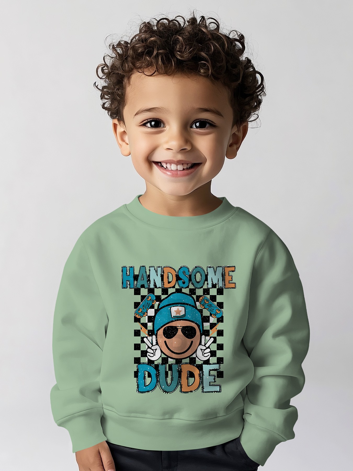 2025 New Autumn Comfortable Top Color Letter Printing Children's Clothing Cool Dry Handsome Round Neck Long Sleeve Sweat