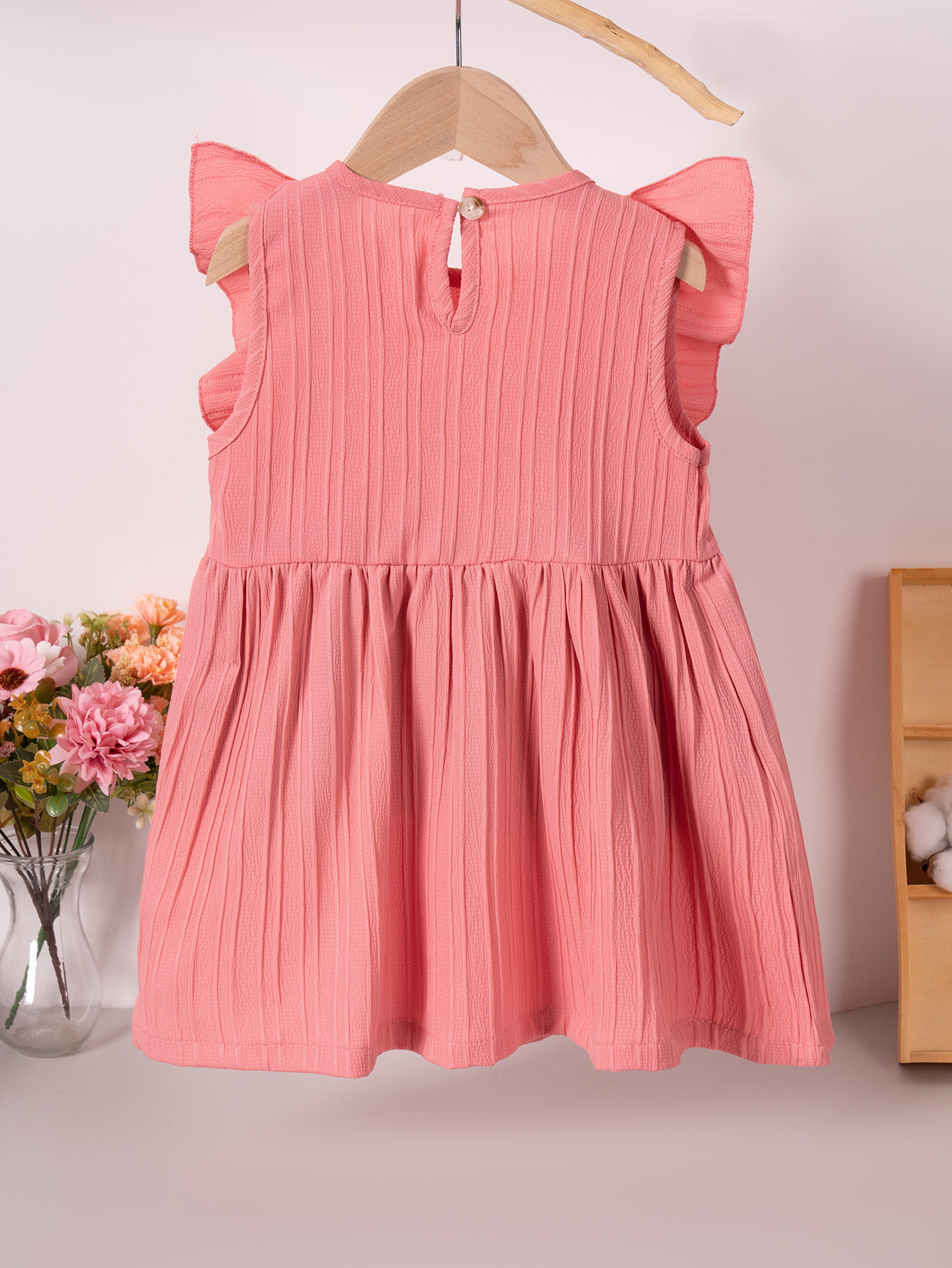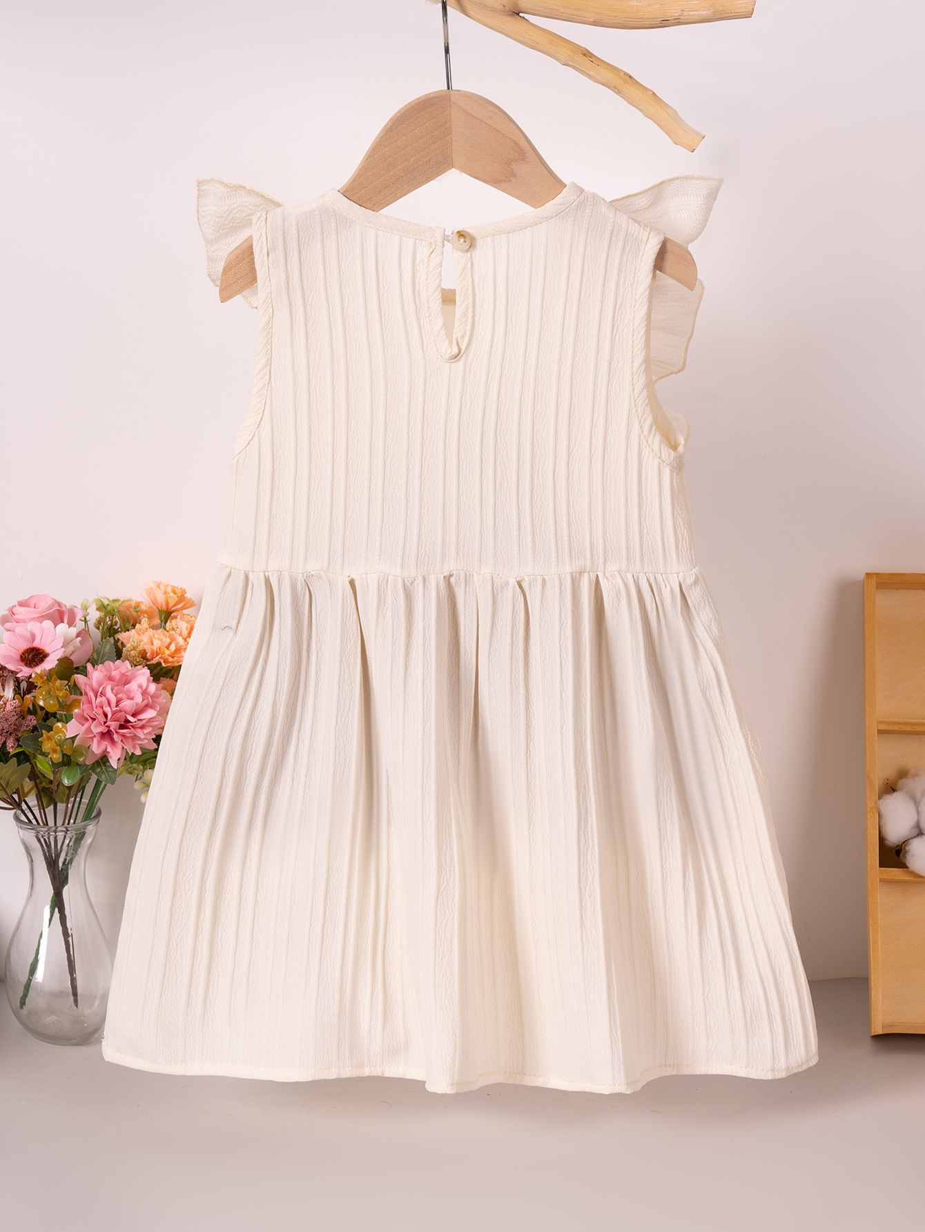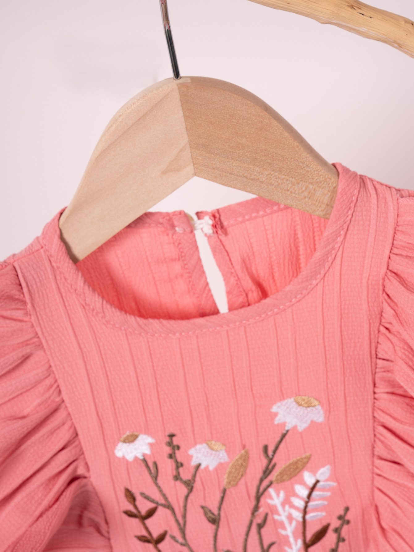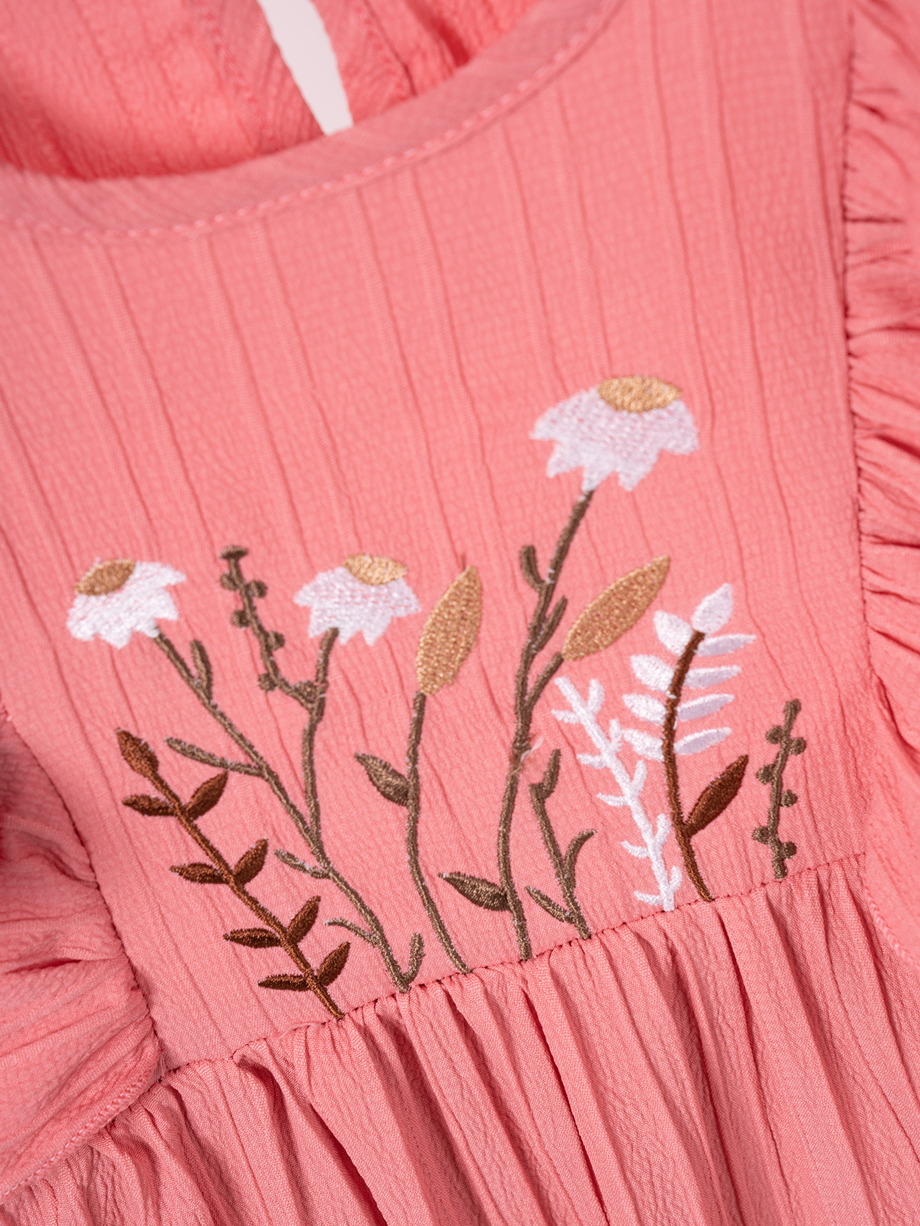 2025 Summer New Girls' Dress Embroidered Small Flower Small Flying Sleeve Pastoral Sweet Thin Solid Color Round Neck Pullover