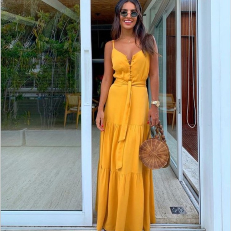 2026 Summer New European And American Women’s Fashionable Unique Button V-Neck Patchwork Slip Dress