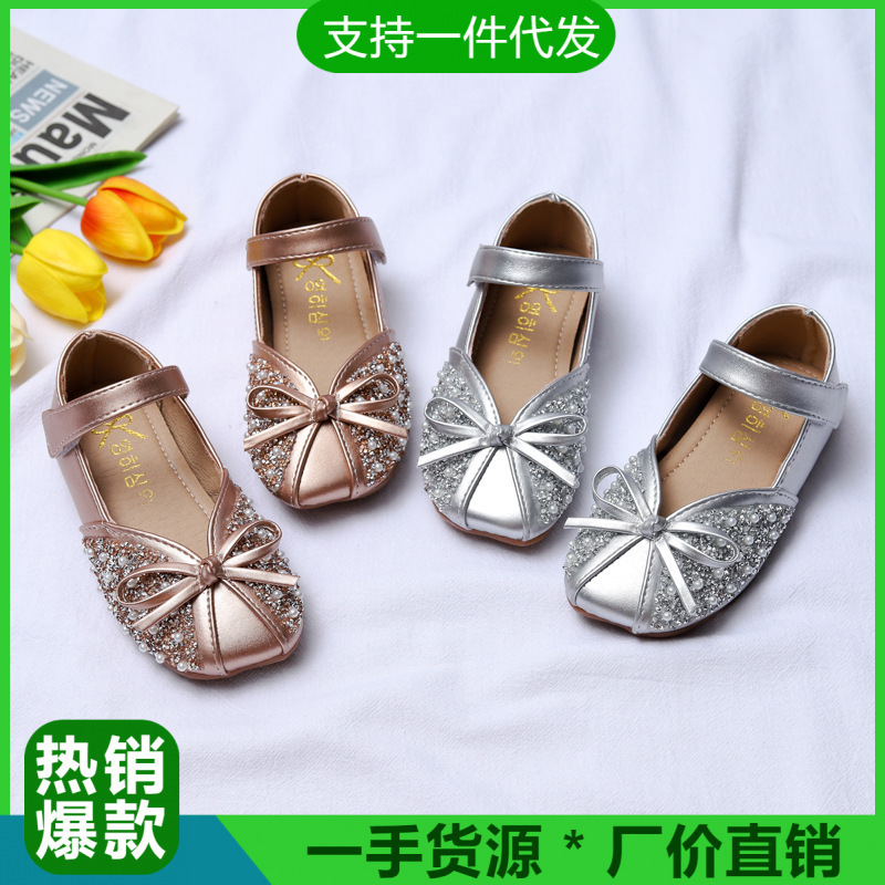 A Generation Of Girls Shiny Rhinestone Shoes 2022 Spring And Summer Soft-soled Children's Shoes Big Children Flat-soled Princess Shoes Factory