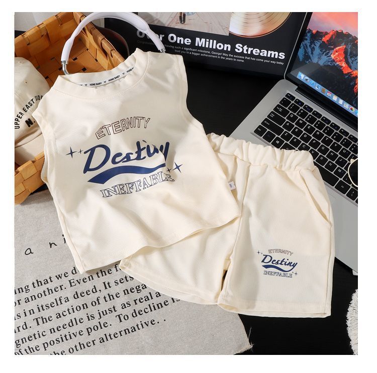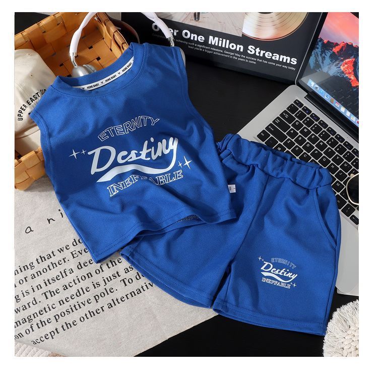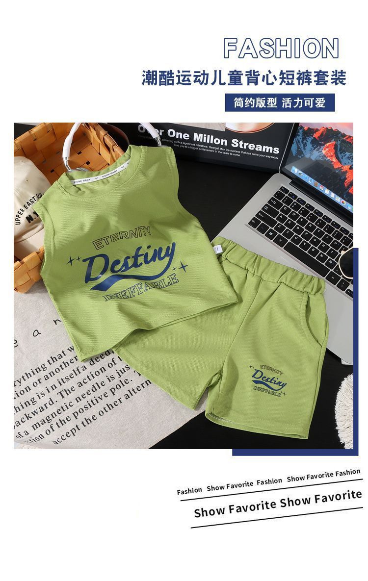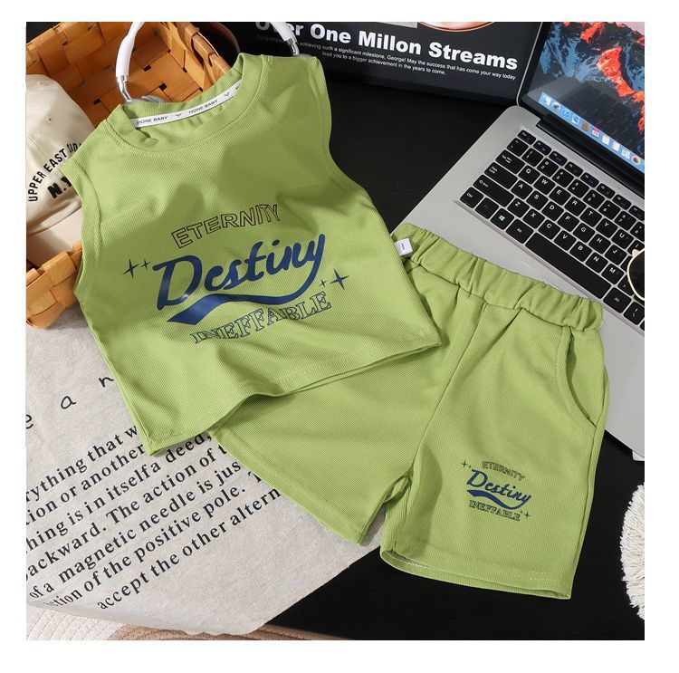 Children's Boys Sports Suit 2025 New Sleeveless Shorts Vest Two-piece Summer Thin Wide Shoulder Summer Fashion