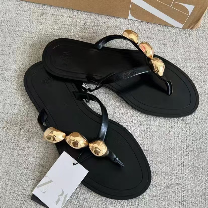 Cross-border New European And American Large Size Muffin All-in-one Slipper Solid Color Buckle Flat Women's Sandals Shoes