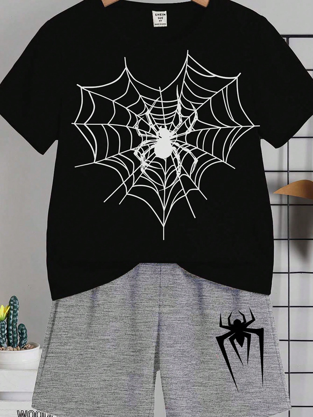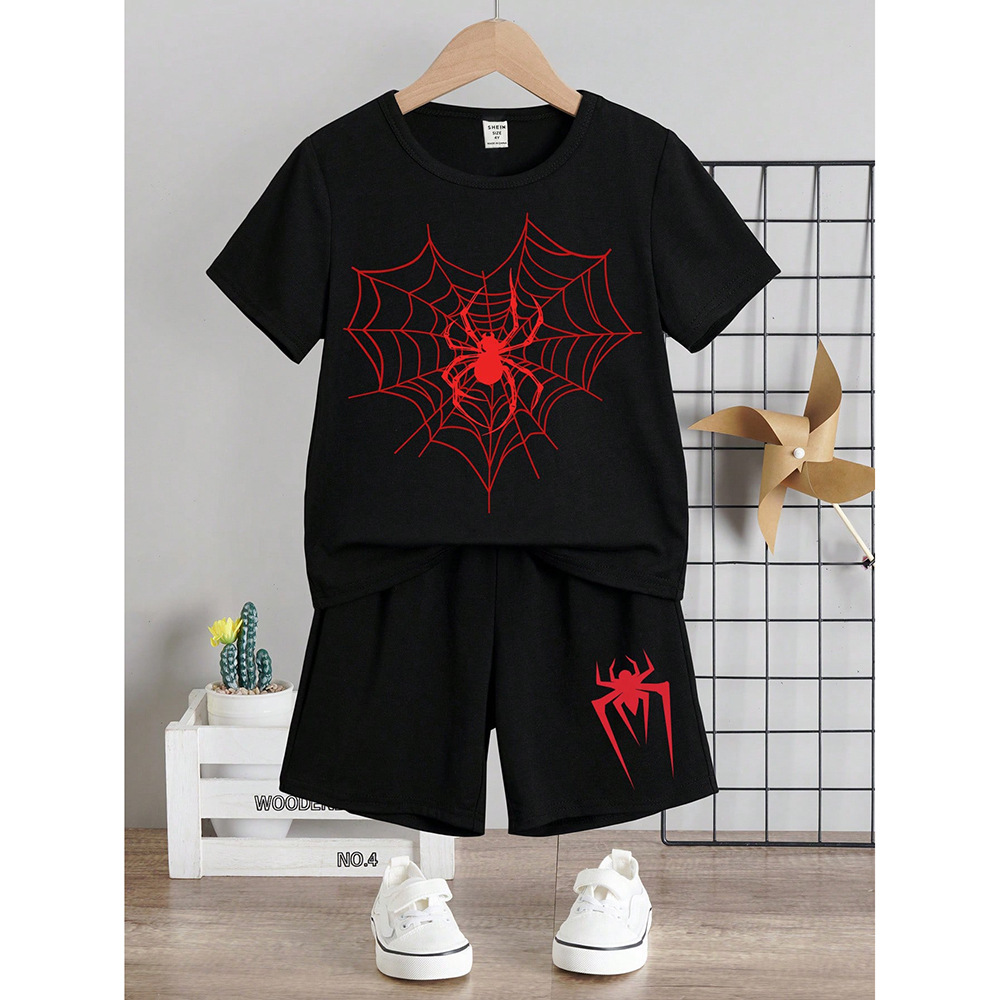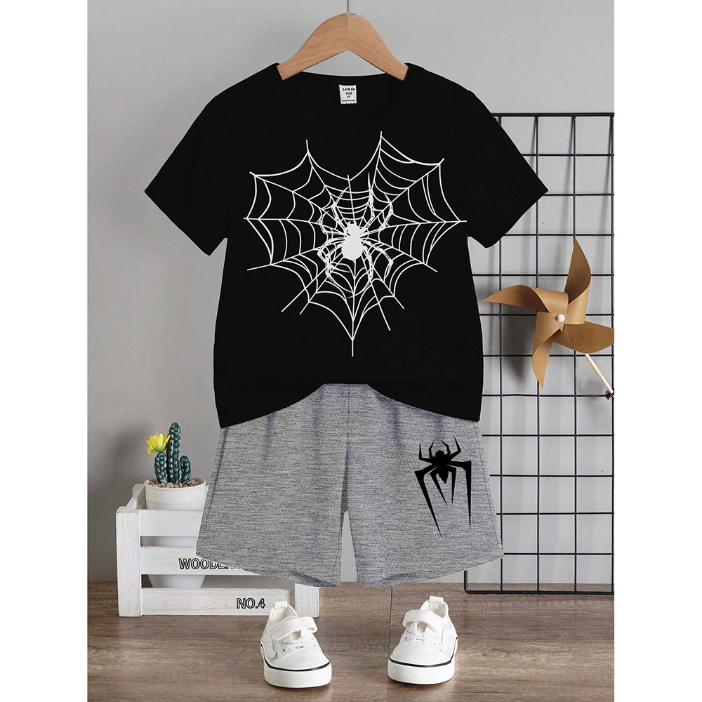 European And American Foreign Trade Amazon Summer New Hot Spider Printed Children's Wear Suit Short Sleeve T-Shirt Shorts Big Children