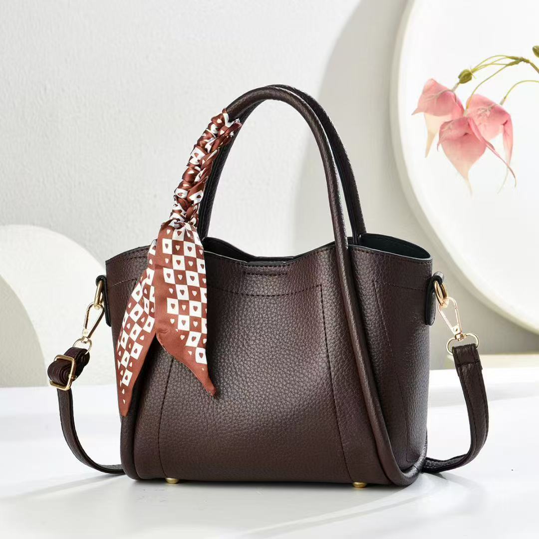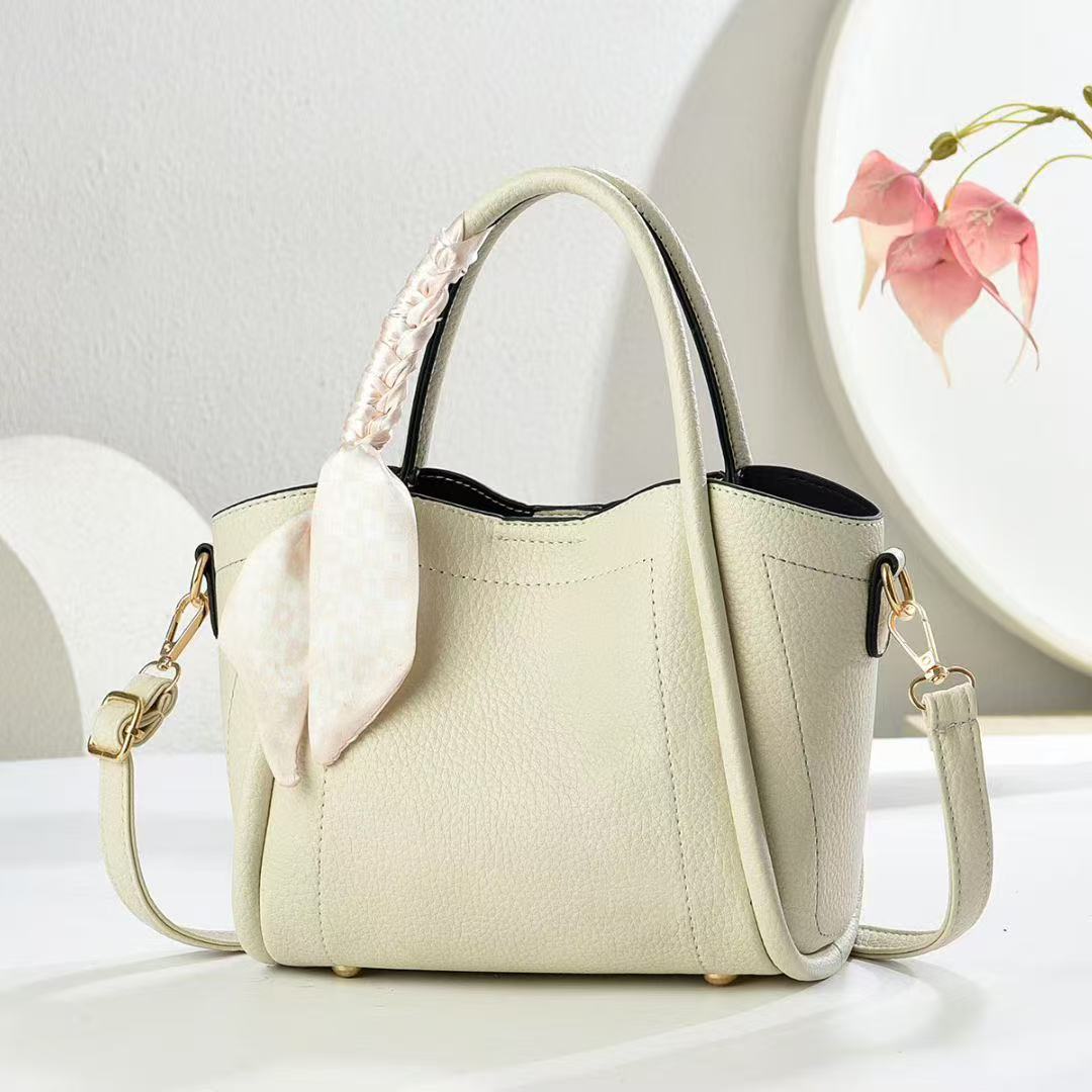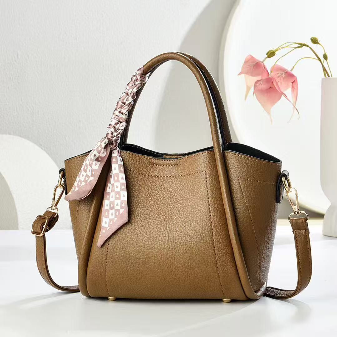 European And American Vintage Litchi Pattern Handbag All-match High Textile Soft Leather Bag Internet Popular Fashionable Crossbody Bag With Lock