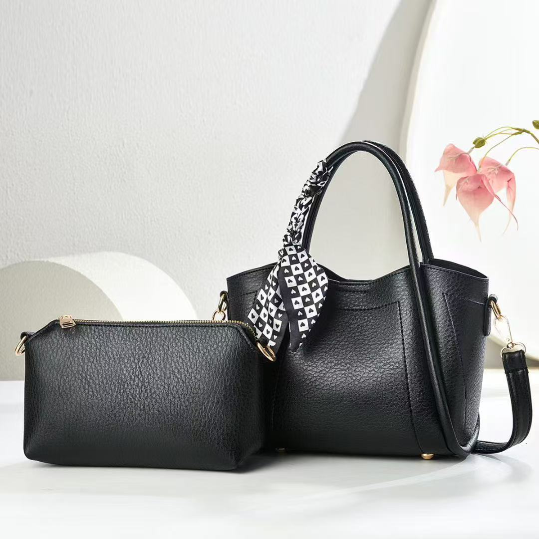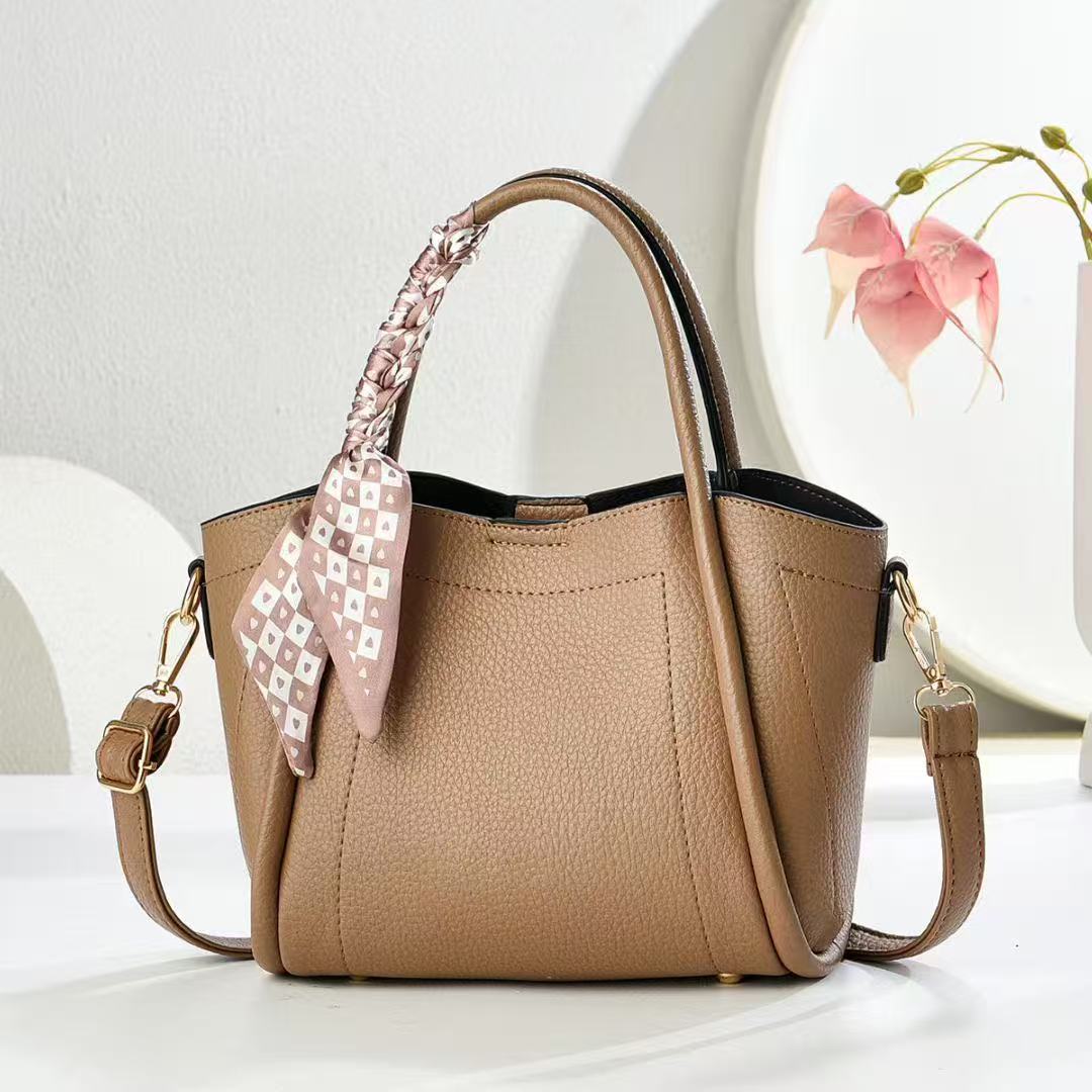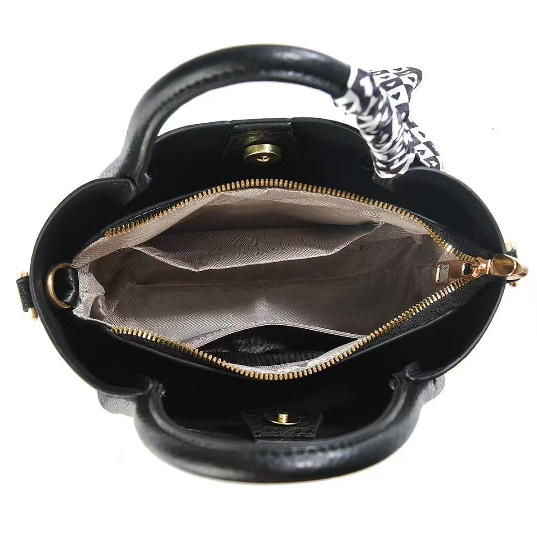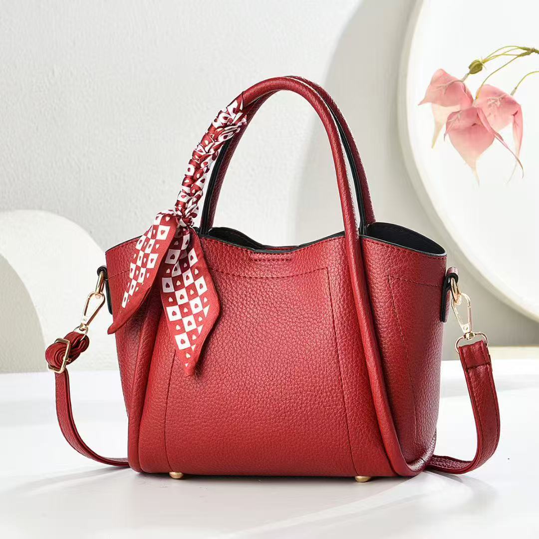 European And American Vintage Litchi Pattern Handbag All-match High Textile Soft Leather Bag Internet Popular Fashionable Crossbody Bag With Lock