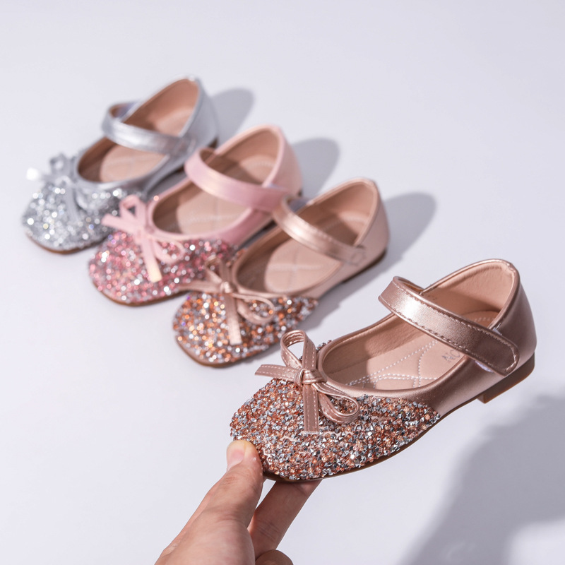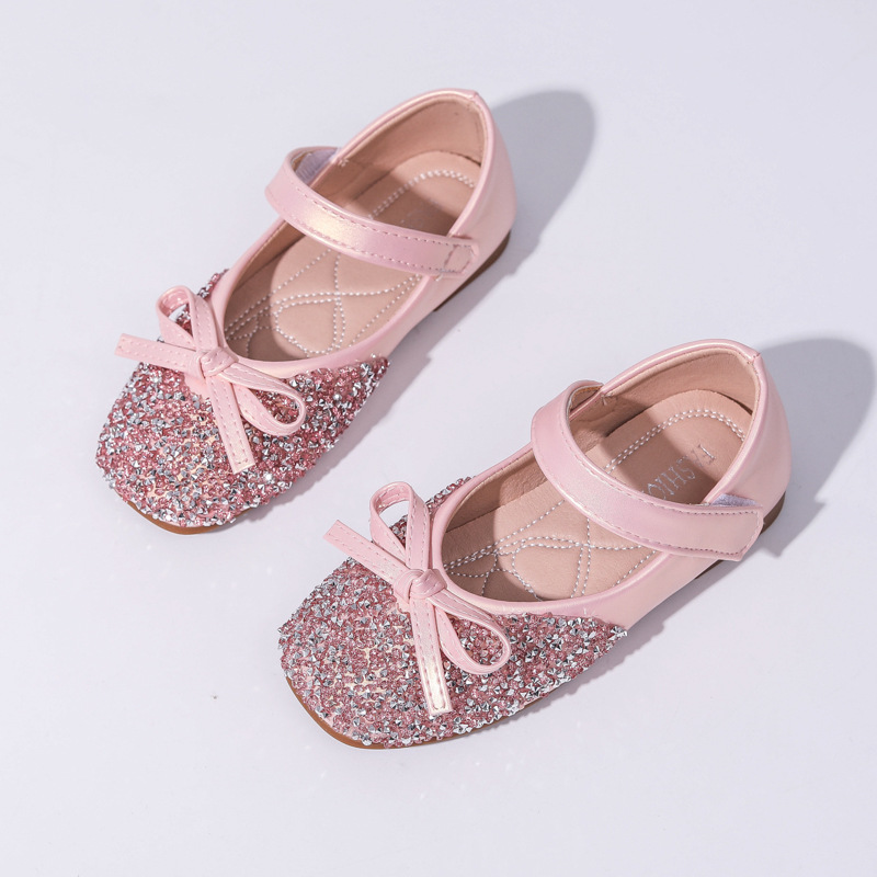 Foreign Trade 2025 Spring And Autumn New Children And Girls' Princess Leather Shoes Rhinestone Korean Style Small And Medium-sized Children's Baby Dance Shoes Single-layer Shoes