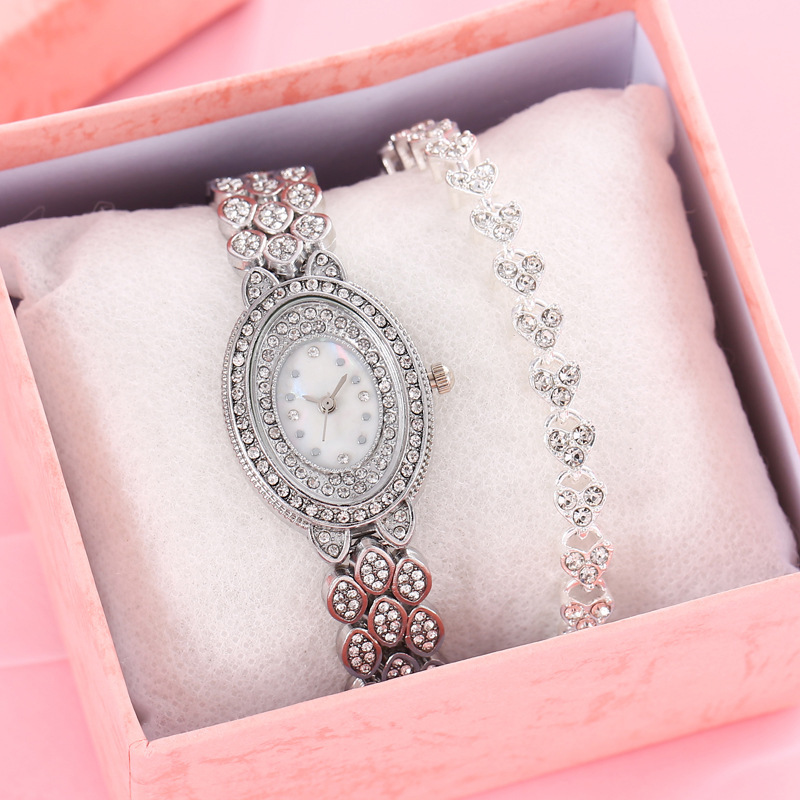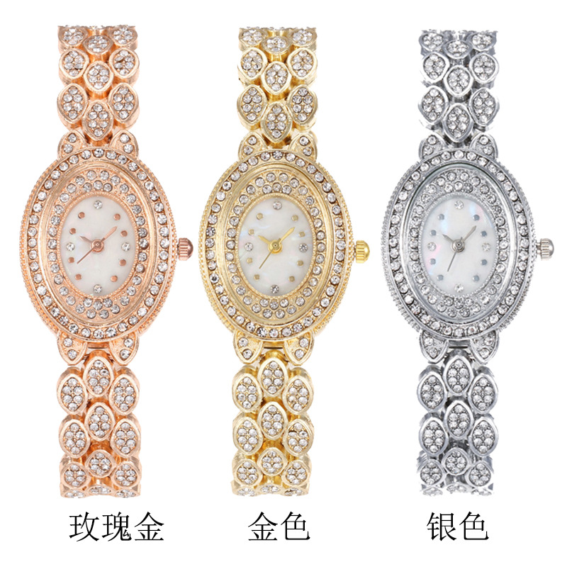 Foreign Trade Cross-border Explosions Trembles Hot Fashion Full Diamond Chain Watch Suit Oval Temperament Small Dial Ladies Watch