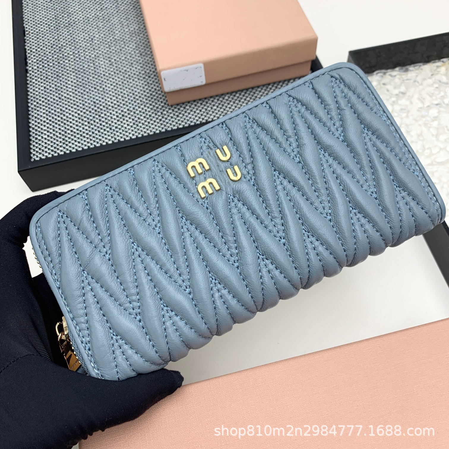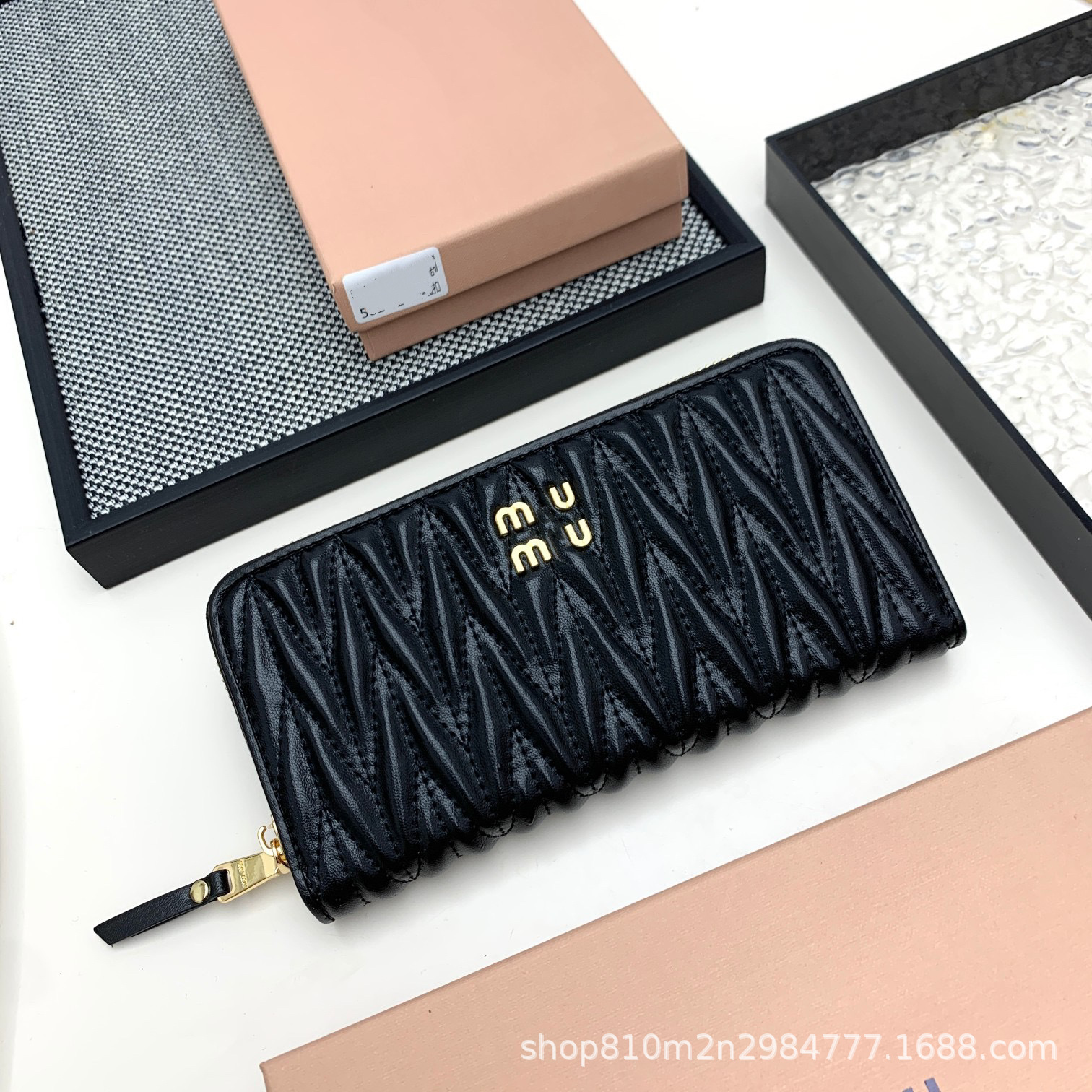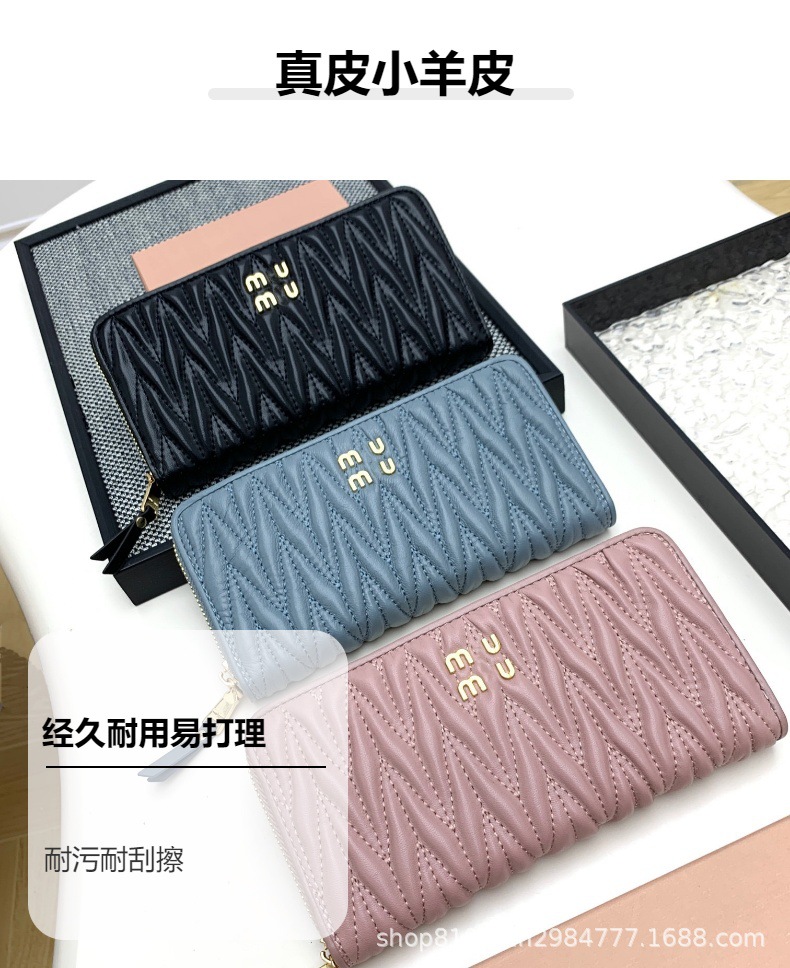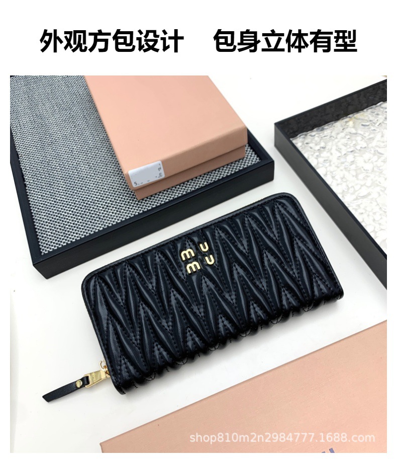 Foreign Trade Wholesale Leather Long Zipper Wallet Classic Concave-convex Pleated Ladies Long Wallet Fashion Sweet Many