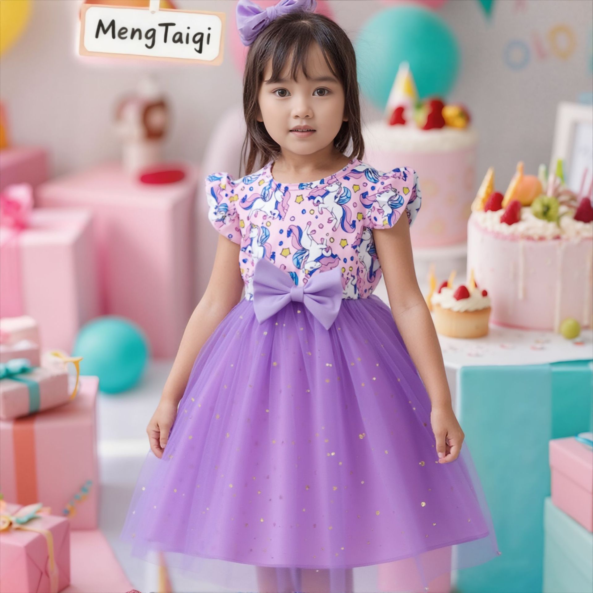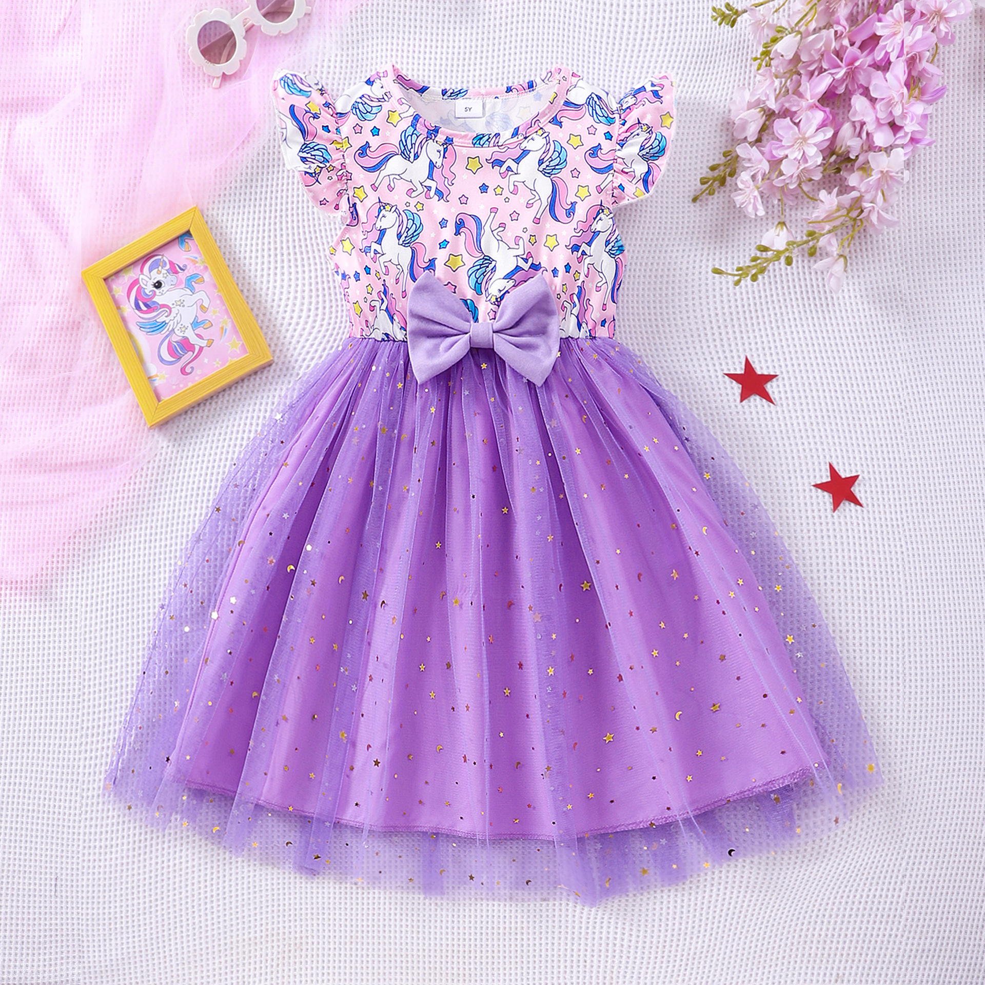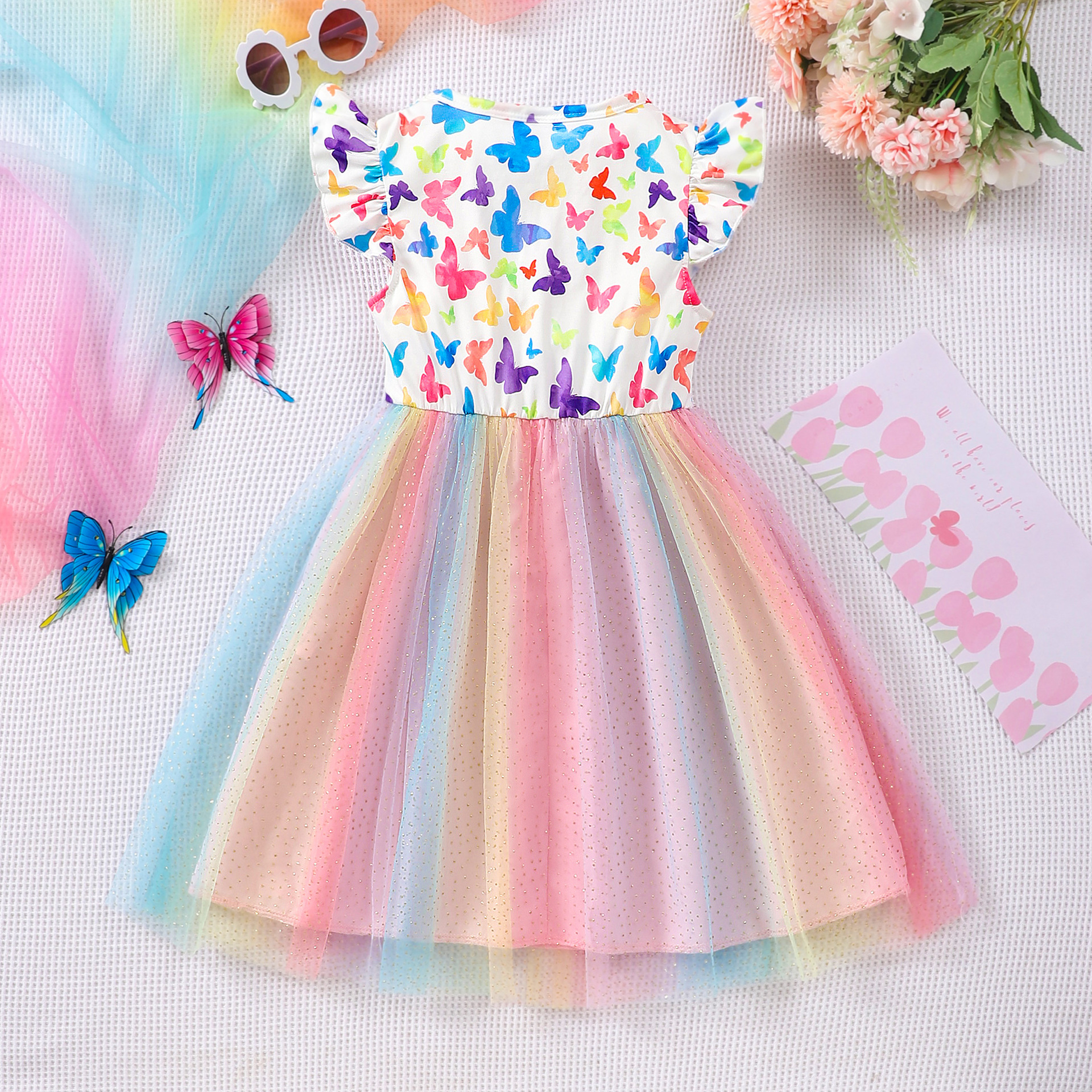 Girl's (Small) Dress, Summer Flying Sleeve Fish Scale Mesh