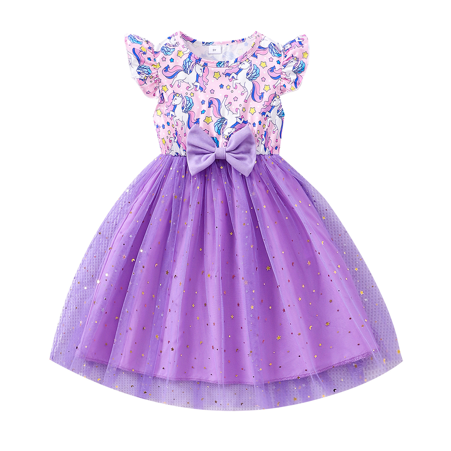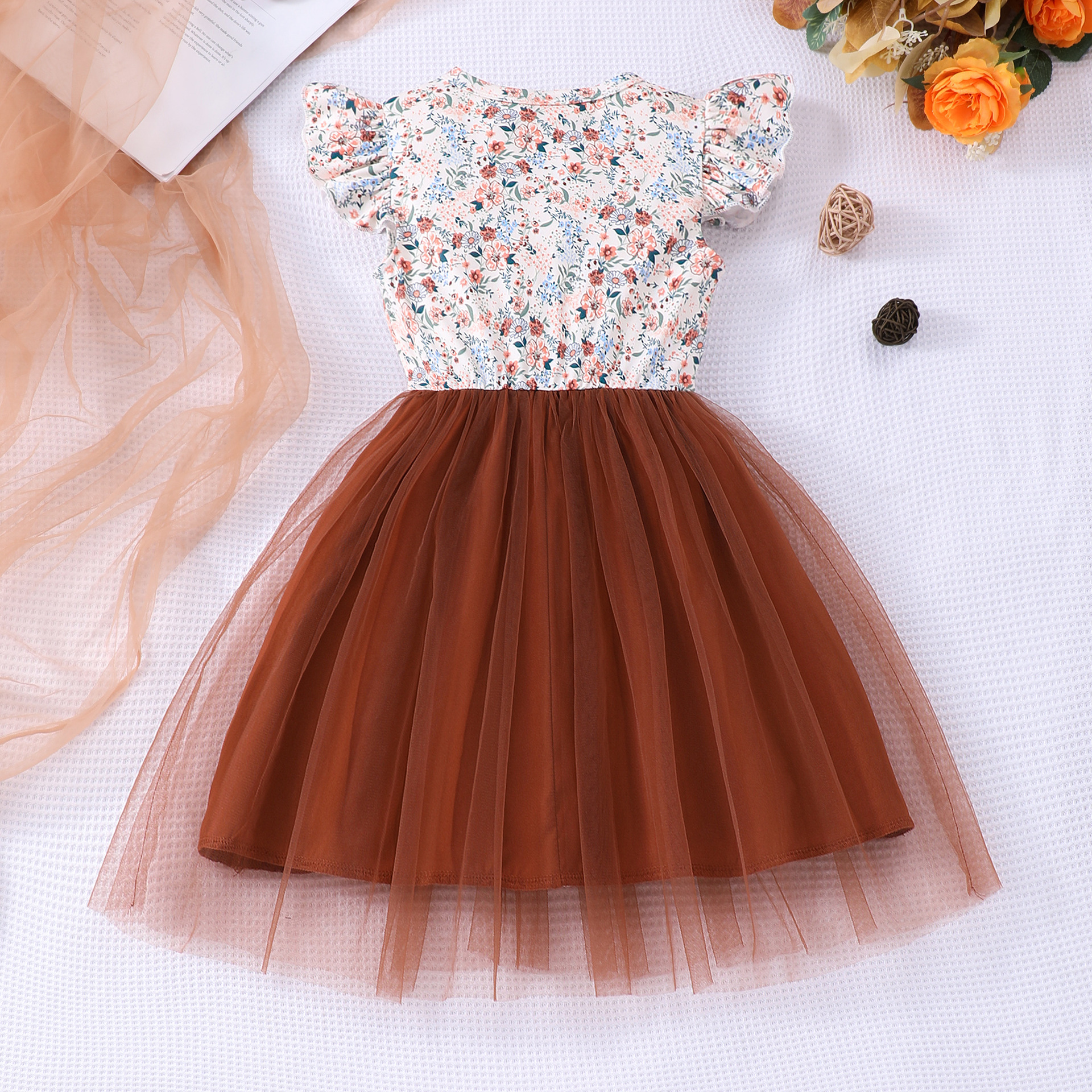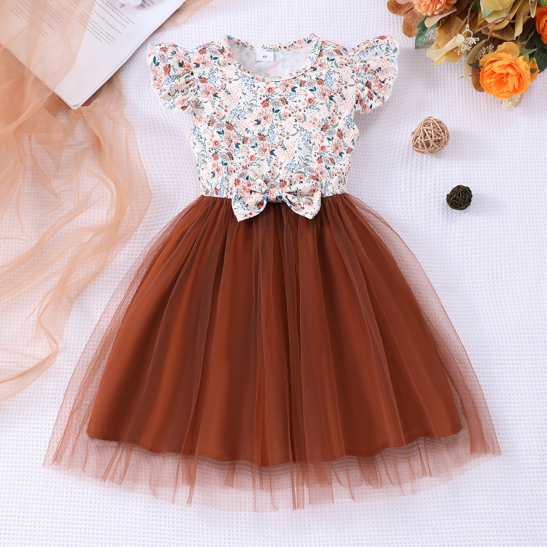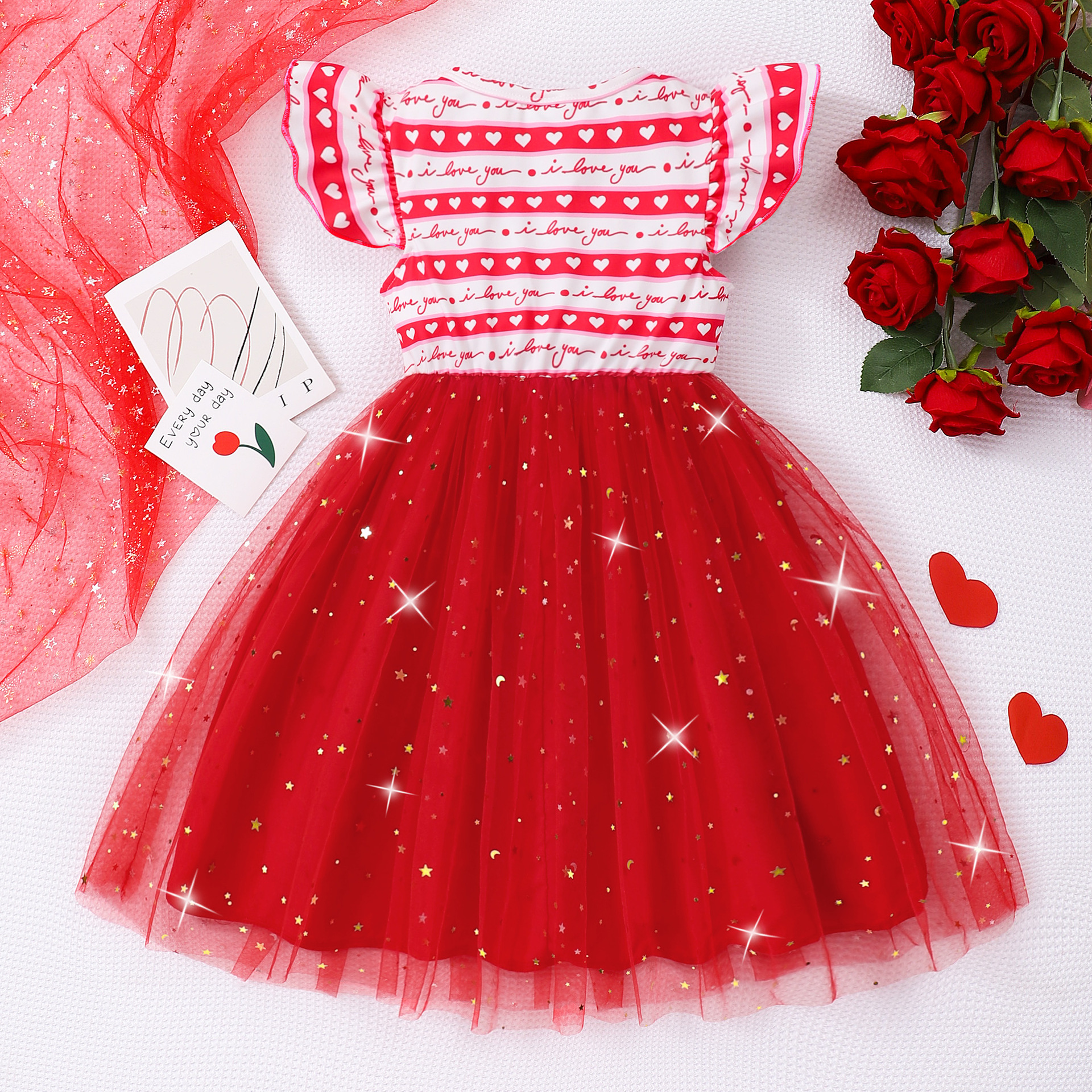 Girl's (Small) Dress, Summer Flying Sleeve Fish Scale Mesh