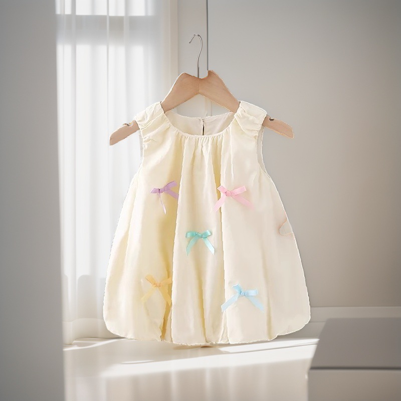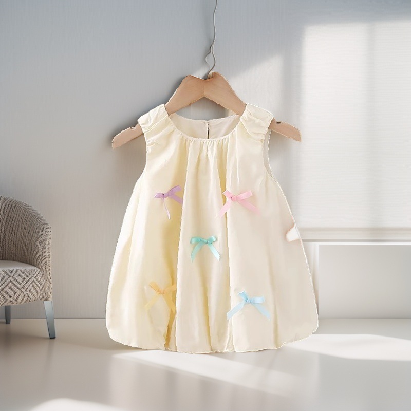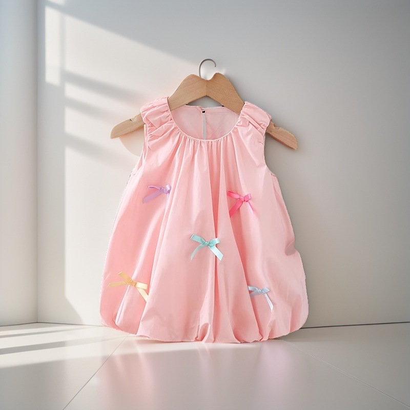 Girls' Princess Vest Dress 2025 Korean Style Baby Girl Summer Pink Sweet Bow Sleeveless Bud Dress