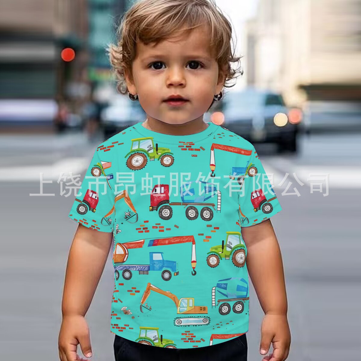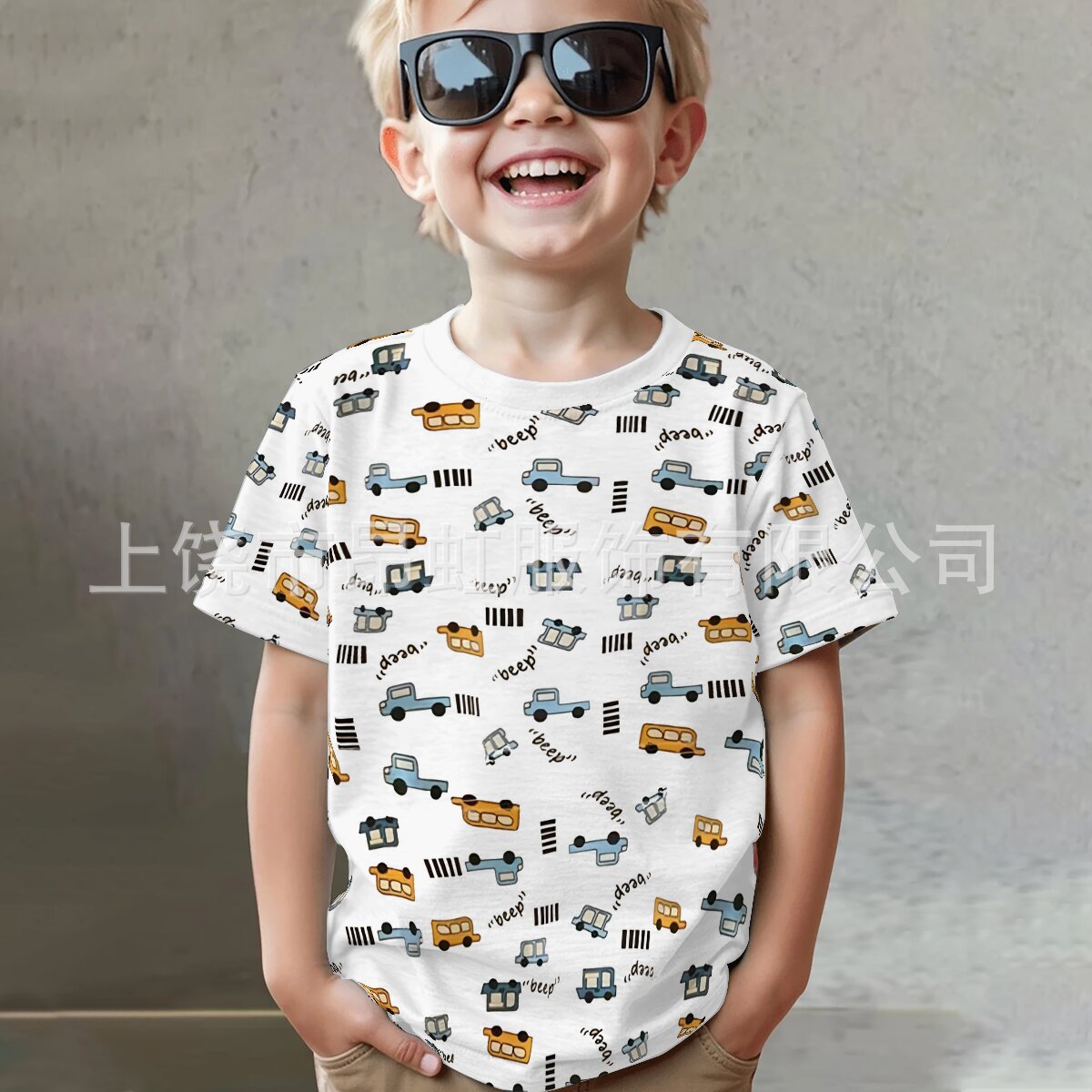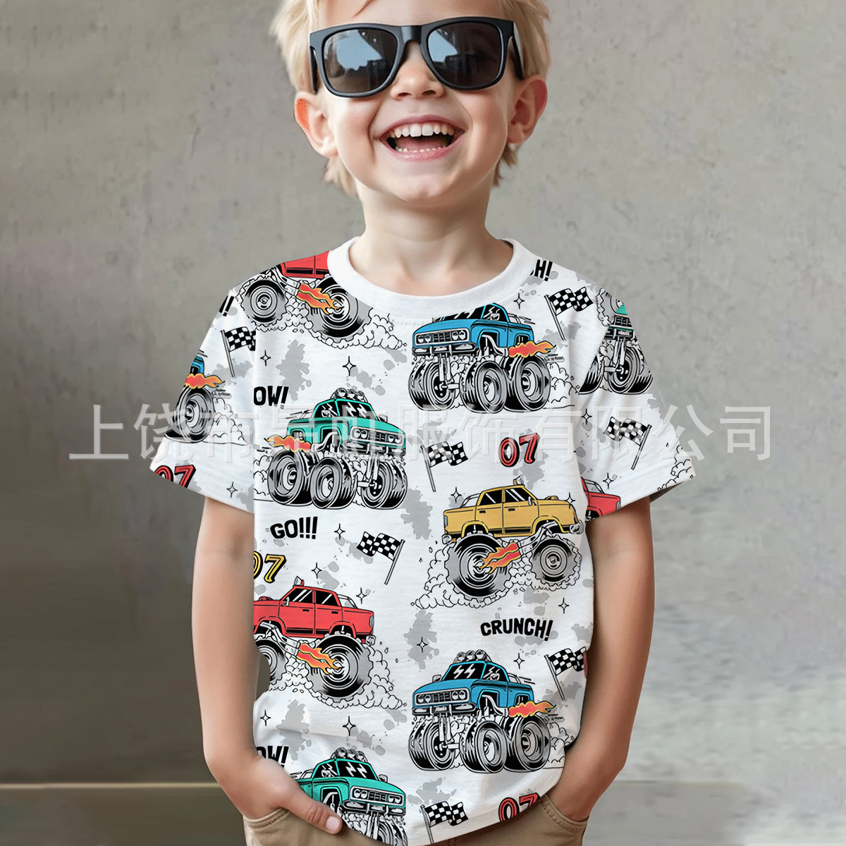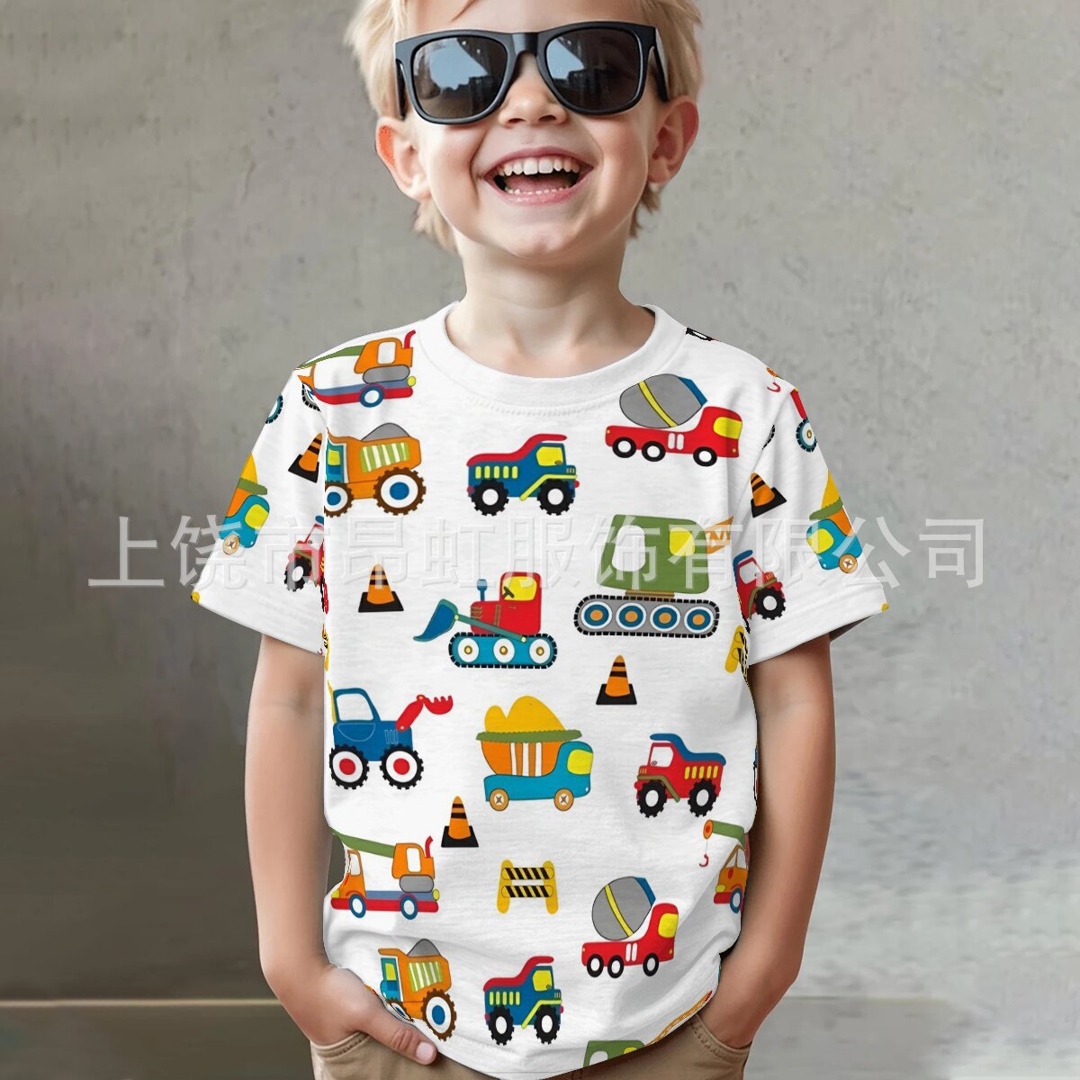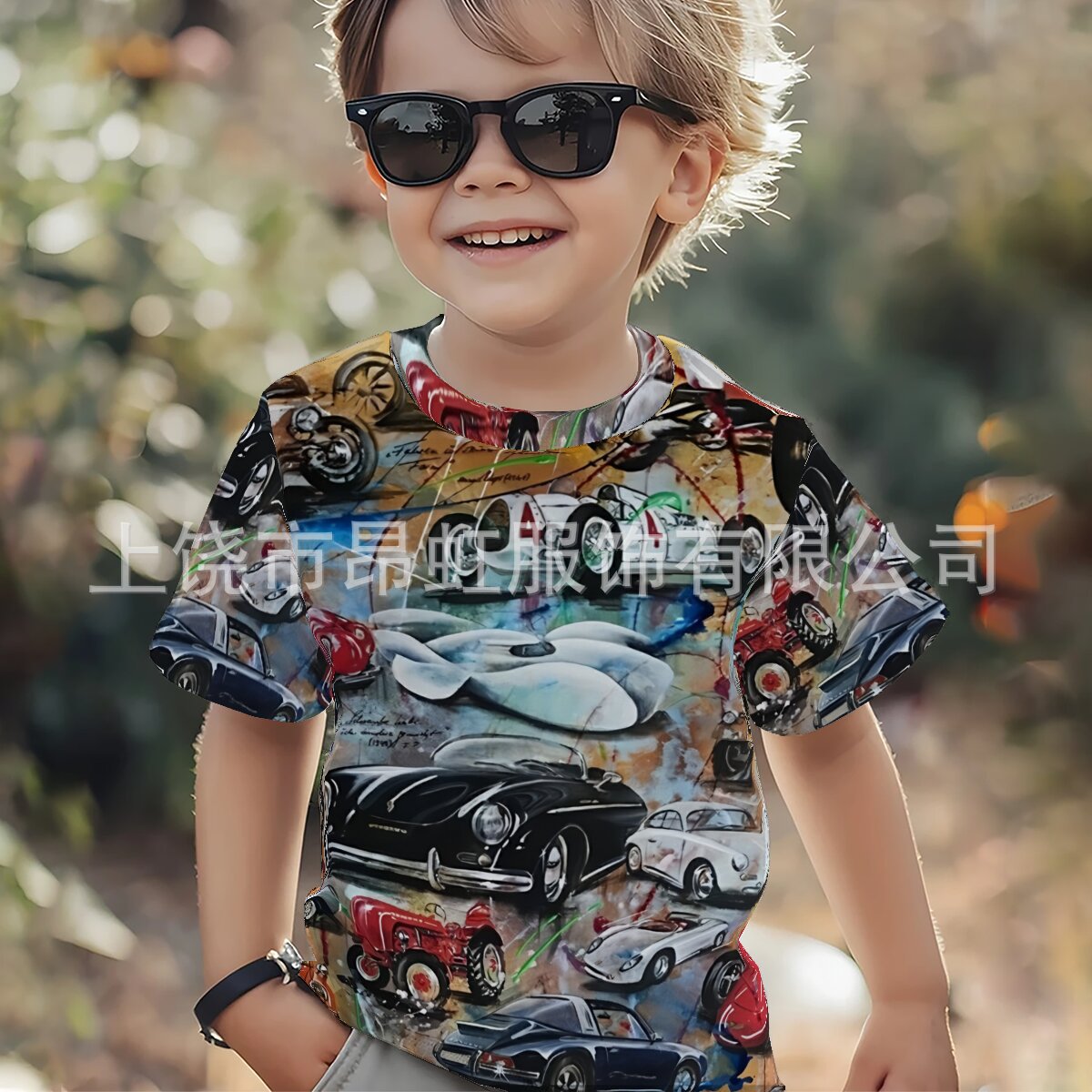 Independent Station Amazon Xiyin 2025 New Children's Summer Cartoon Car 3D Printed Short-sleeved T-shirt Small And Medium-sized Children
