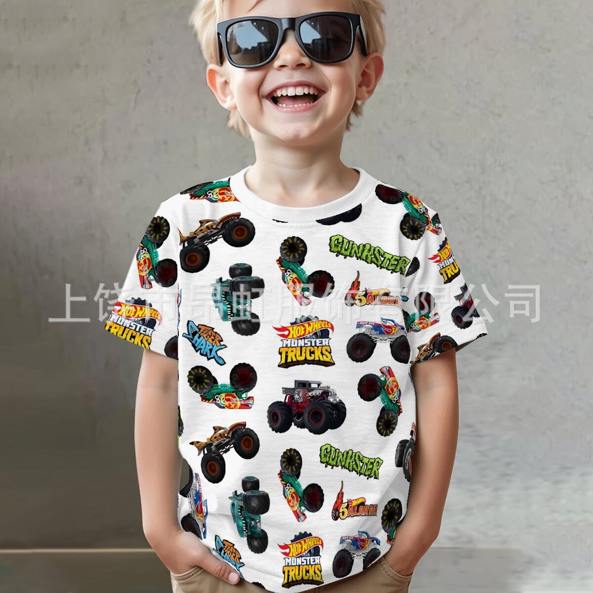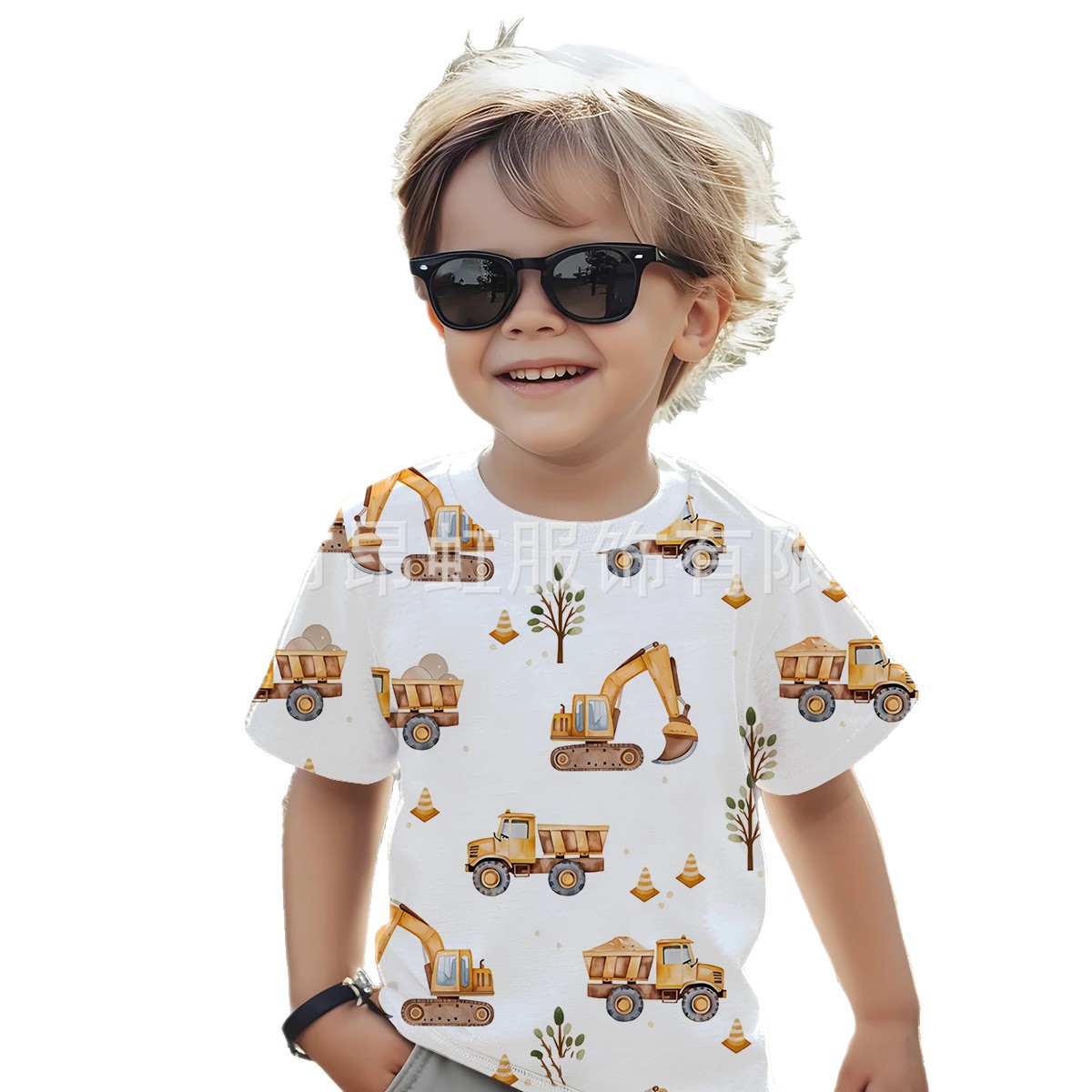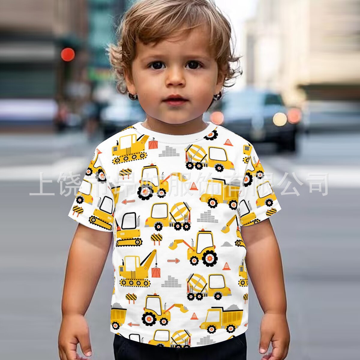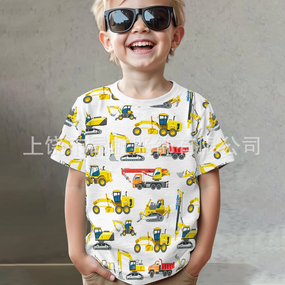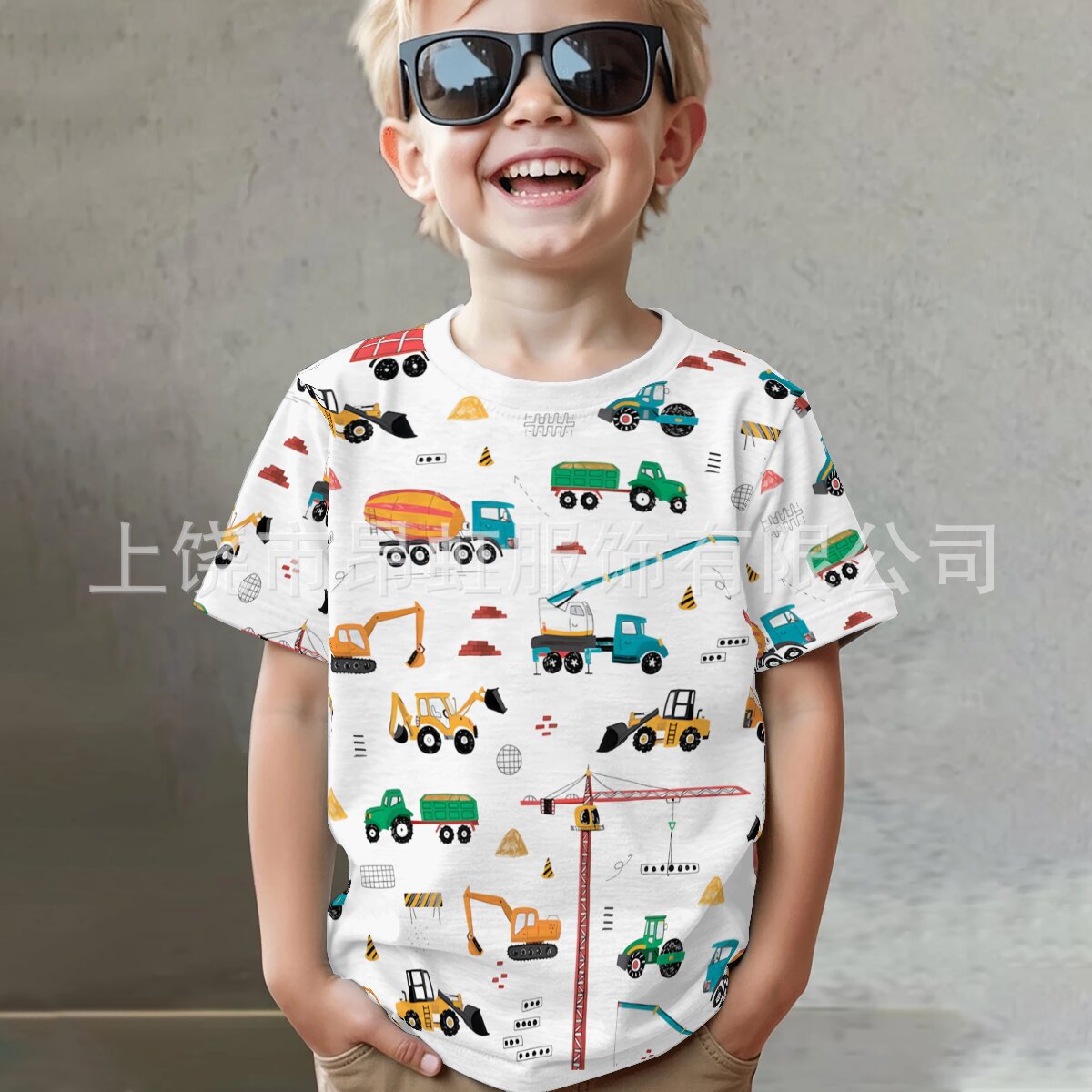 Independent Station Amazon Xiyin 2025 New Children's Summer Cartoon Car 3D Printed Short-sleeved T-shirt Small And Medium-sized Children