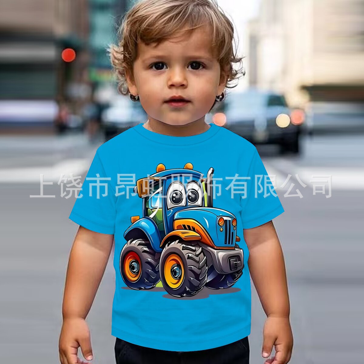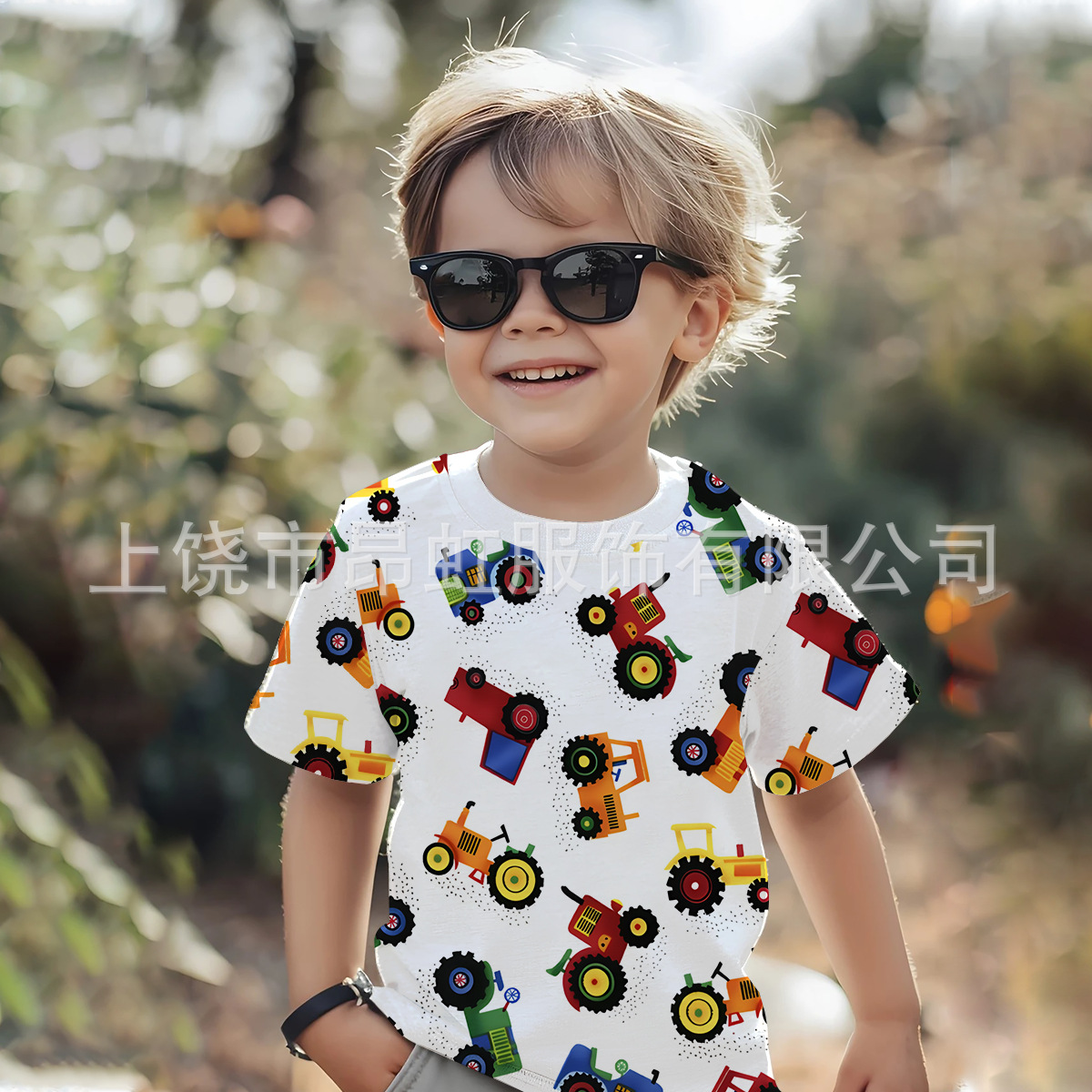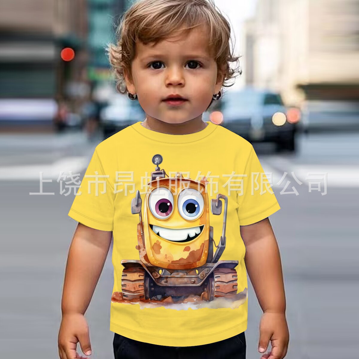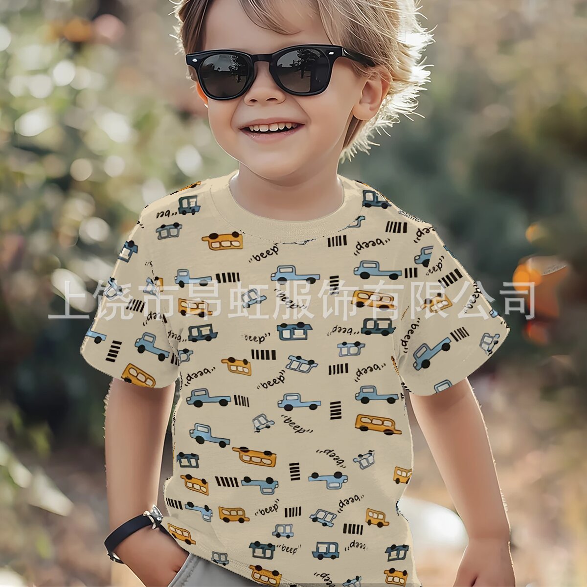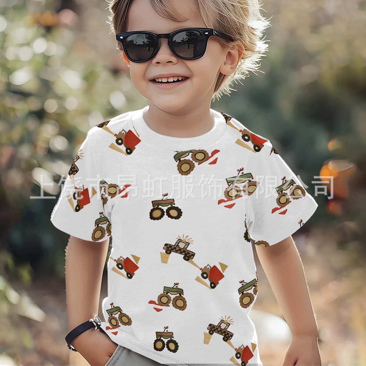 Independent Station Amazon Xiyin 2025 New Children's Summer Cartoon Car 3D Printed Short-sleeved T-shirt Small And Medium-sized Children