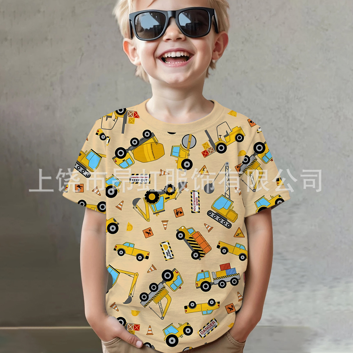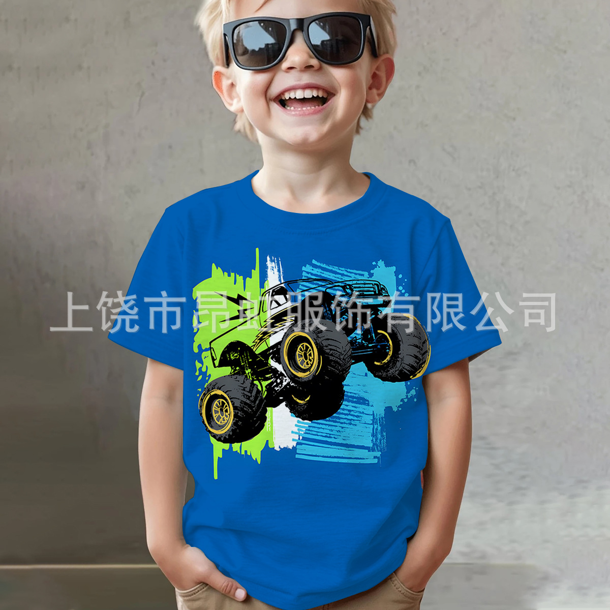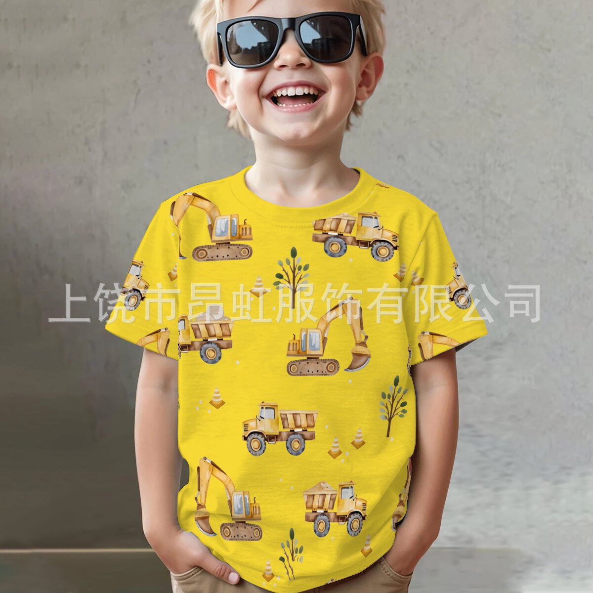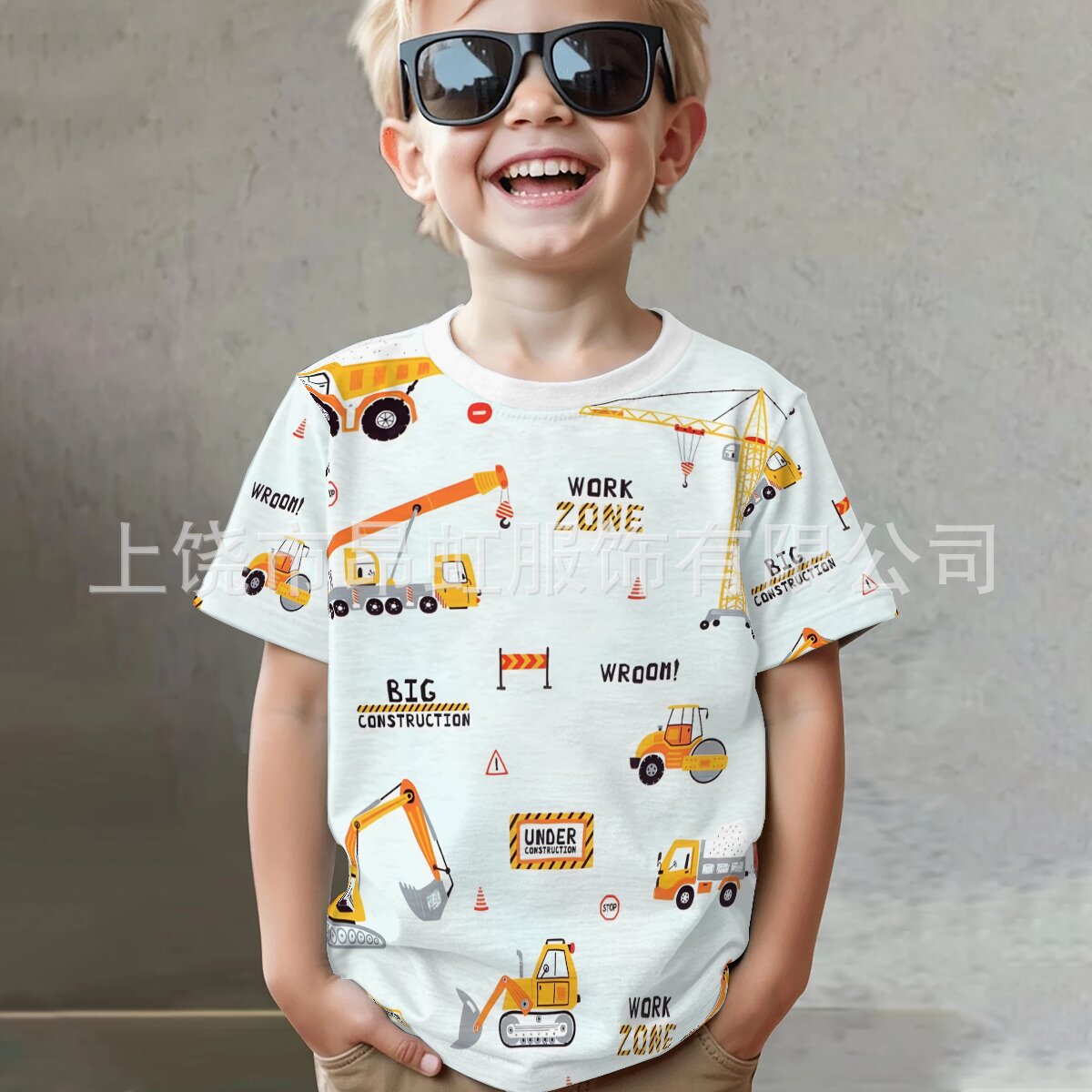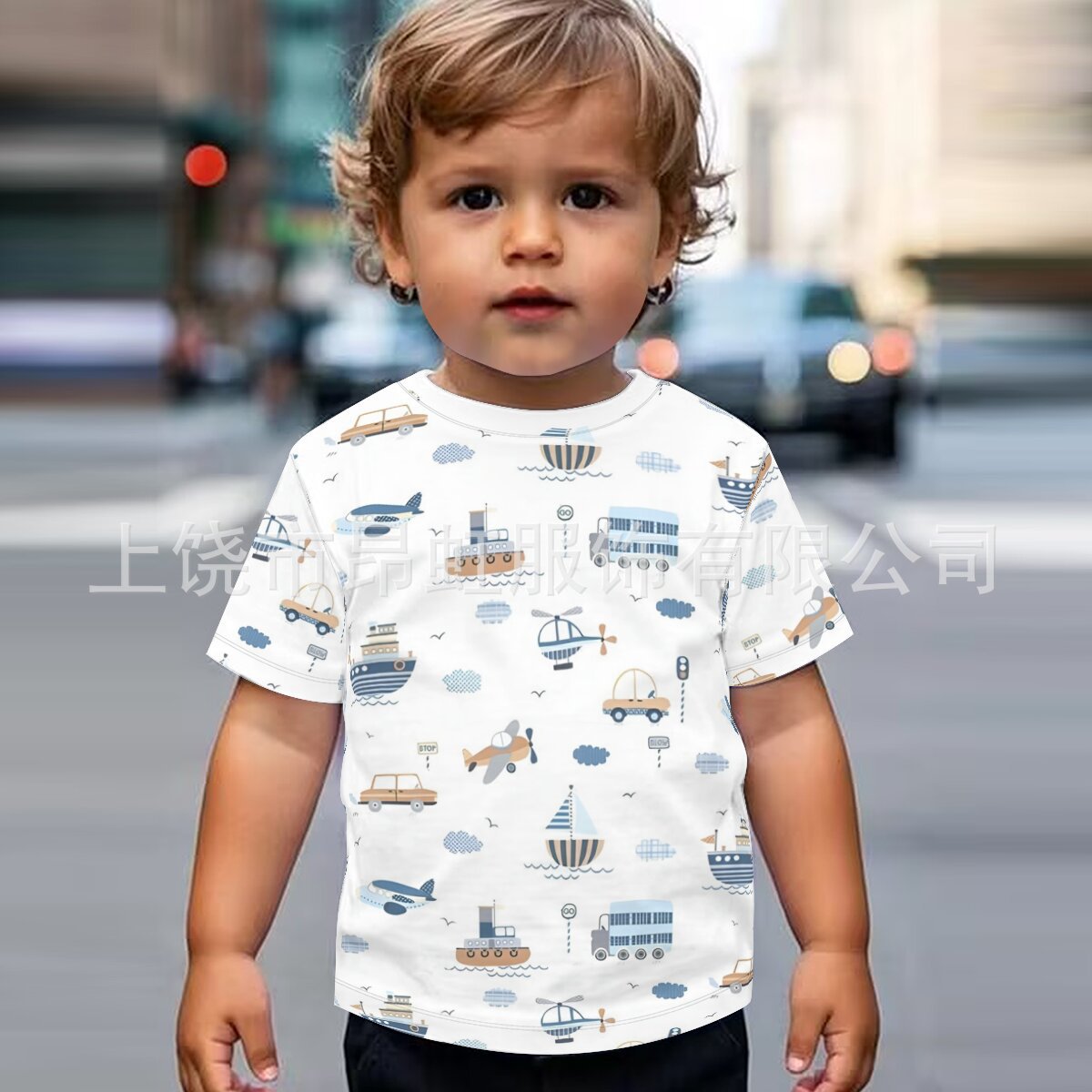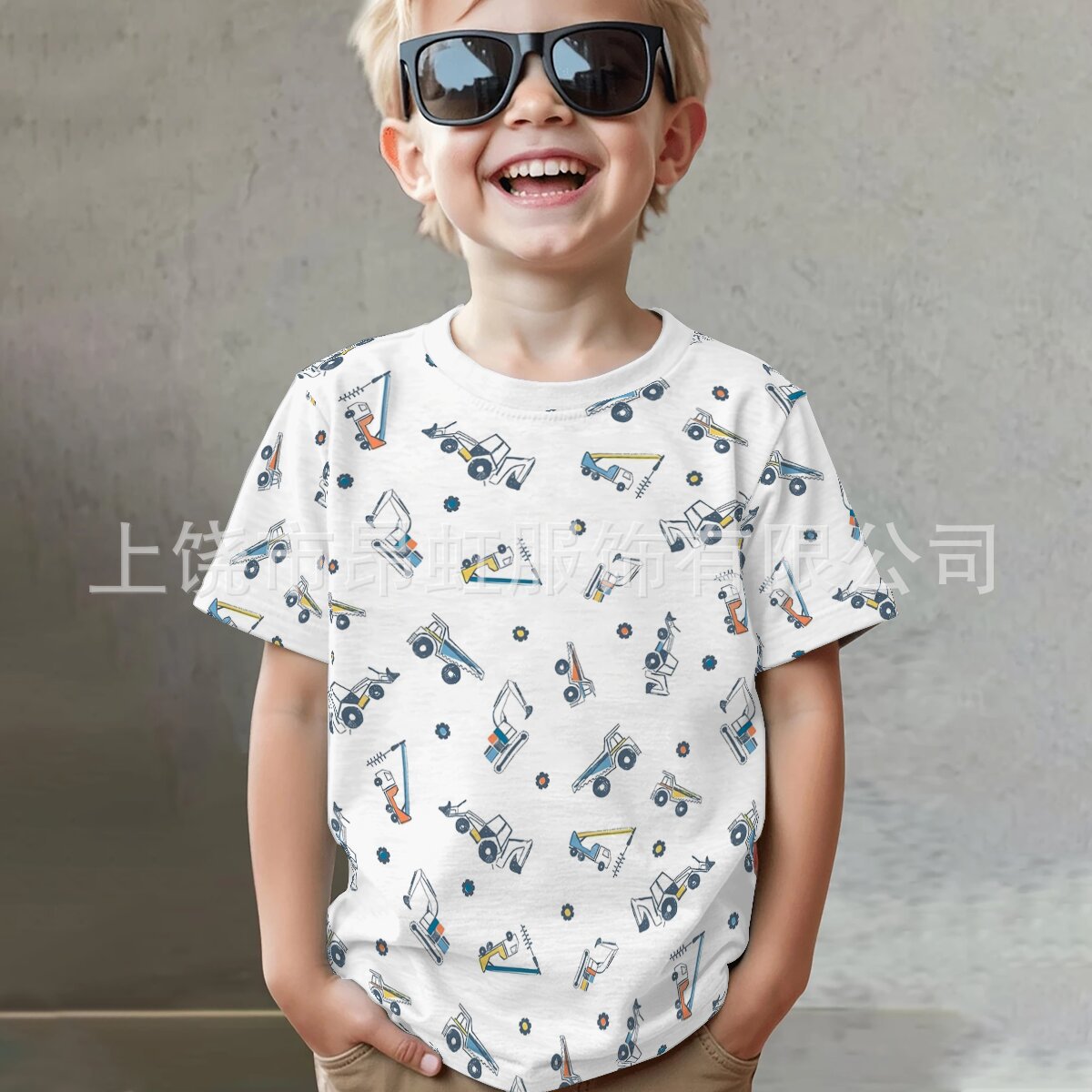 Independent Station Amazon Xiyin 2025 New Children's Summer Cartoon Car 3D Printed Short-sleeved T-shirt Small And Medium-sized Children