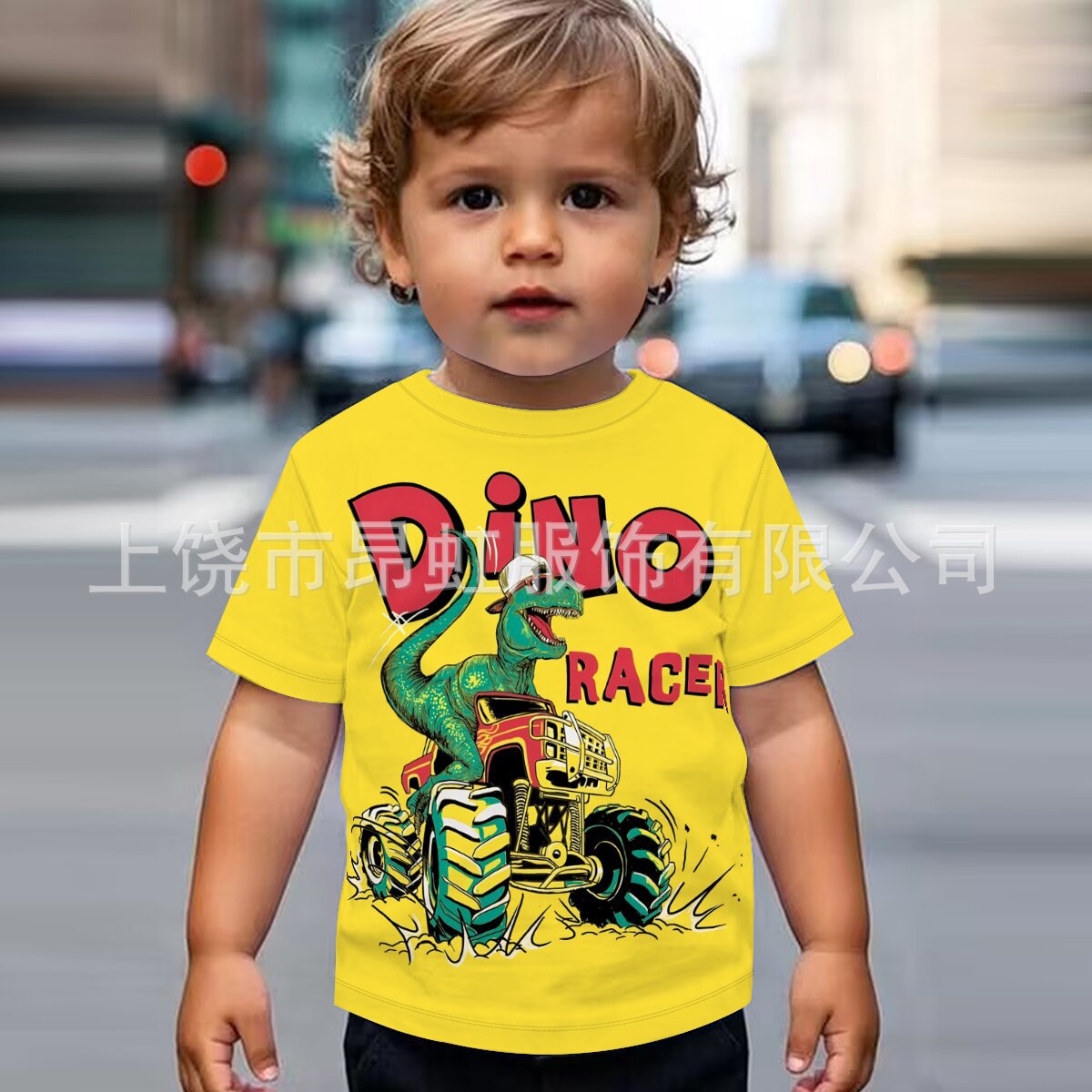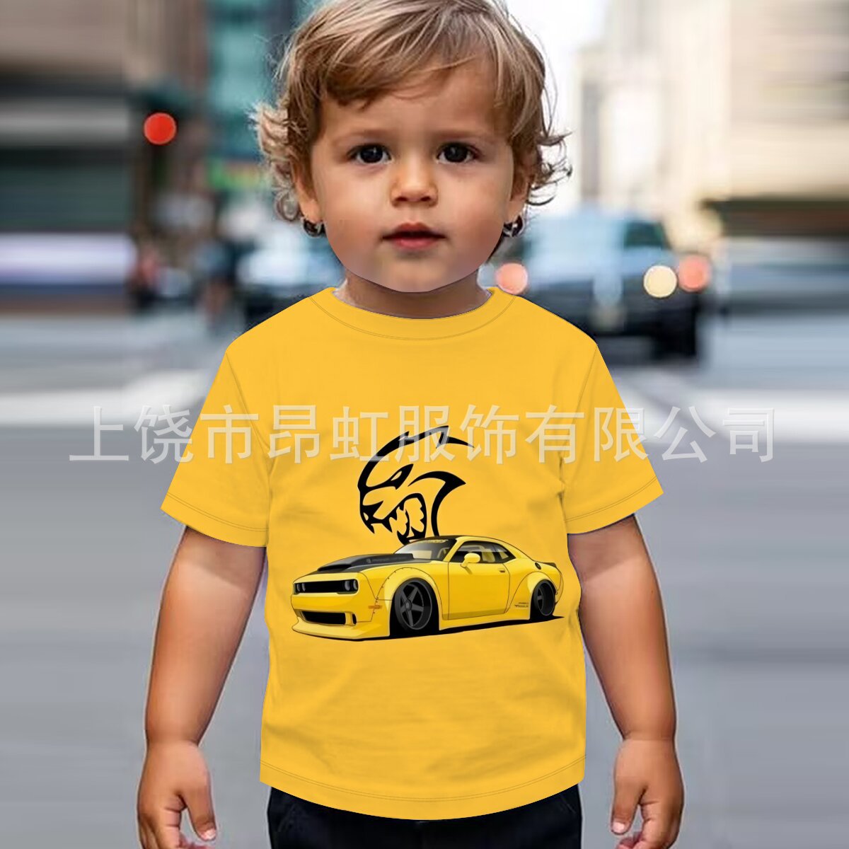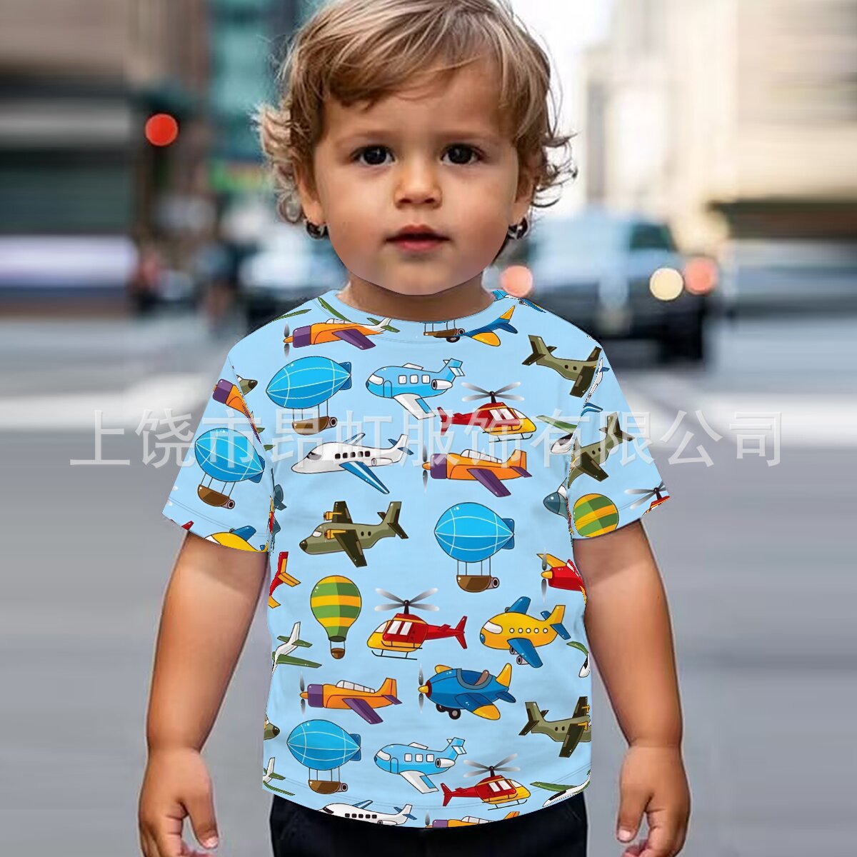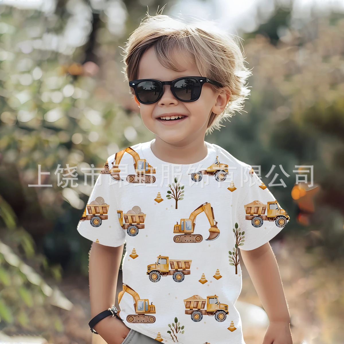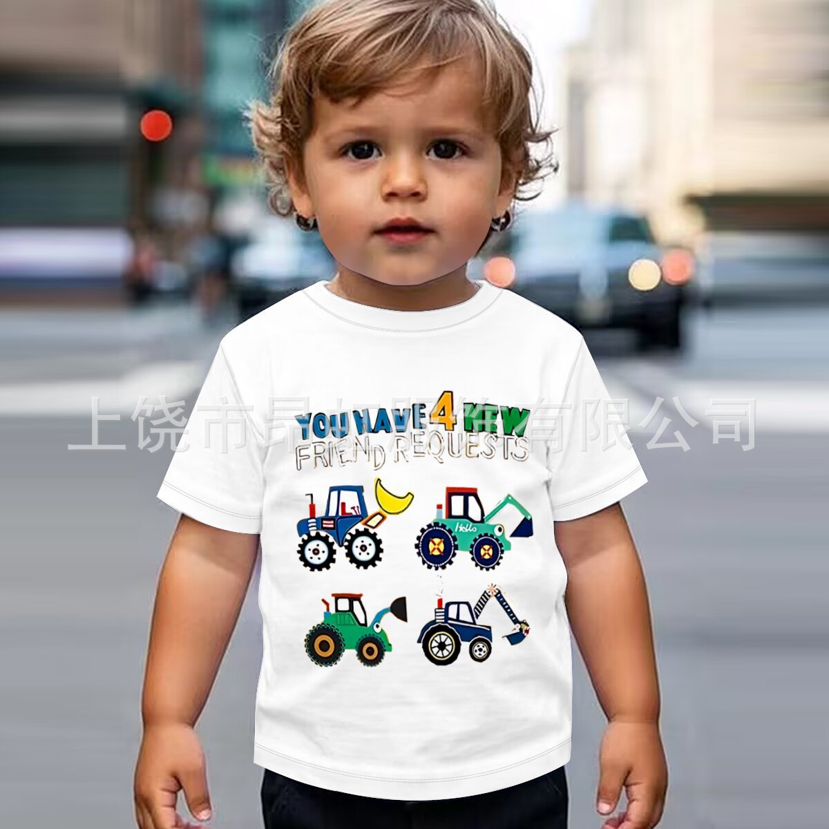 Independent Station Amazon Xiyin 2025 New Children's Summer Cartoon Car 3D Printed Short-sleeved T-shirt Small And Medium-sized Children