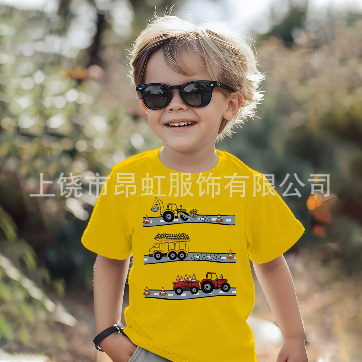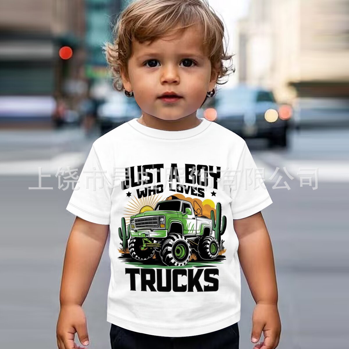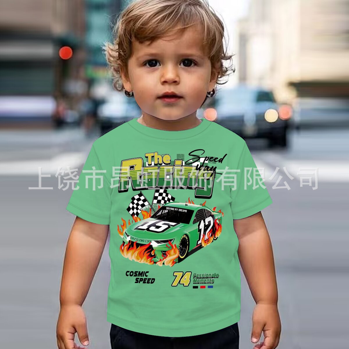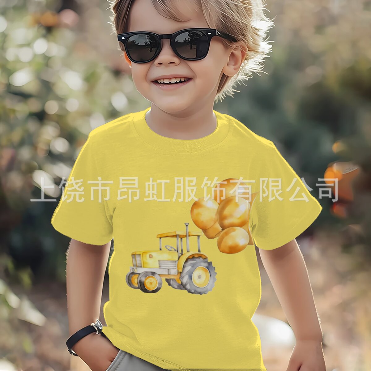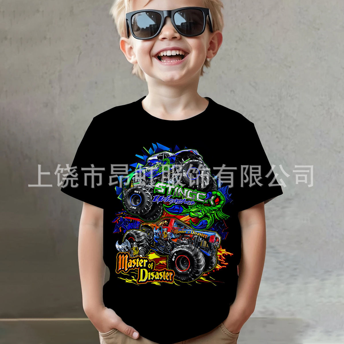 Independent Station Amazon Xiyin 2025 New Children's Summer Cartoon Car 3D Printed Short-sleeved T-shirt Small And Medium-sized Children