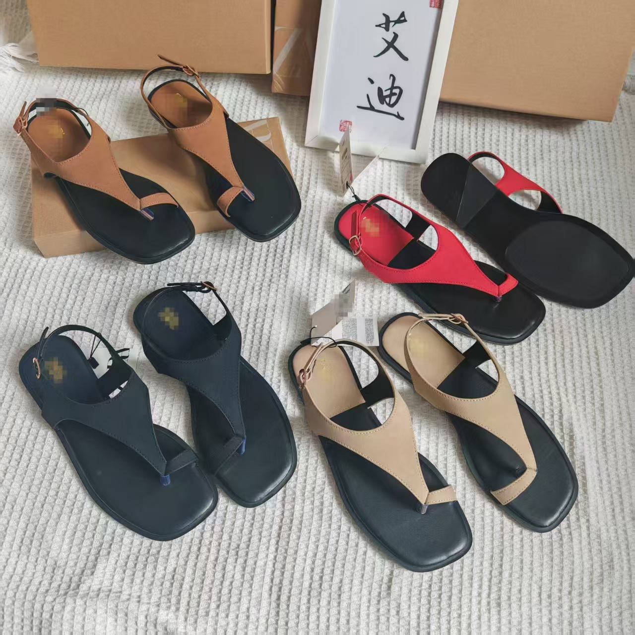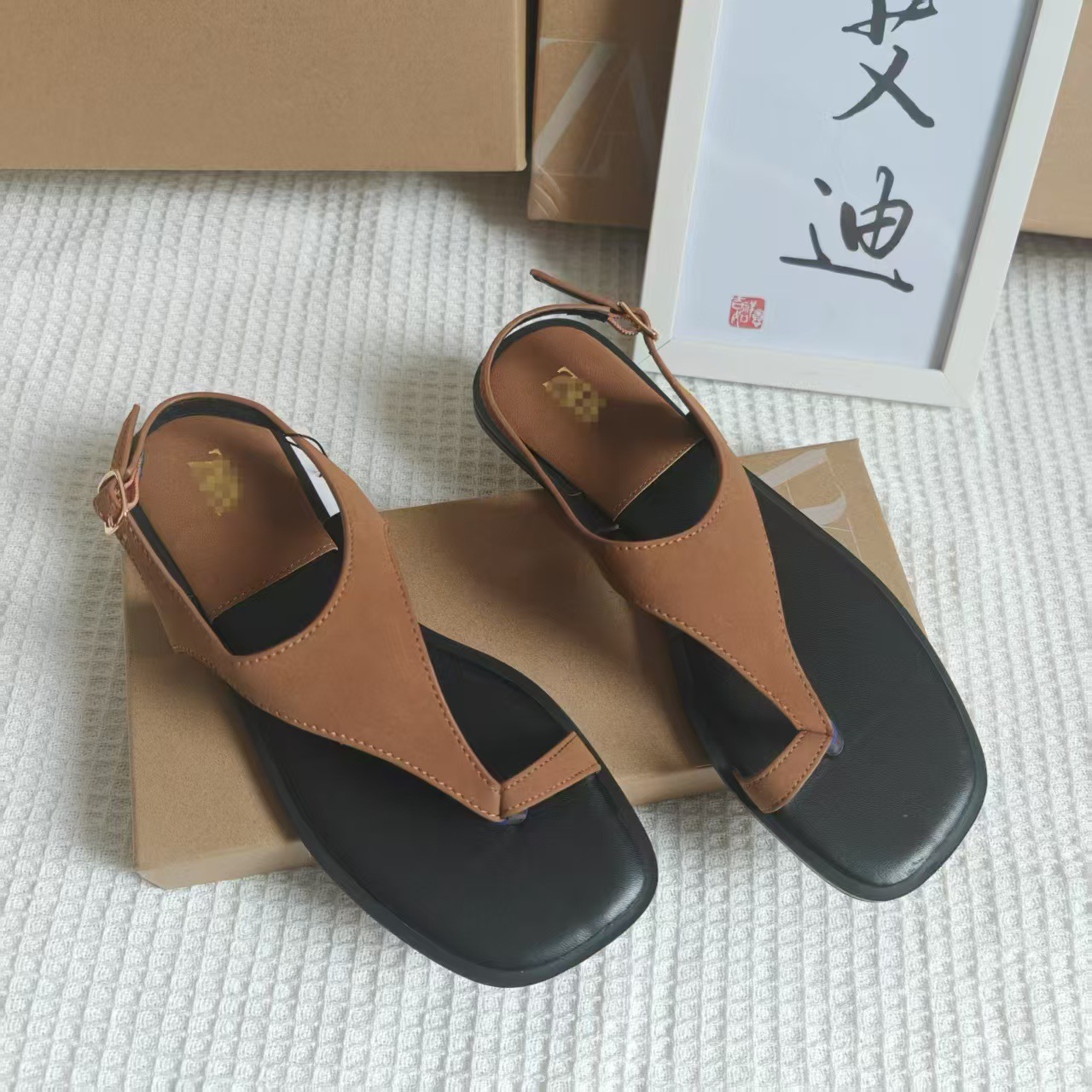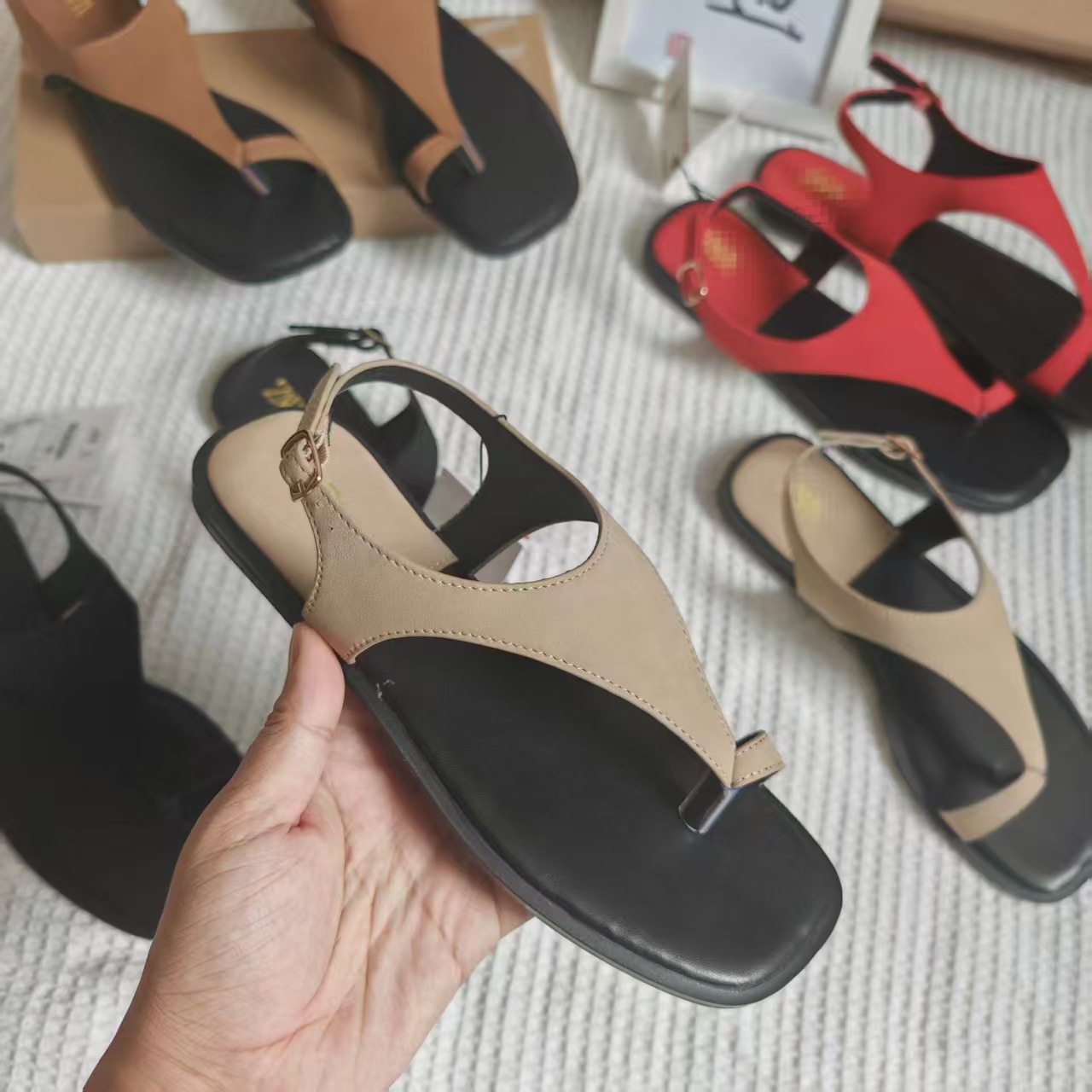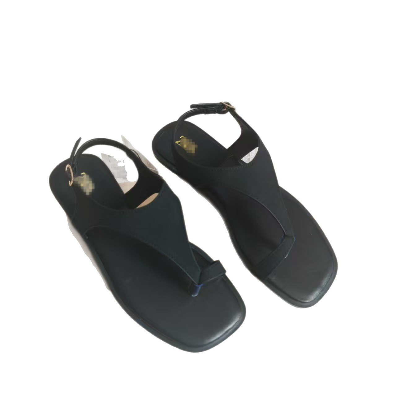 INS Summer Spot Toe Color Flat Sandals Women's Ankle Strap Anti-velvet Square Slippers Sandals Flat Heel