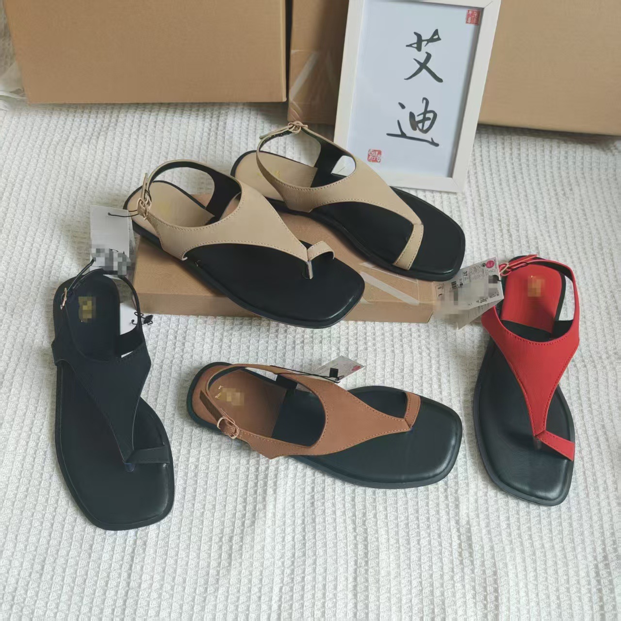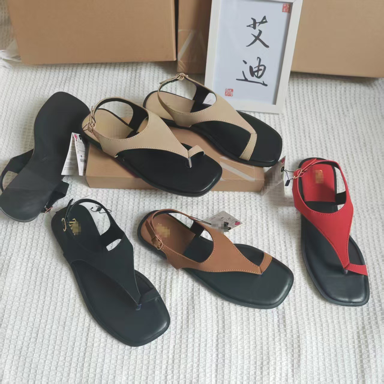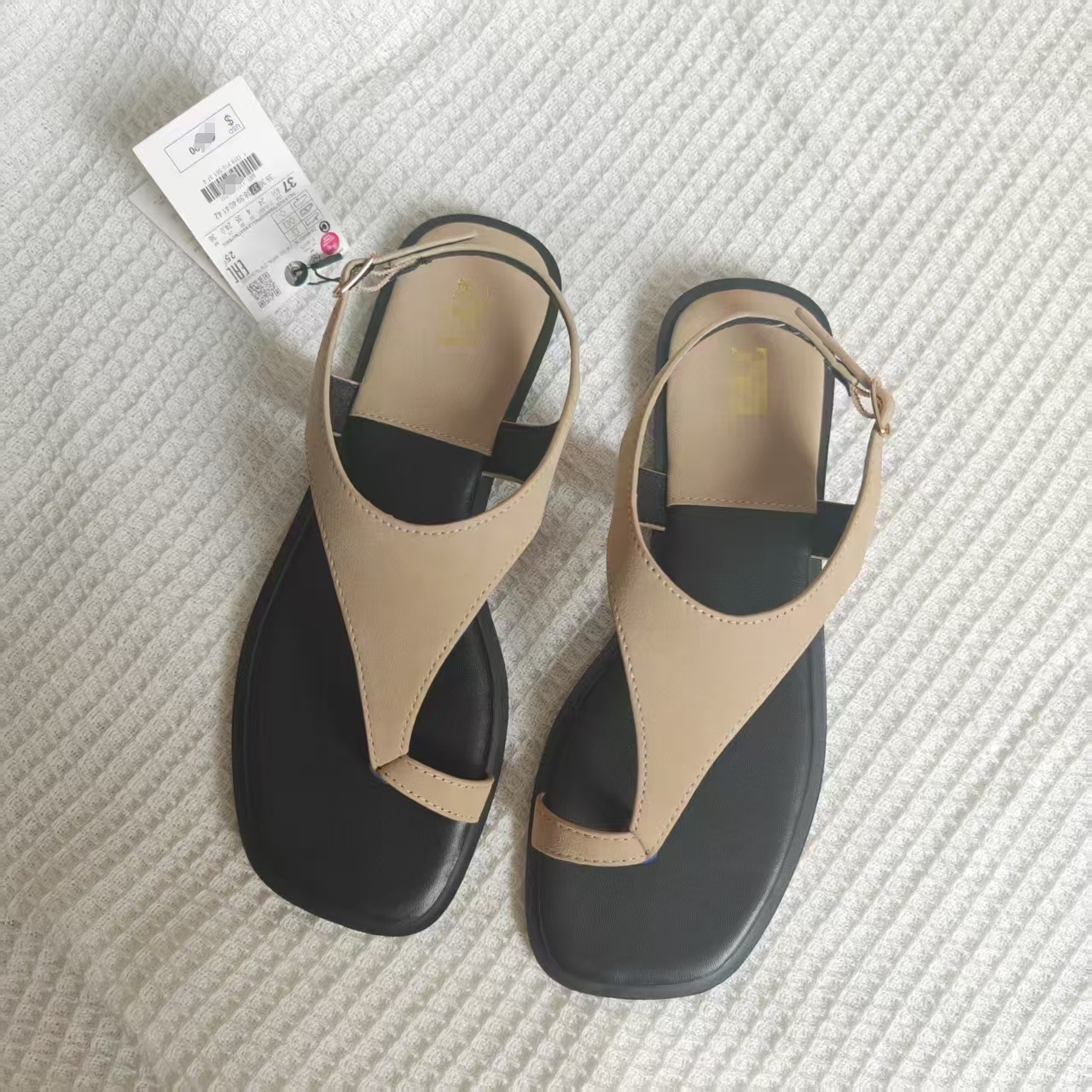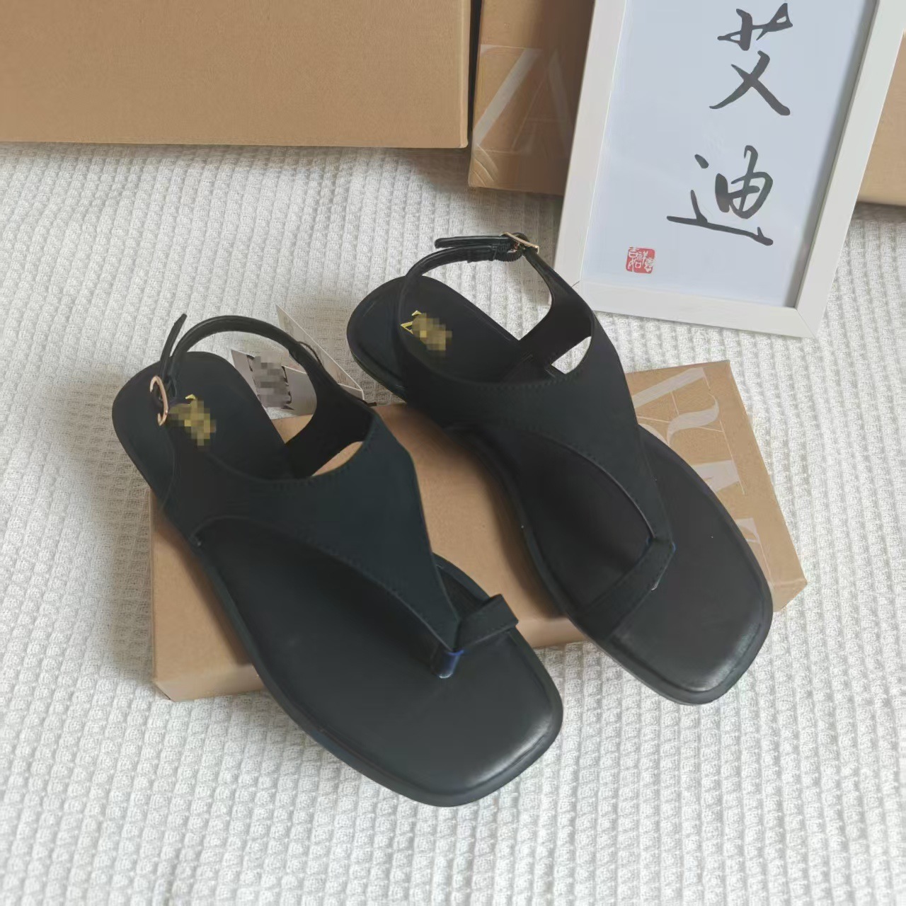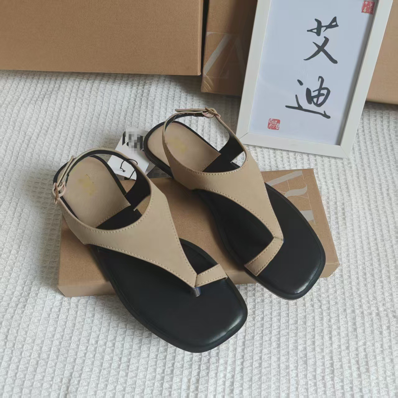 INS Summer Spot Toe Color Flat Sandals Women's Ankle Strap Anti-velvet Square Slippers Sandals Flat Heel