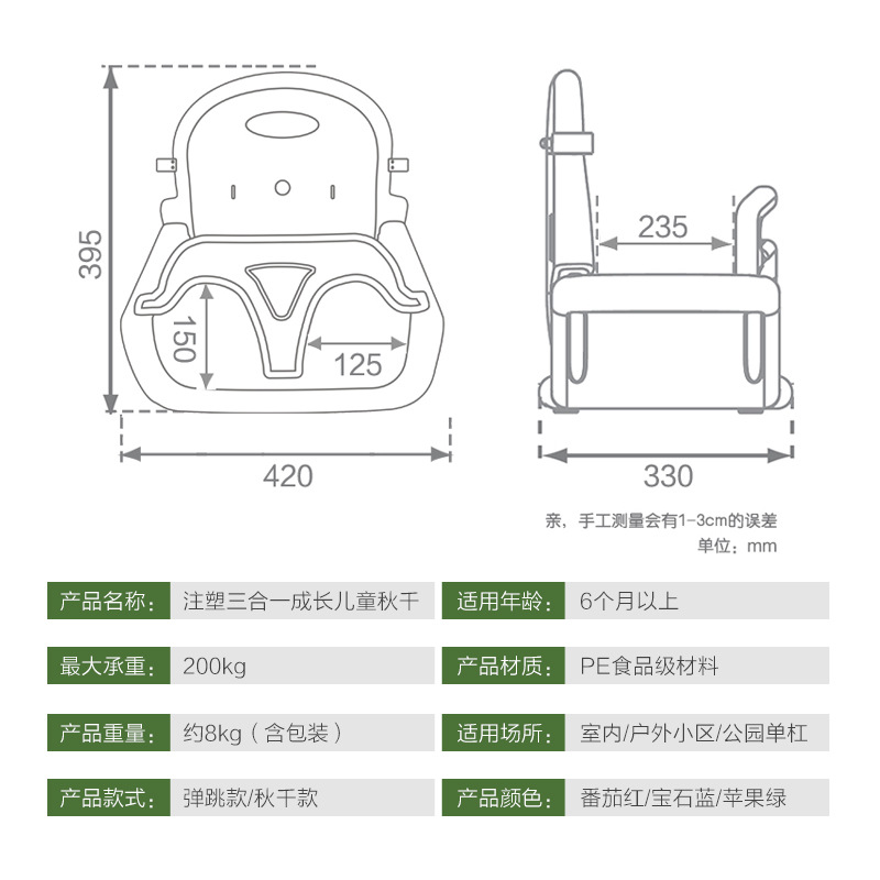 Green Seat With Rope And Hook Connection Belt