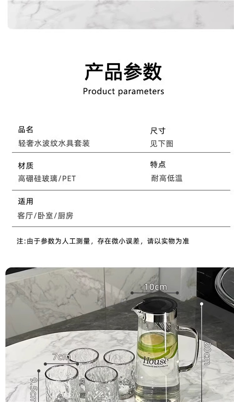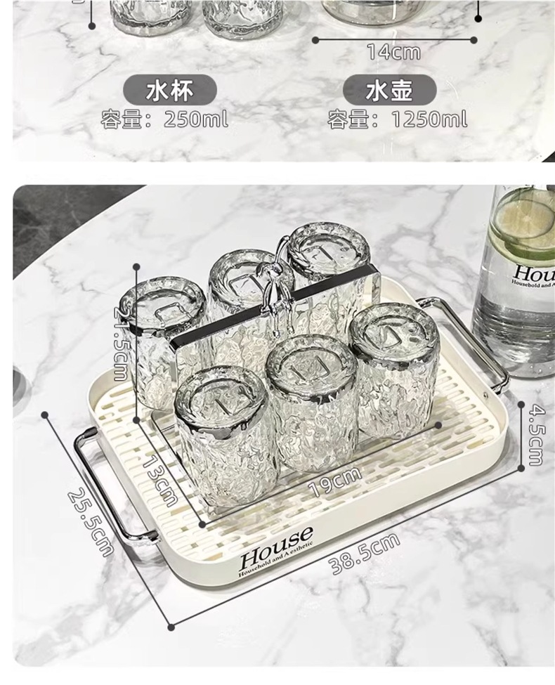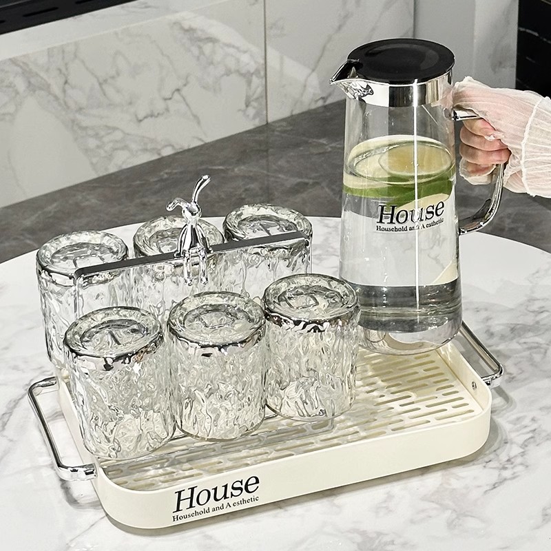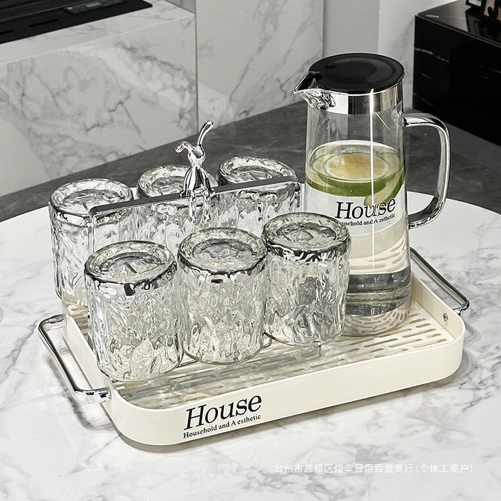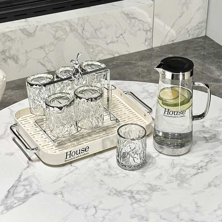 Light Luxury Glass Cold Water Kettle Water Cup Complete Set Household Living Room Hospitality Water Cup Set High-value Family Cup Set