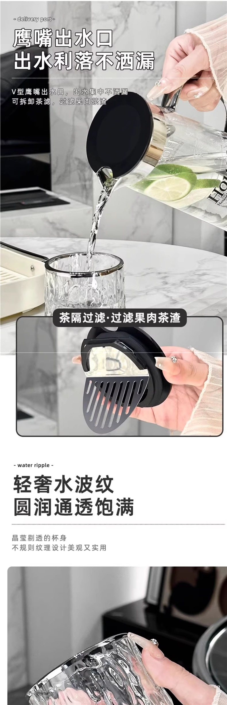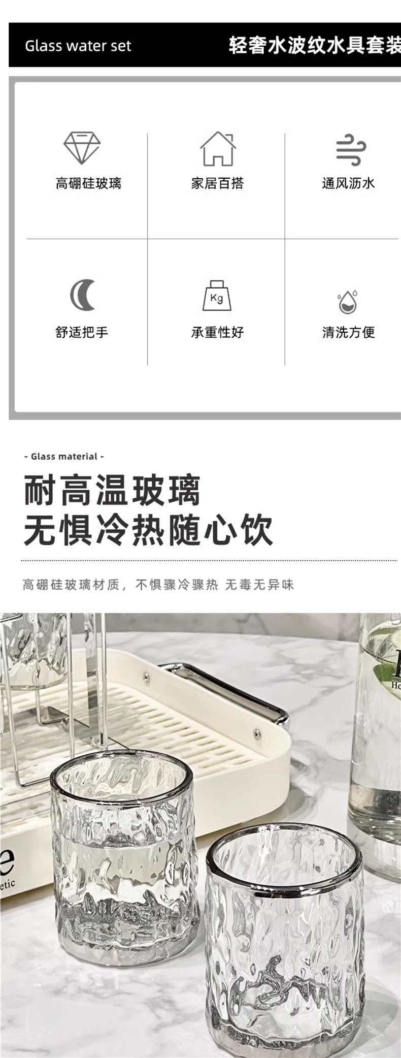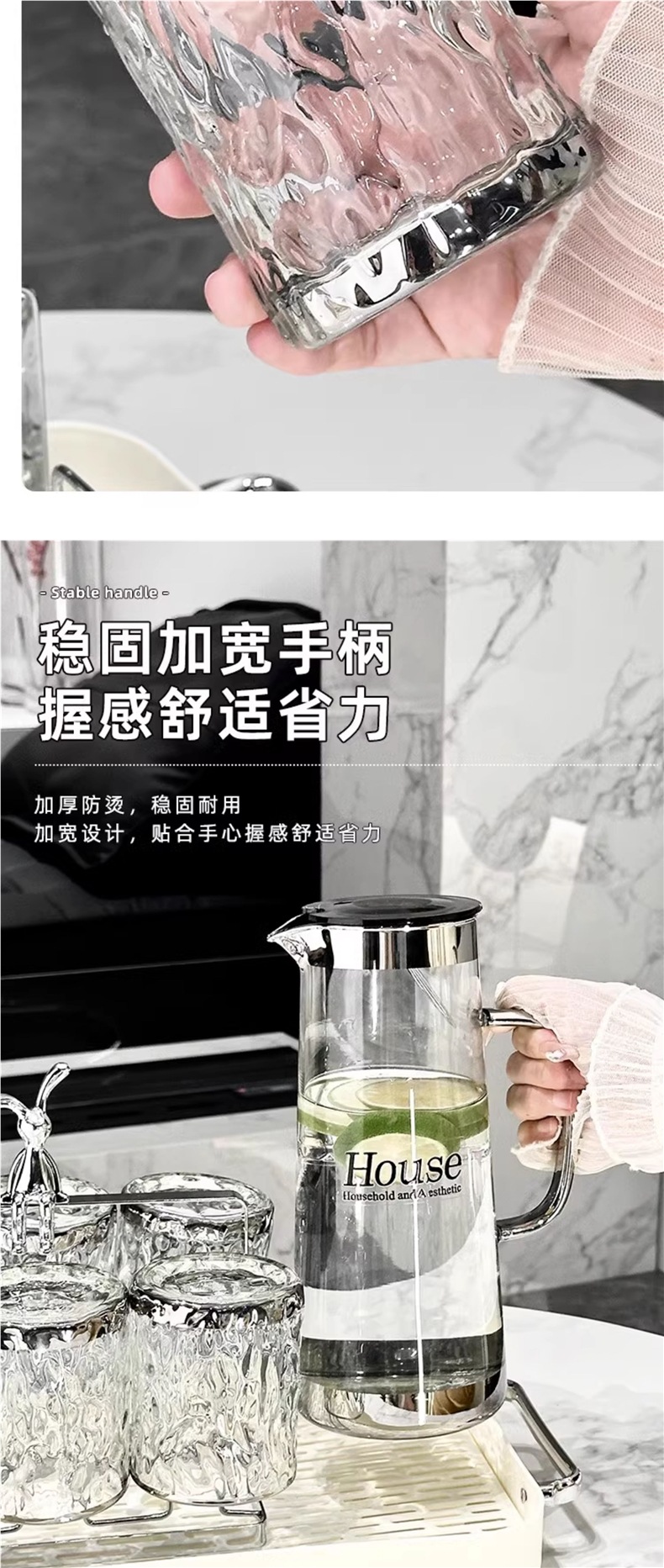 Light Luxury Glass Cold Water Kettle Water Cup Complete Set Household Living Room Hospitality Water Cup Set High-value Family Cup Set