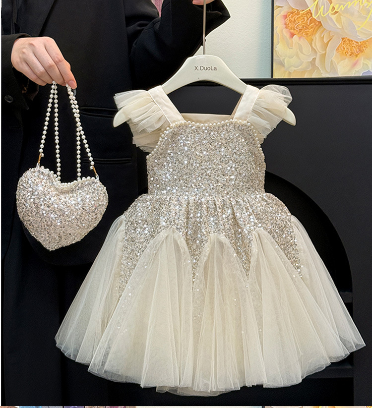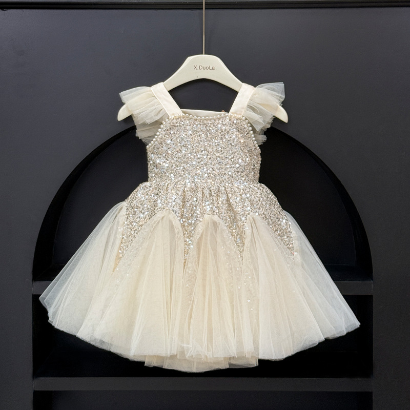 Mermaid Dress Girl's Performance Dress 2025 New Girls Champagne Color Wedding Flower Girl Dress Princess Dress