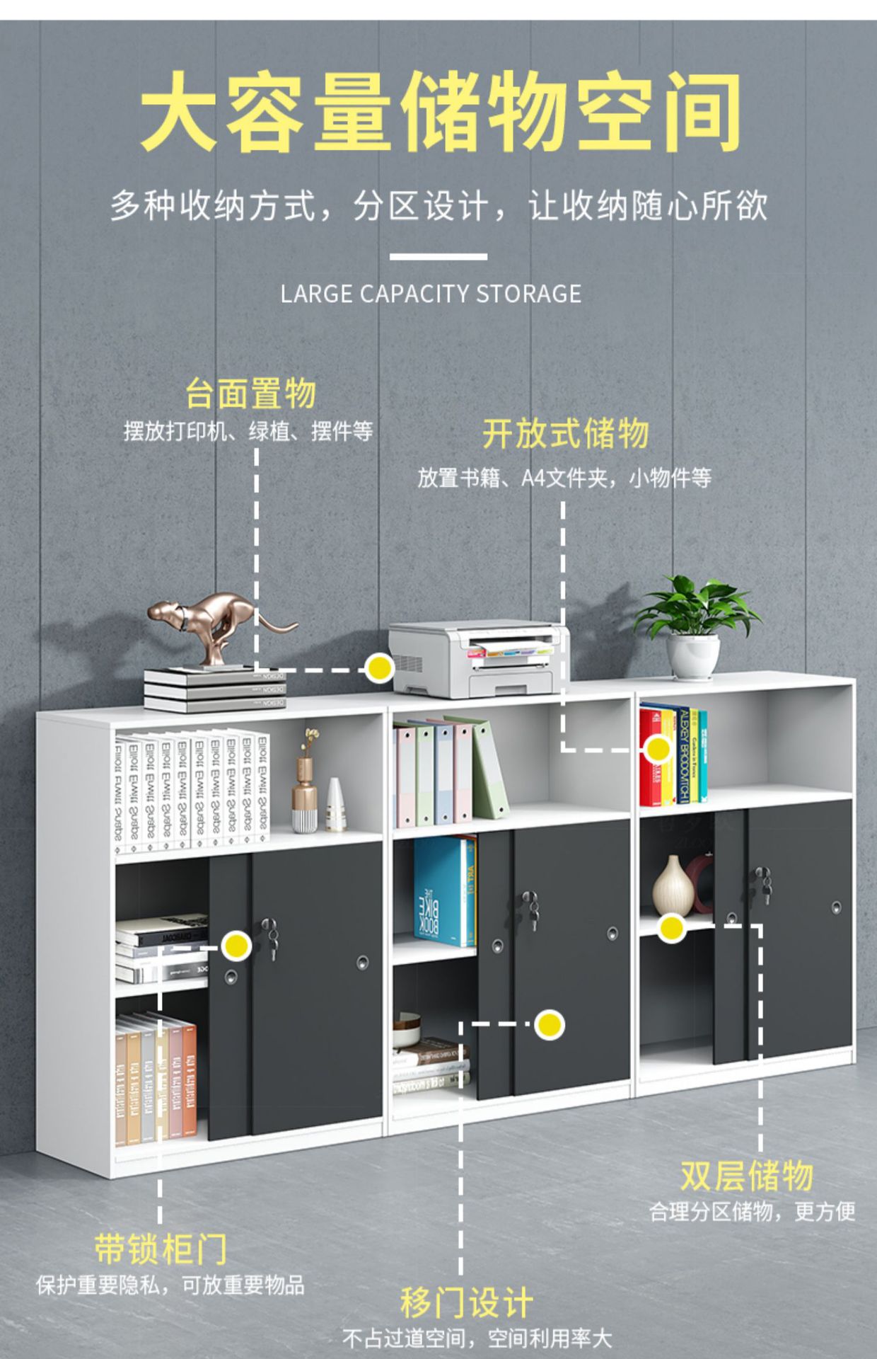 Office Partition Cabinet Sliding Sliding Door Company Filing Cabinet Low Cabinet Wooden Data Cabinet Printer Cabinet File Side Cabinet