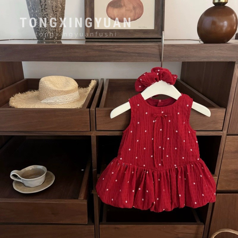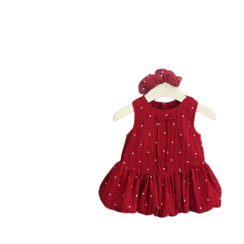 Send Rope Summer New Female Baby Sweet Red Cute Dress Birthday Bud Princess Skirt Vest Skirt