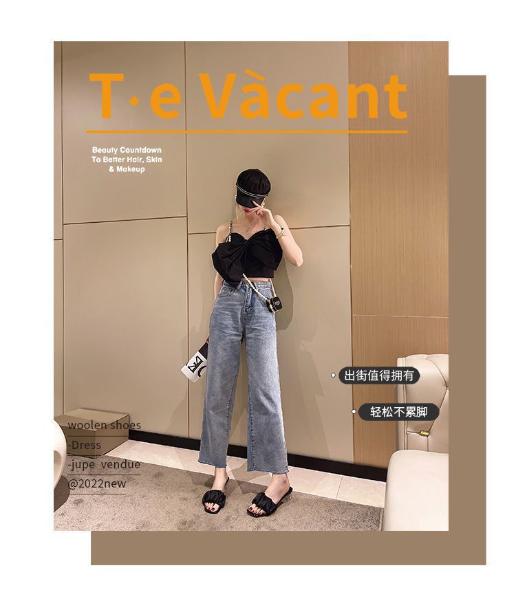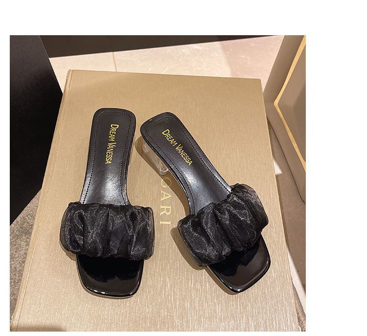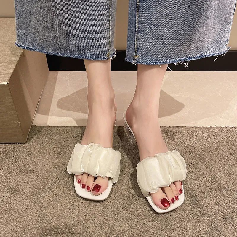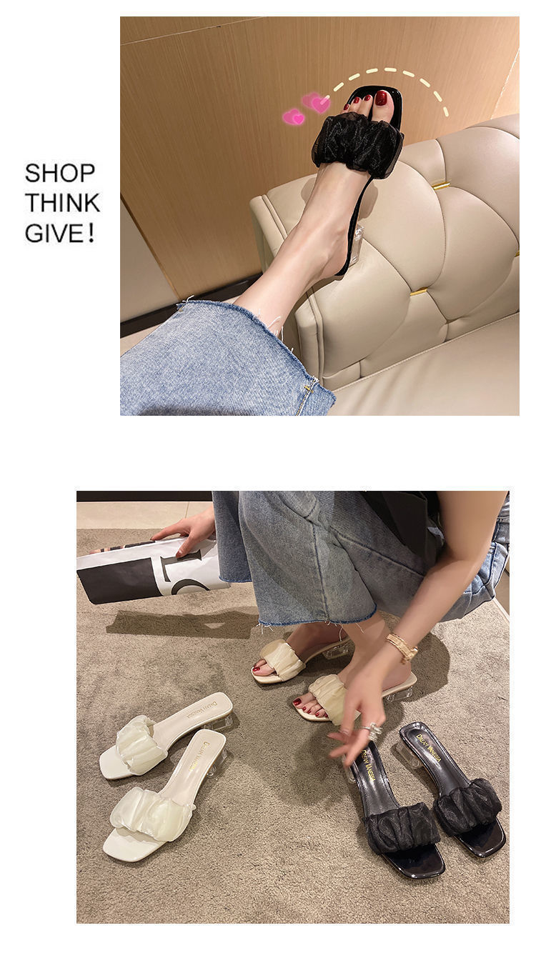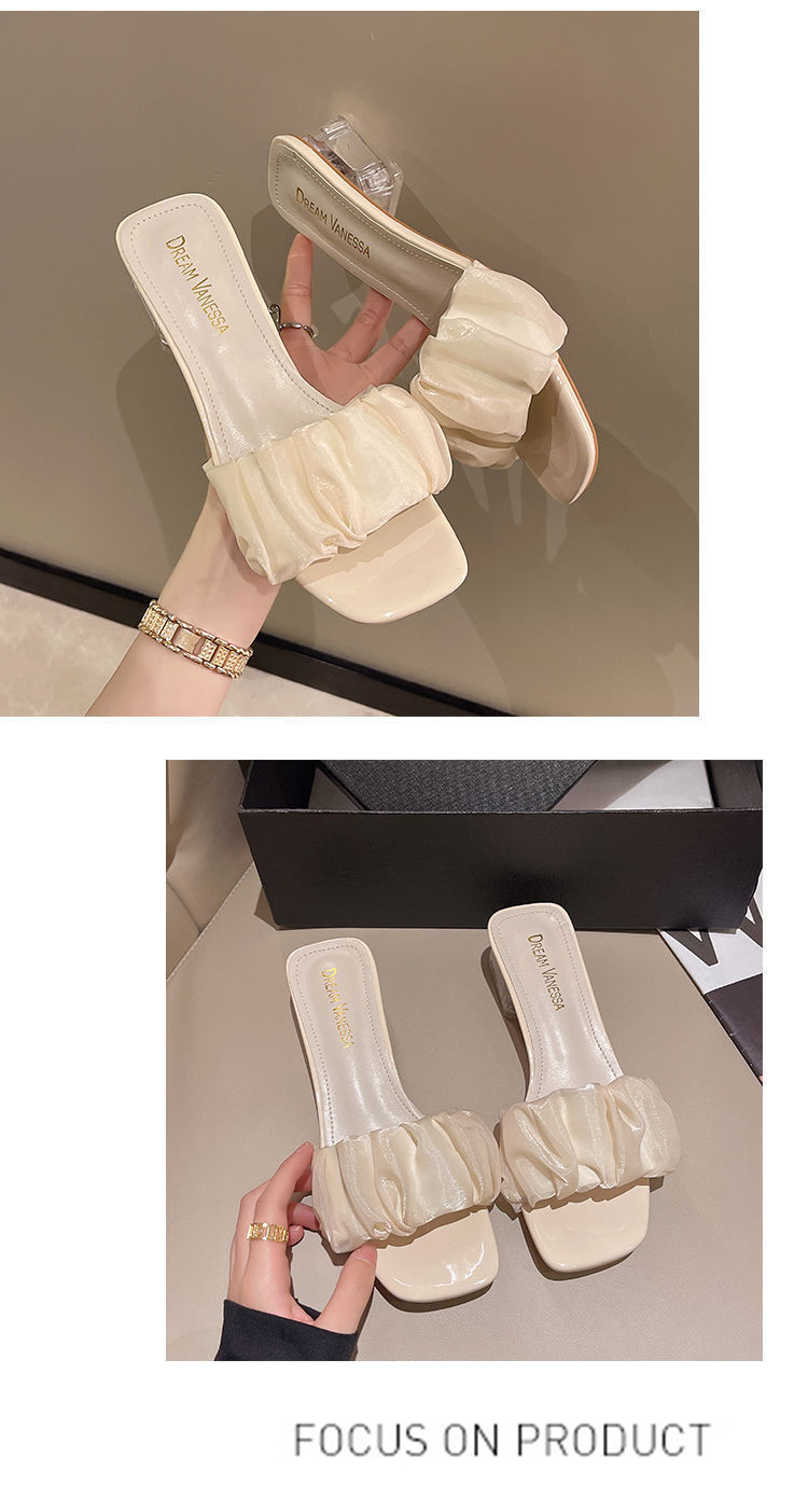 Slippers Women's Summer Outfit 2022 New Style Chick-heeled All-match Square-heeled Mid-heeled Fairy-style Slippers With Skirt