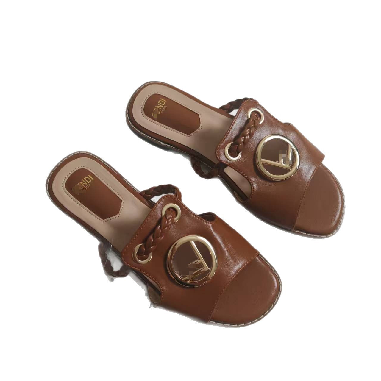 Summer 2025 European And American Round Toe Flat Sandals Women's One-line Buckle Metal Ring Sandals Sandals Hollow