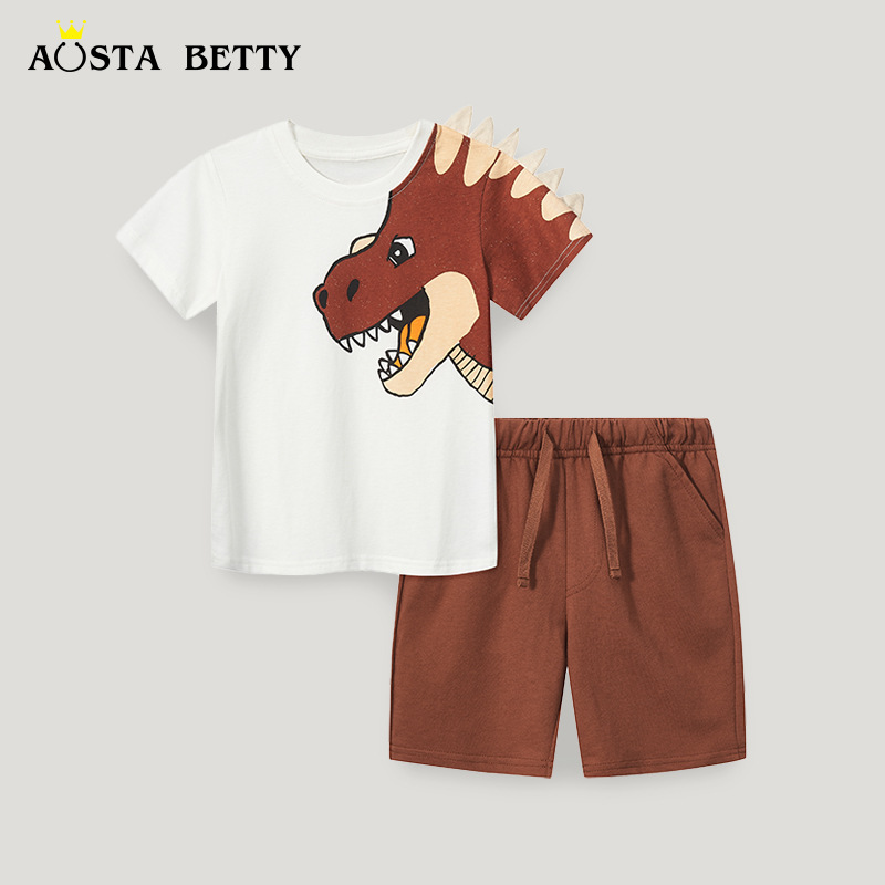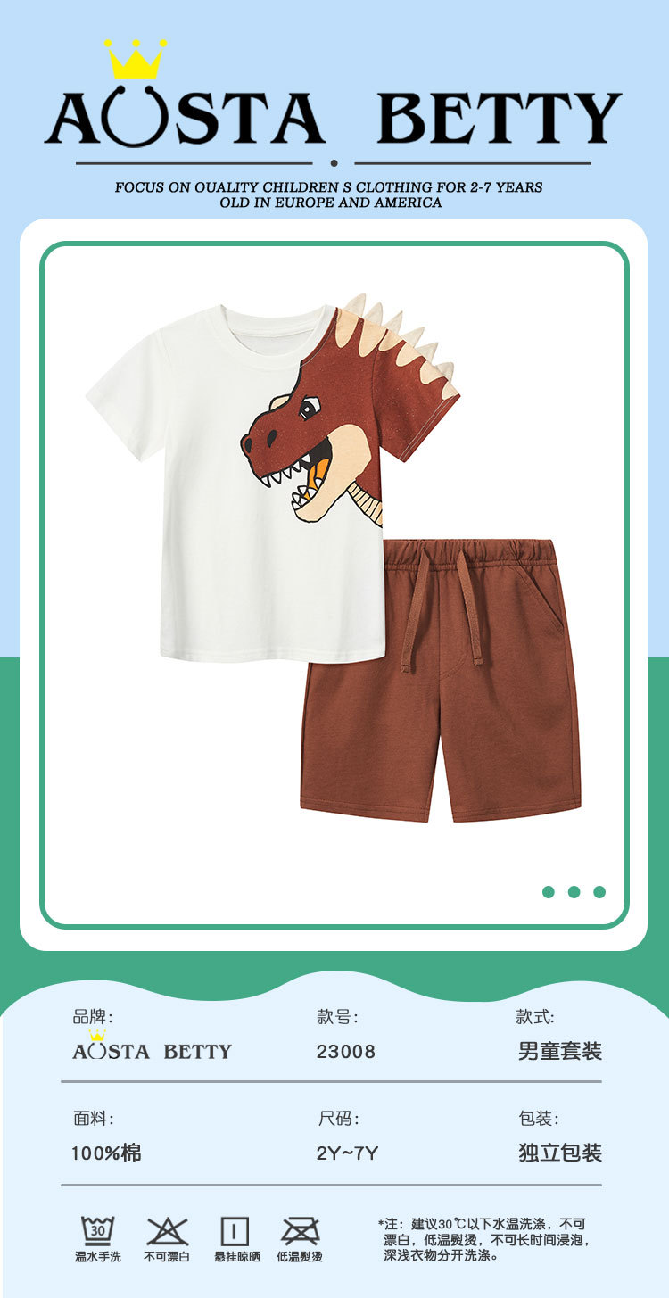 Summer New Boys' Suit European And American Fashion Cartoon Children's T-shirt Suit Shorts Pocket Children's Two-piece Set