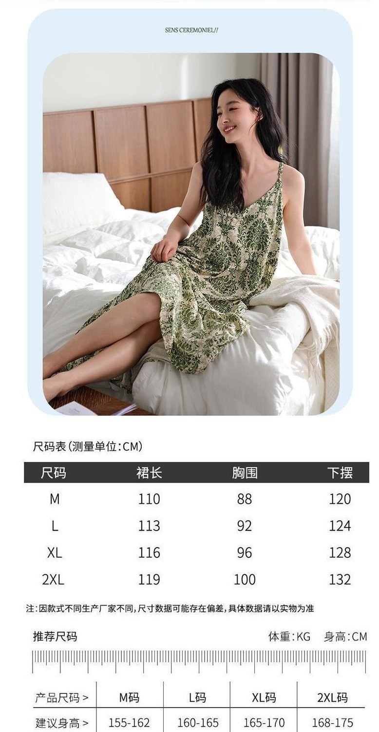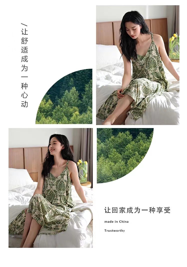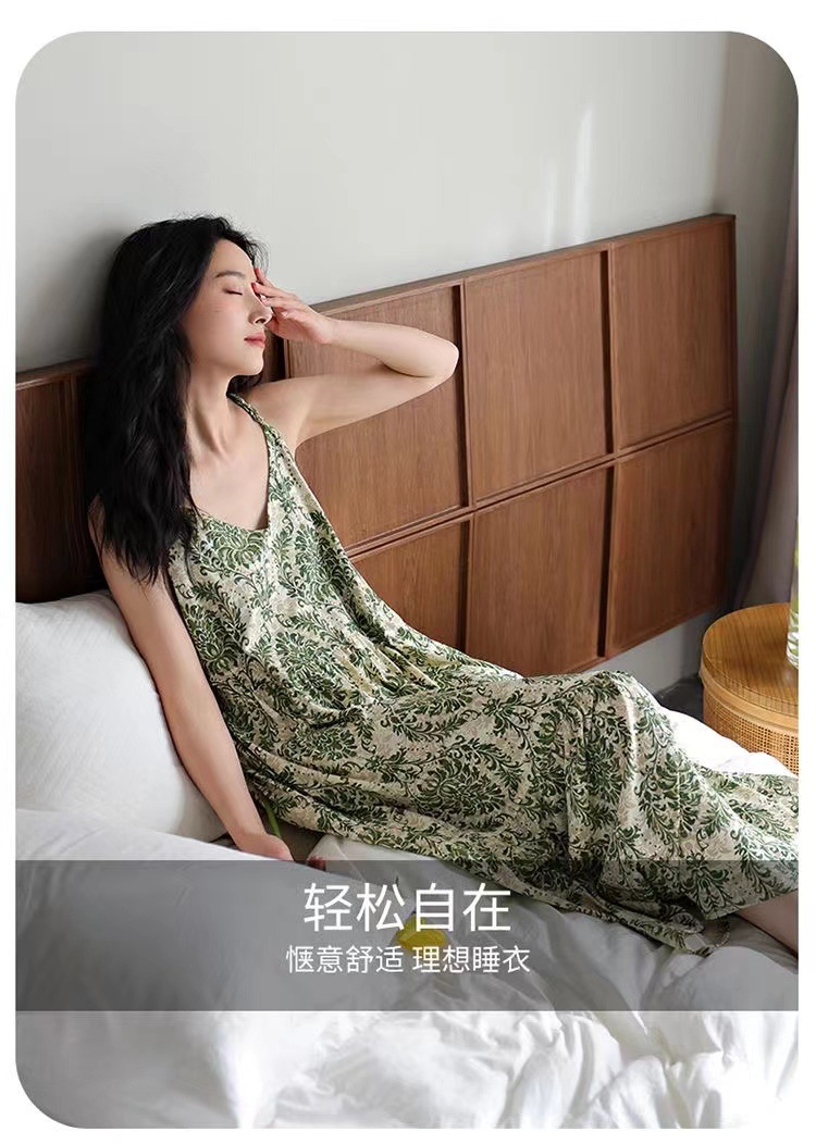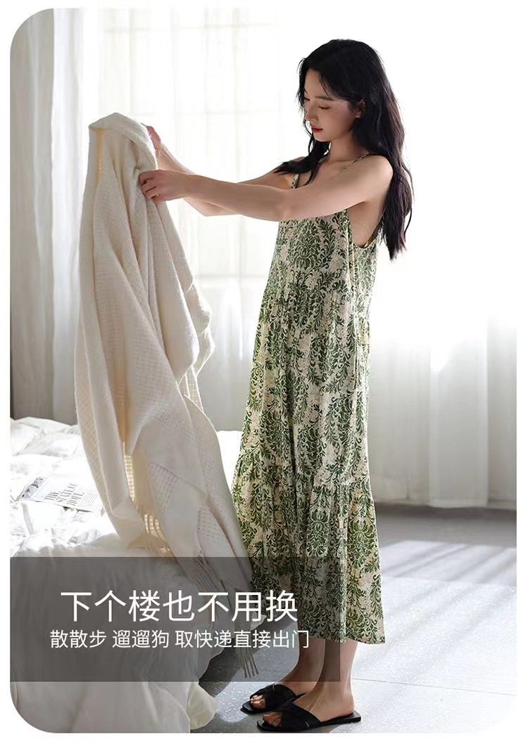 Summer New Mint Mambo [with Chest Pad] Sling Nightgown Women's High Quality Pajamas Home Clothes Cross Border