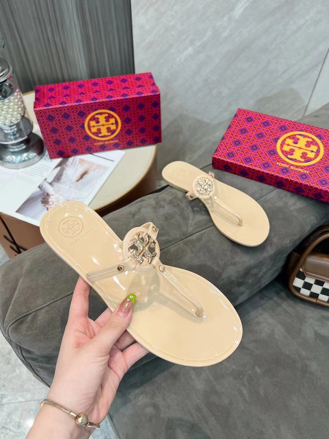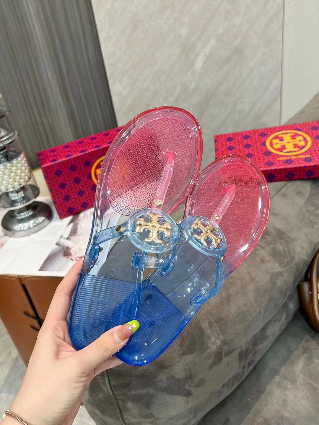 Tb Slippers Flip-flops Women's 2025 Summer Crystal Jelly European And American Cross-border Foreign Trade Beach Shoes Sandals And Slippers Slippers