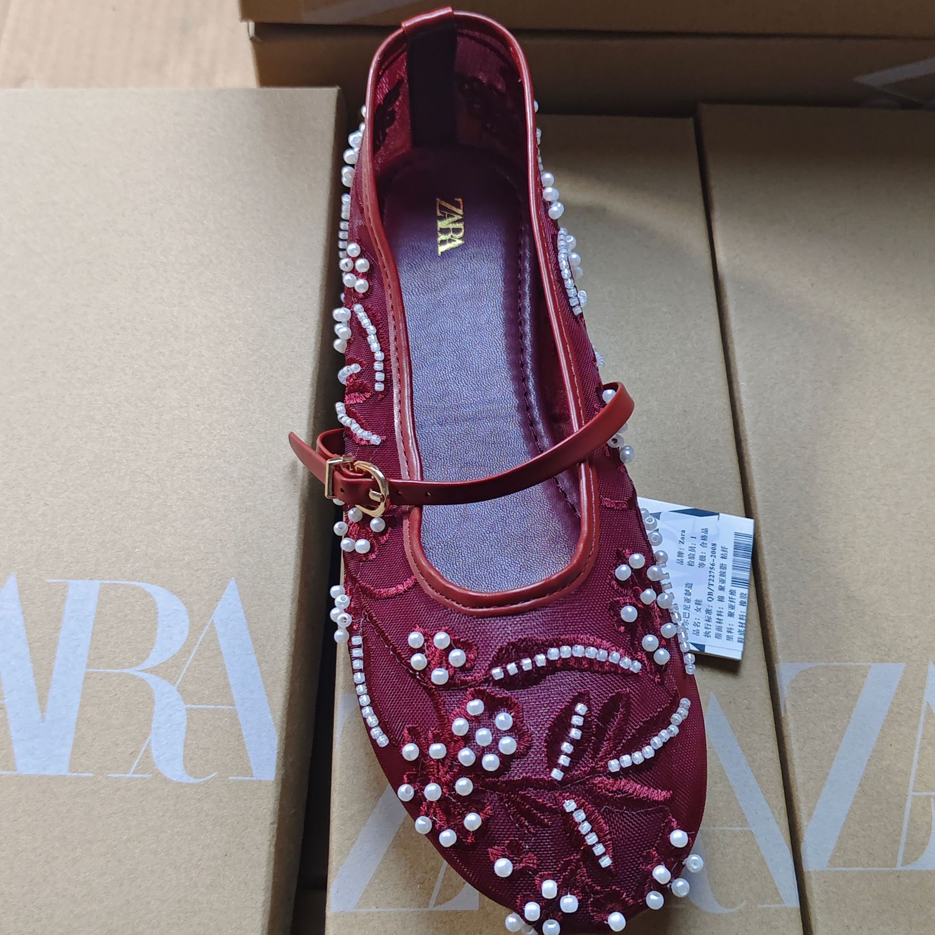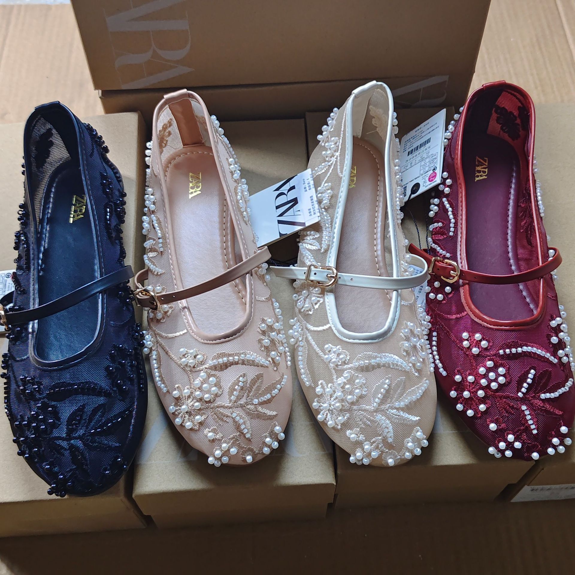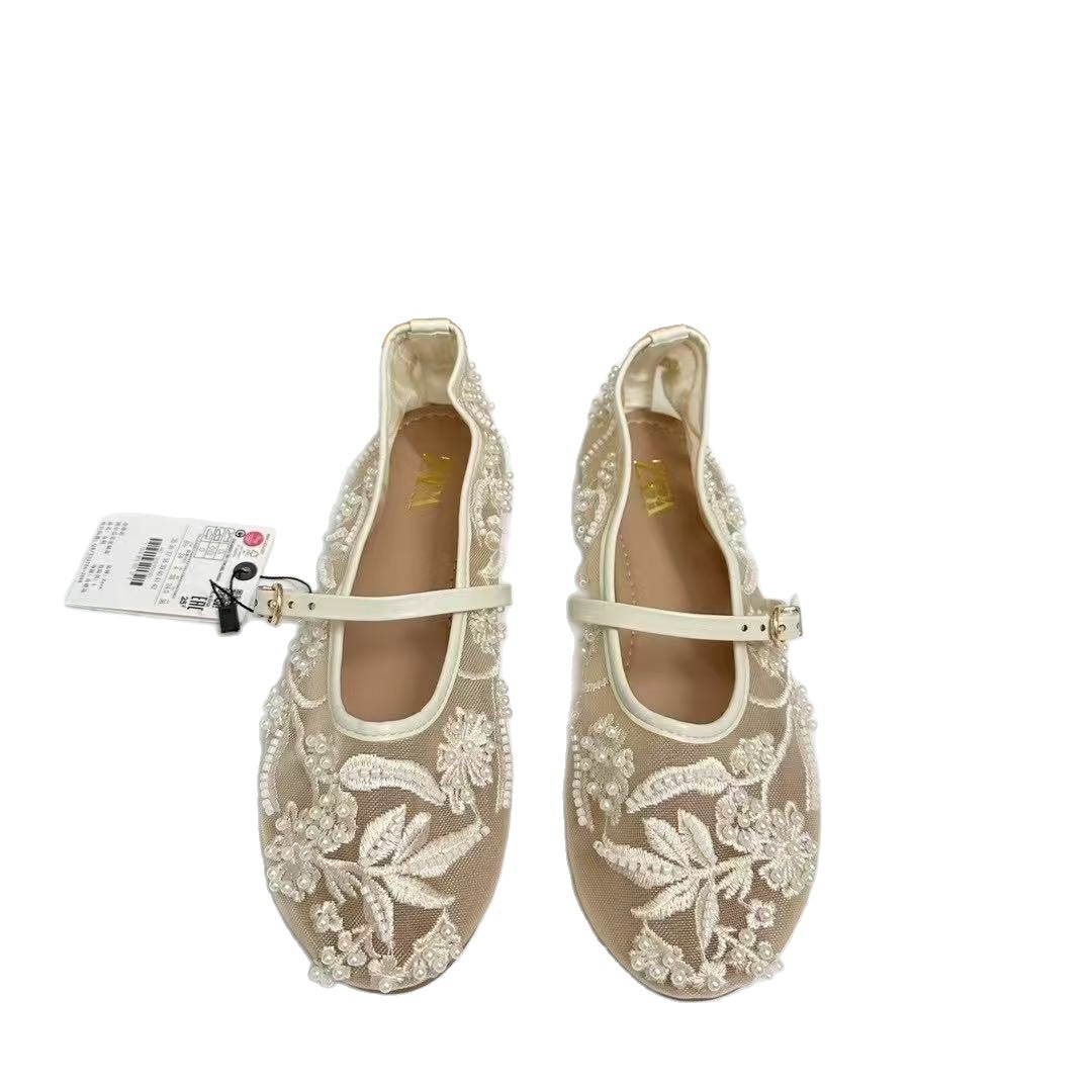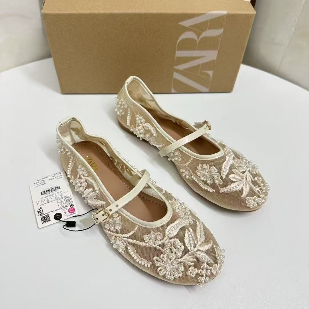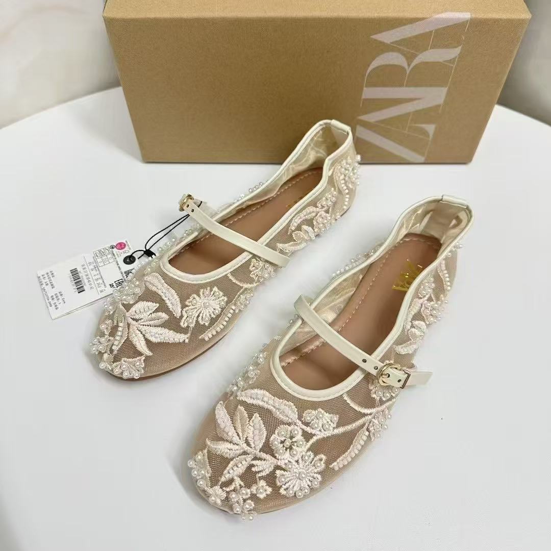 ZA 2025 New Shoes Women's Flat Mary Jane Women's Shoes New Embroidered Chinese Style Guofeng White Sandals
