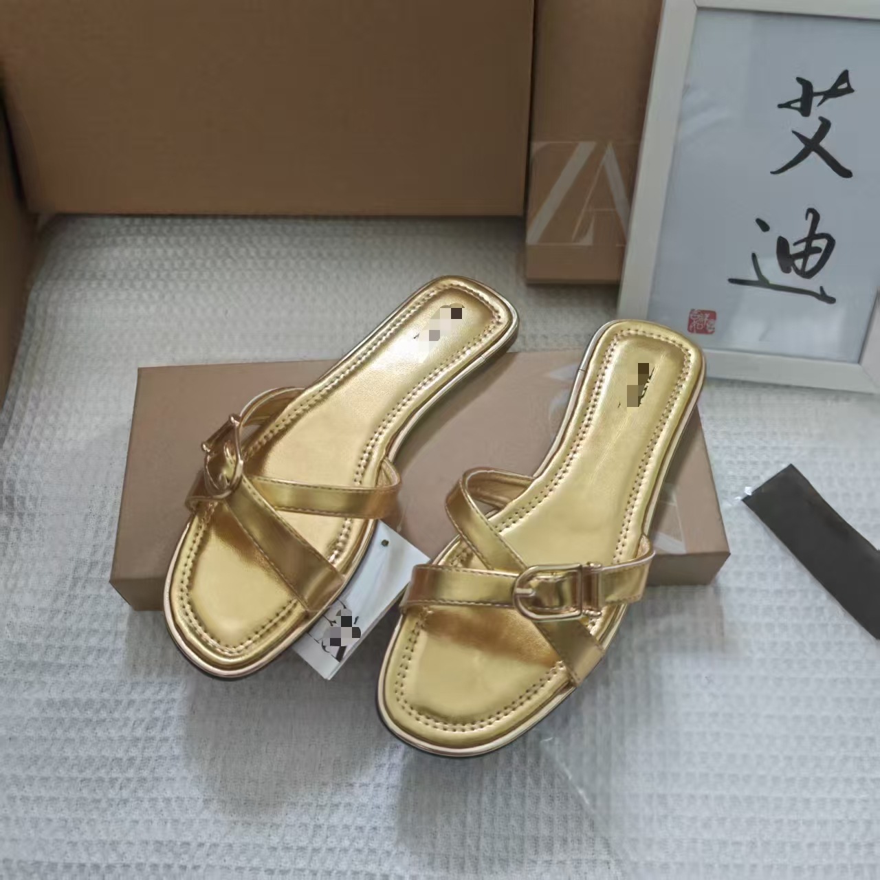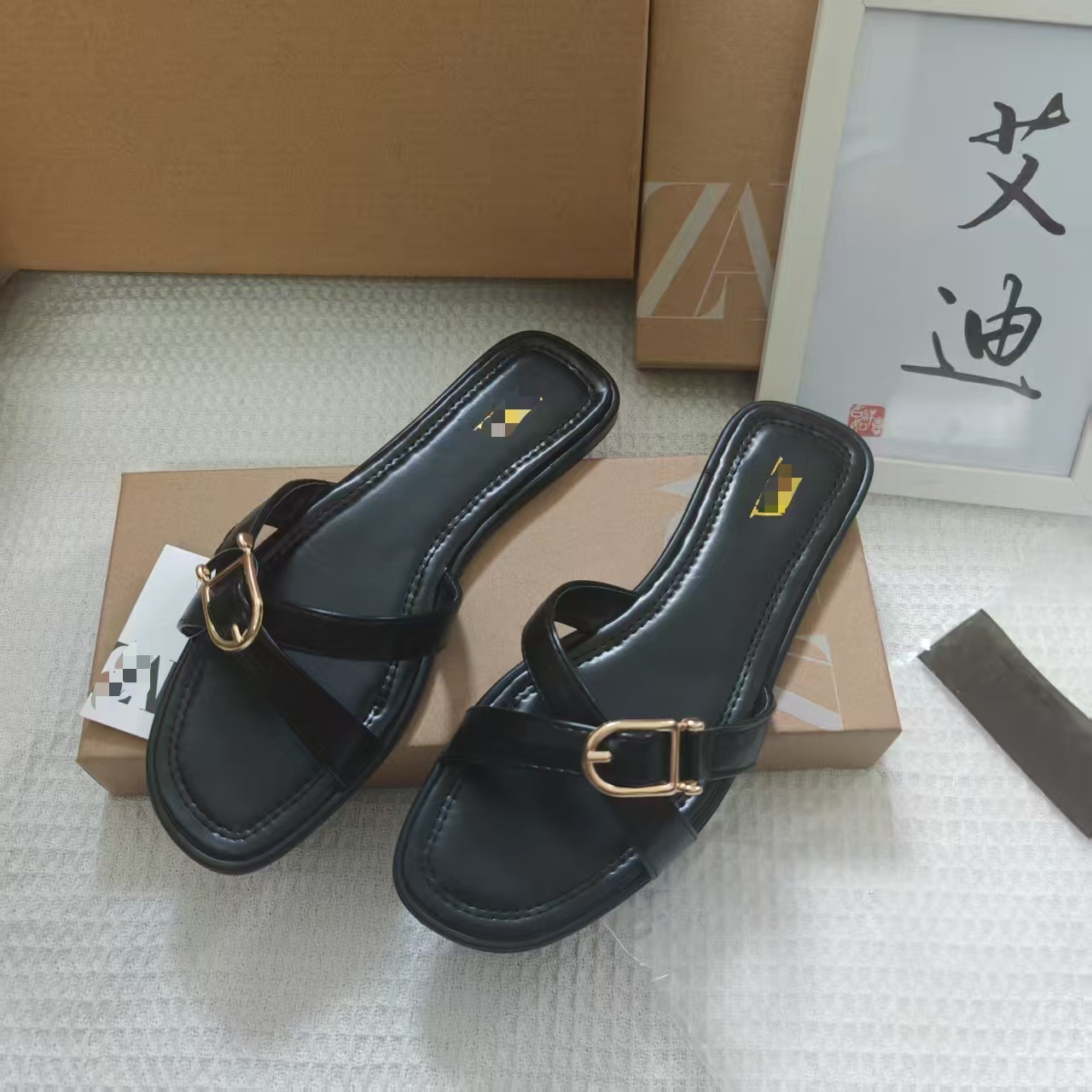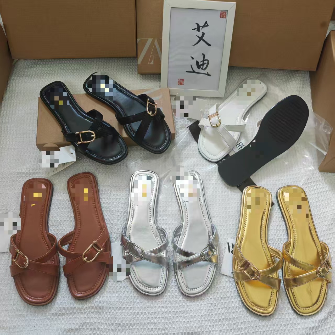 ZA Women's Shoes Flat Roman Sandals Women's 2023 Summer New Women's Fashion One Hundred Cross Buckle Shoes
