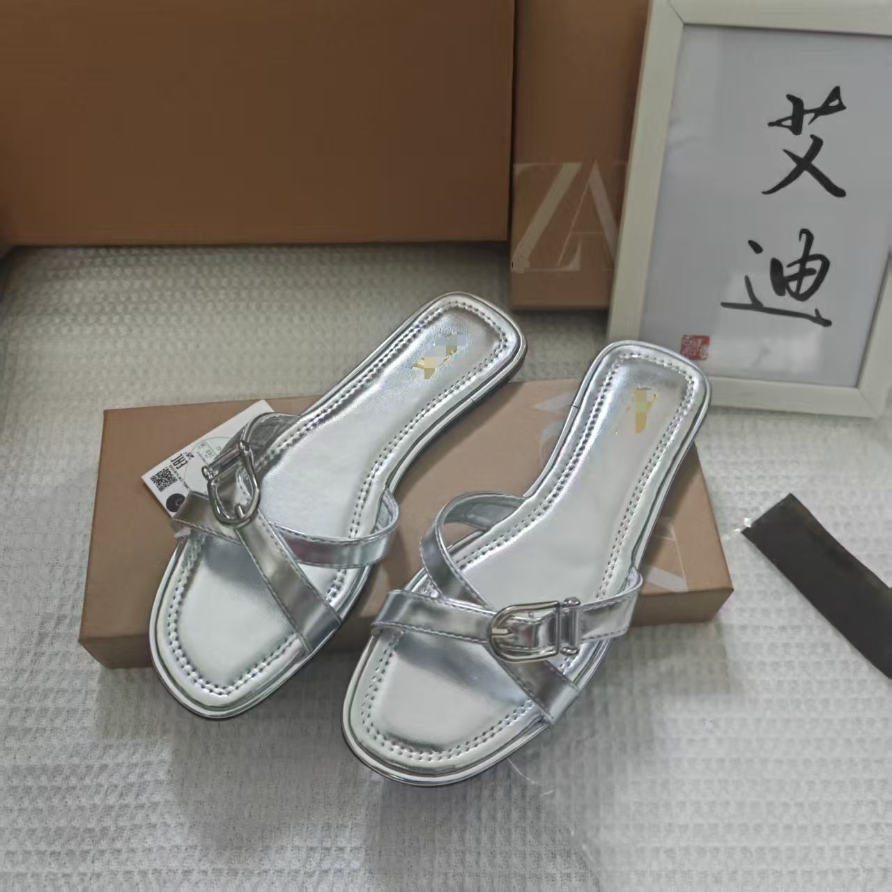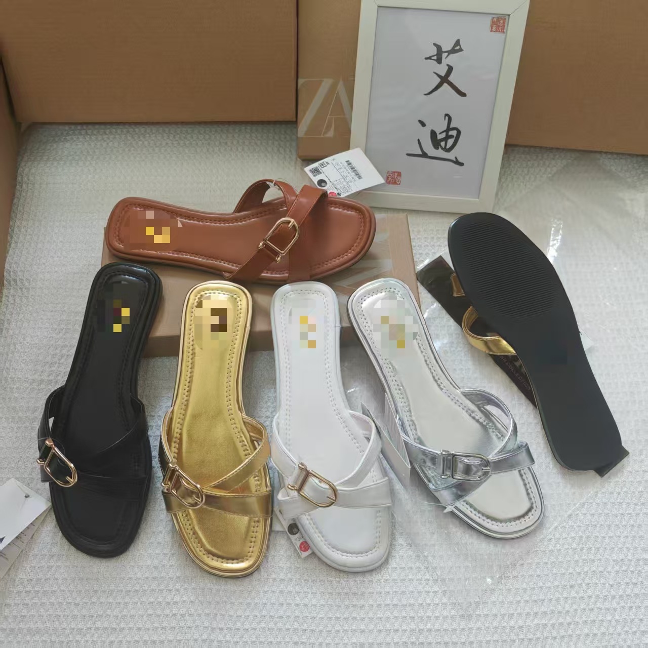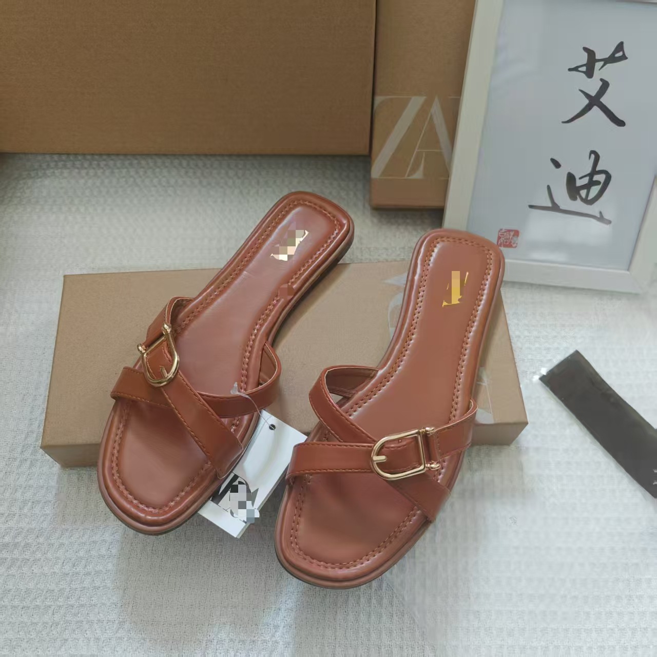 ZA Women's Shoes Flat Roman Sandals Women's 2023 Summer New Women's Fashion One Hundred Cross Buckle Shoes