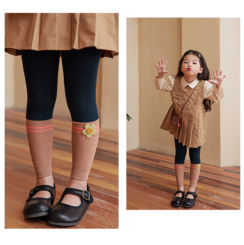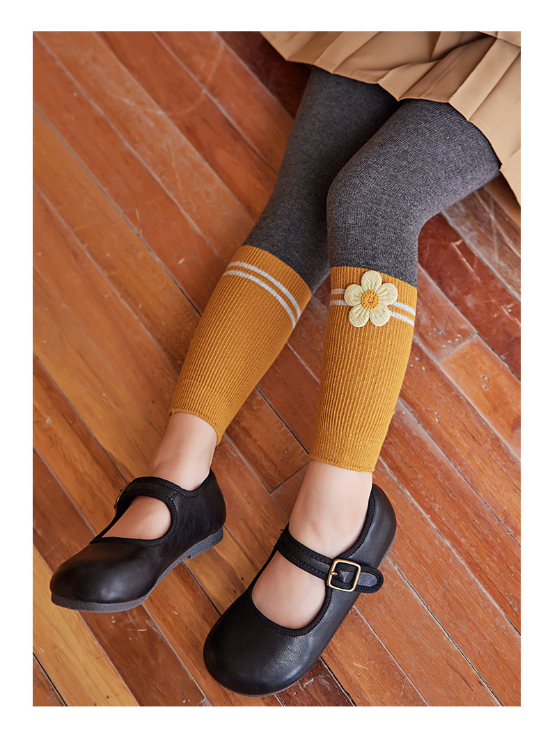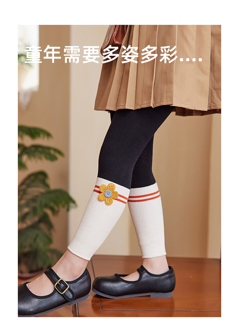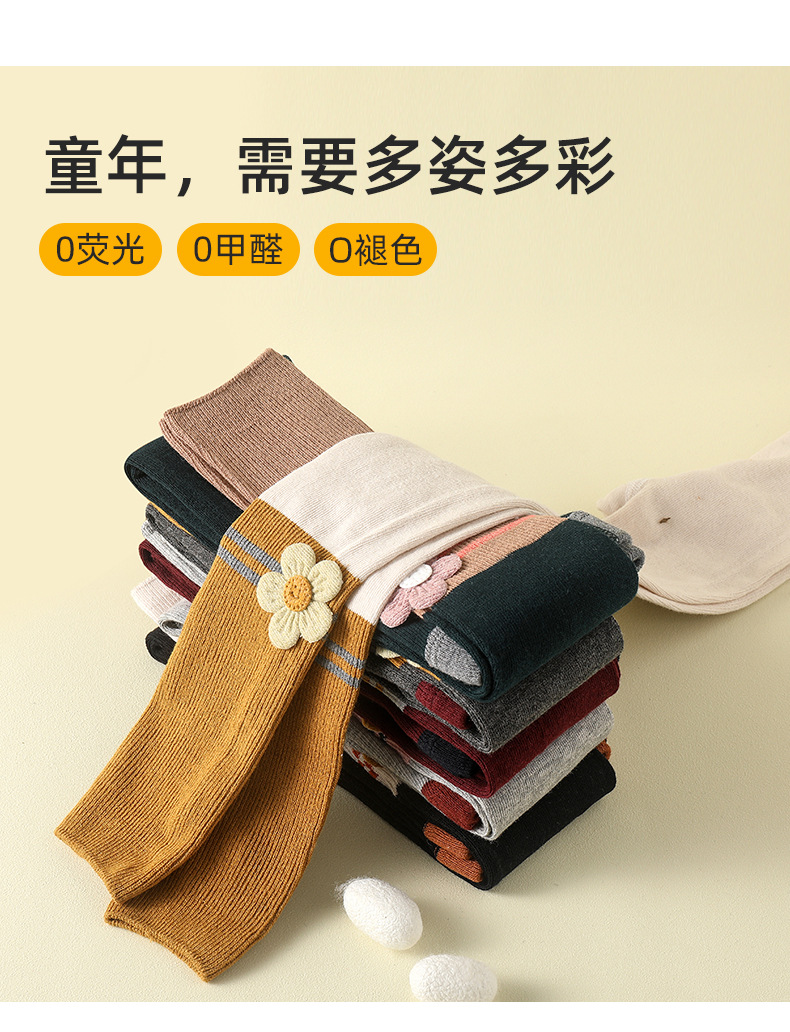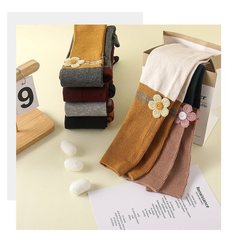 2024 Spring And Autumn New Children's Socks Contrast Color Knitted Socks Girls Nine Color Split Cotton Pantyhose Baby Leggings
