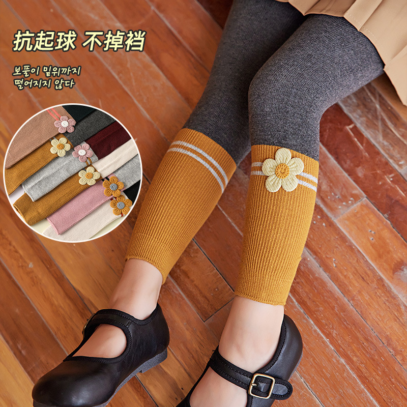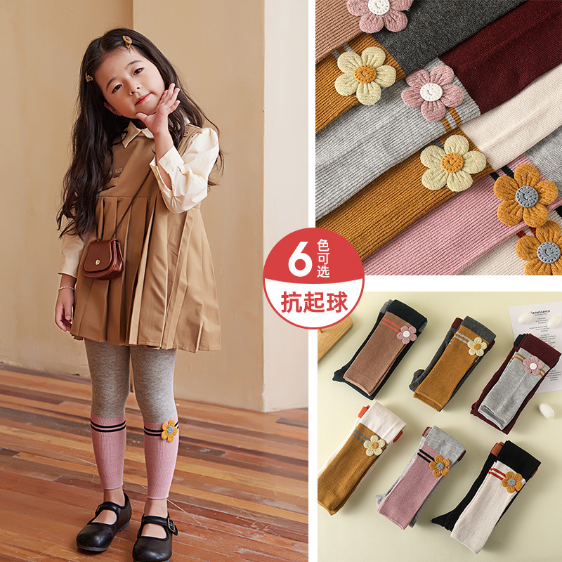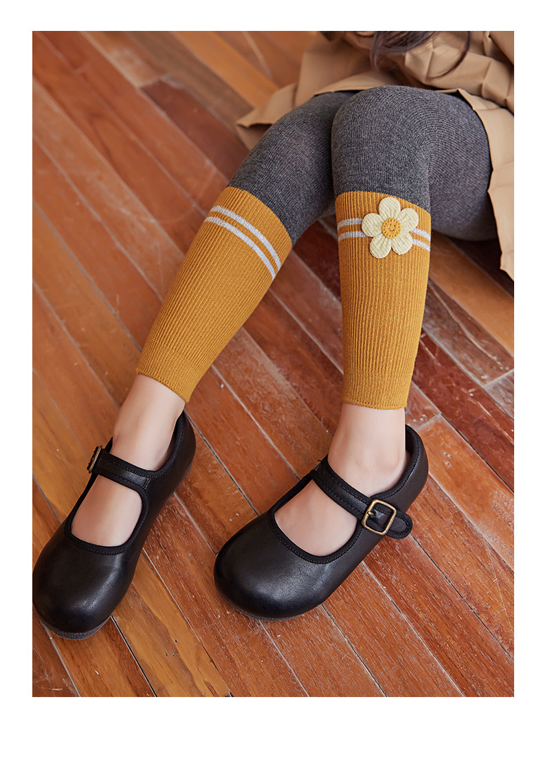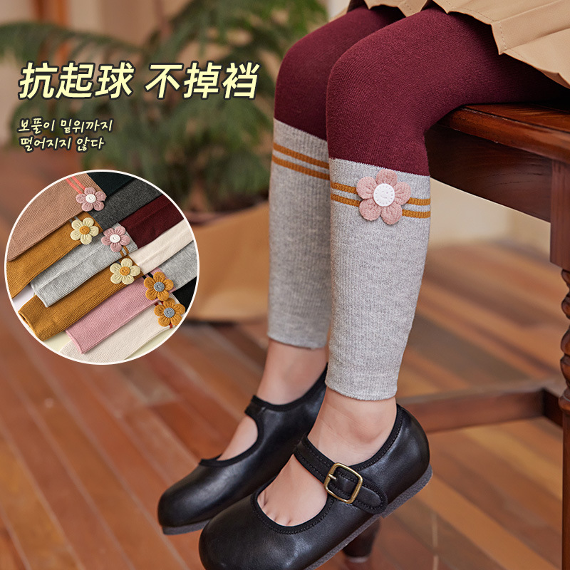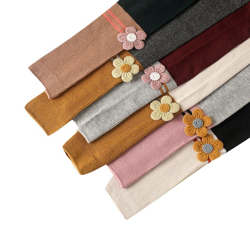 2024 Spring And Autumn New Children's Socks Contrast Color Knitted Socks Girls Nine Color Split Cotton Pantyhose Baby Leggings