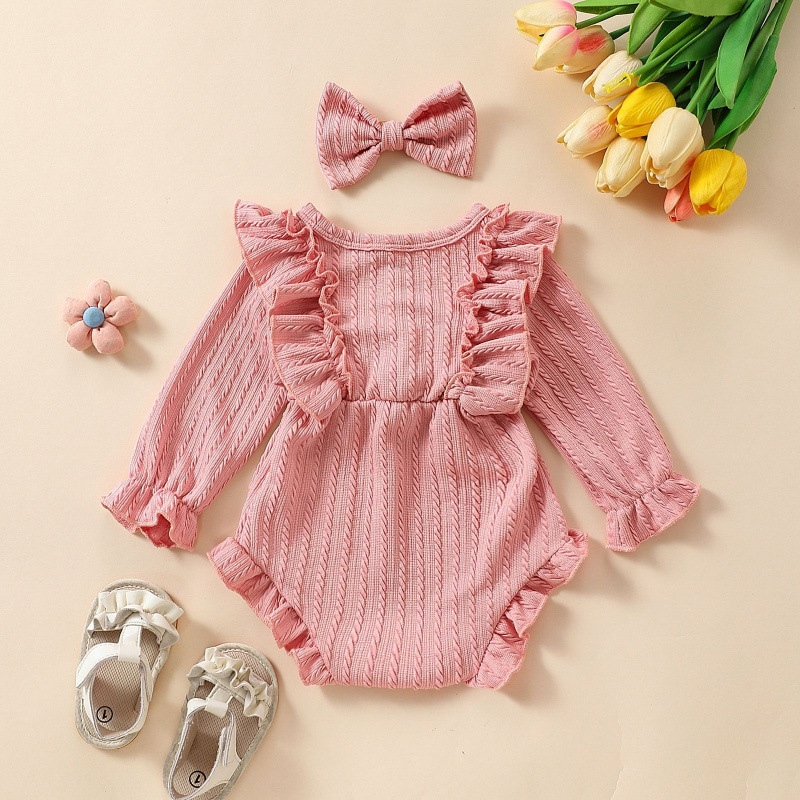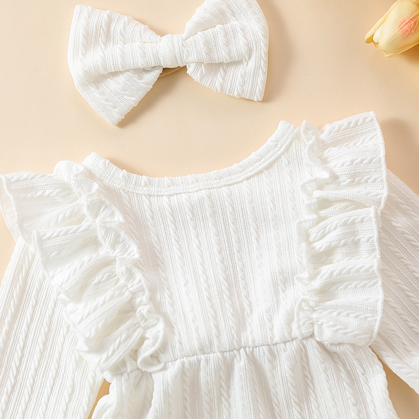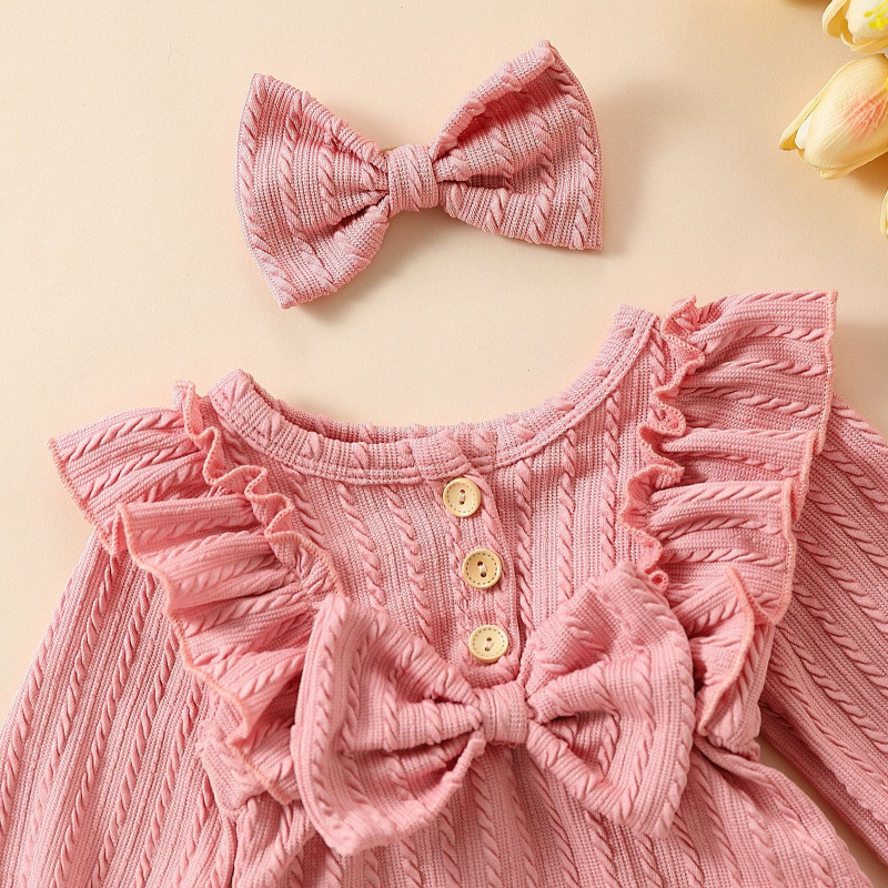 Baby Girl Princess Long Sleeve Bow Pit Strip Hare Two-Piece Set Sweet Style Wear