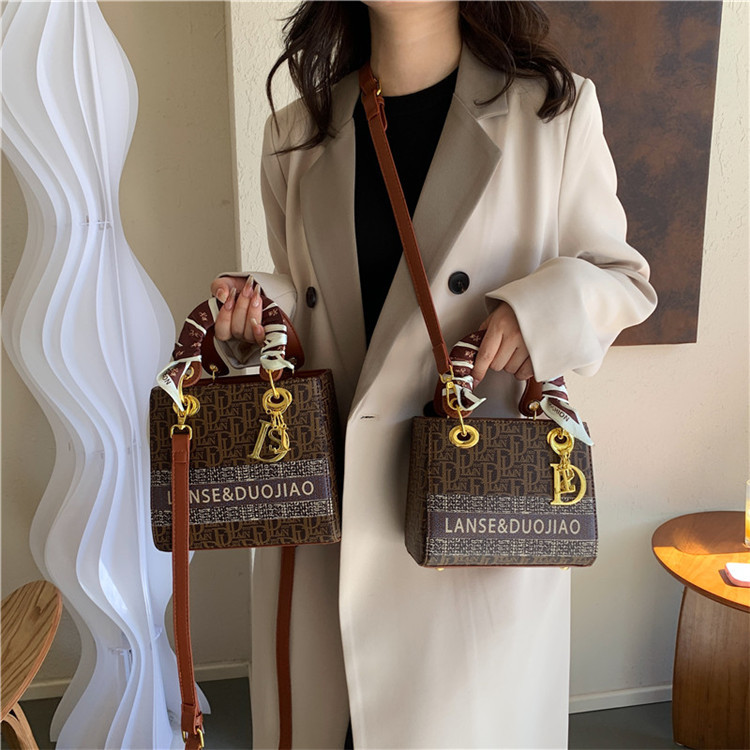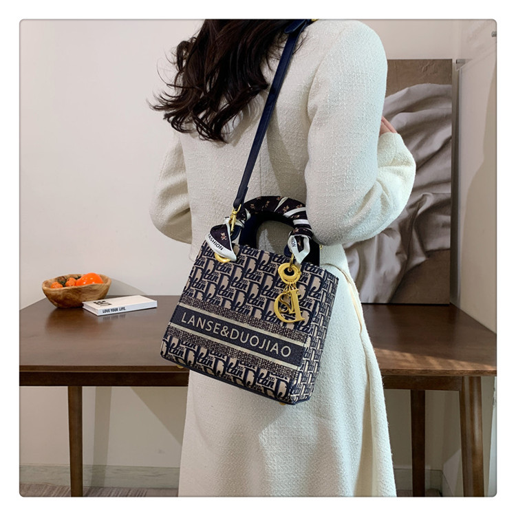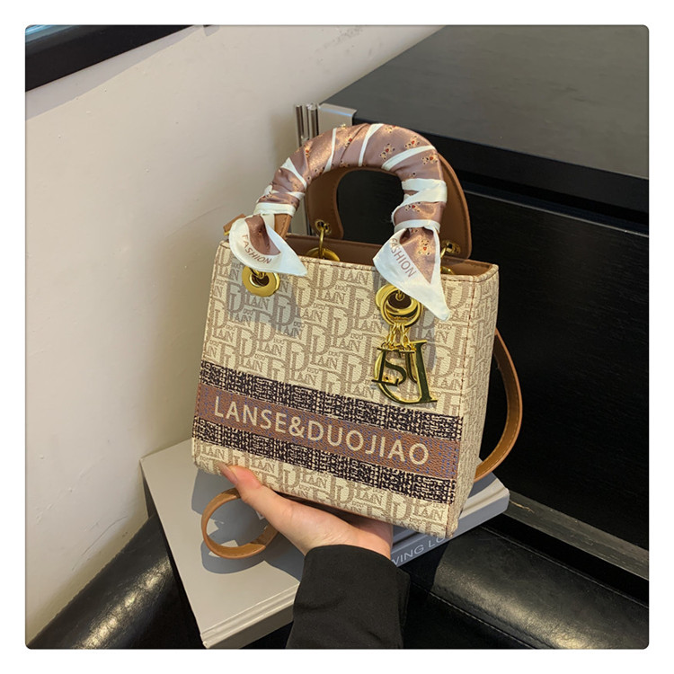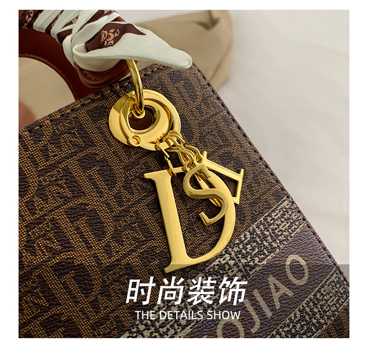 Cross-border European And American Bag Women's 2025 New Simple Fashion Large Capacity Printed Women's Handbag Silk Scarf Daffy Bag