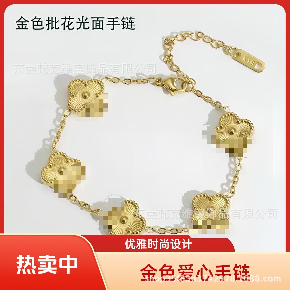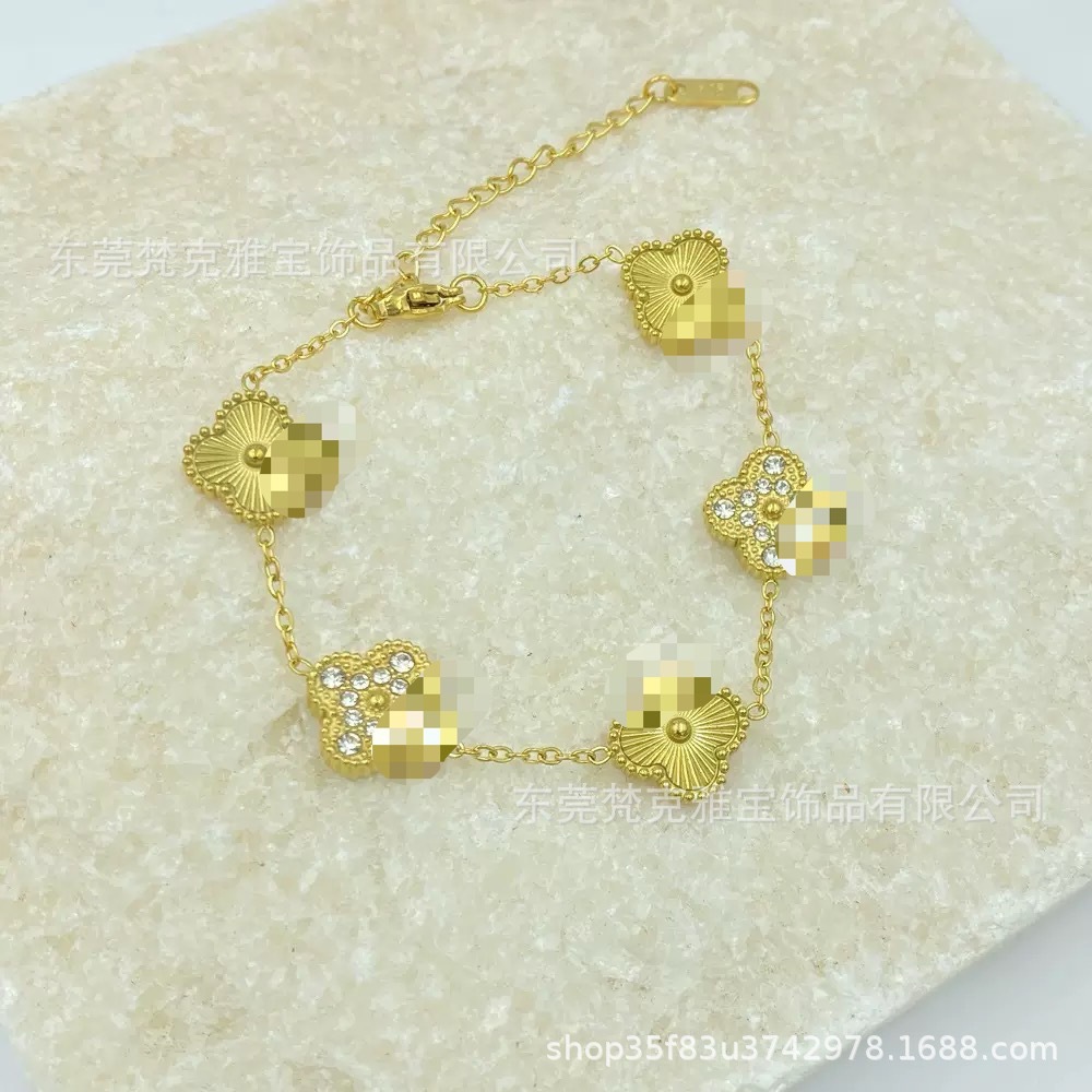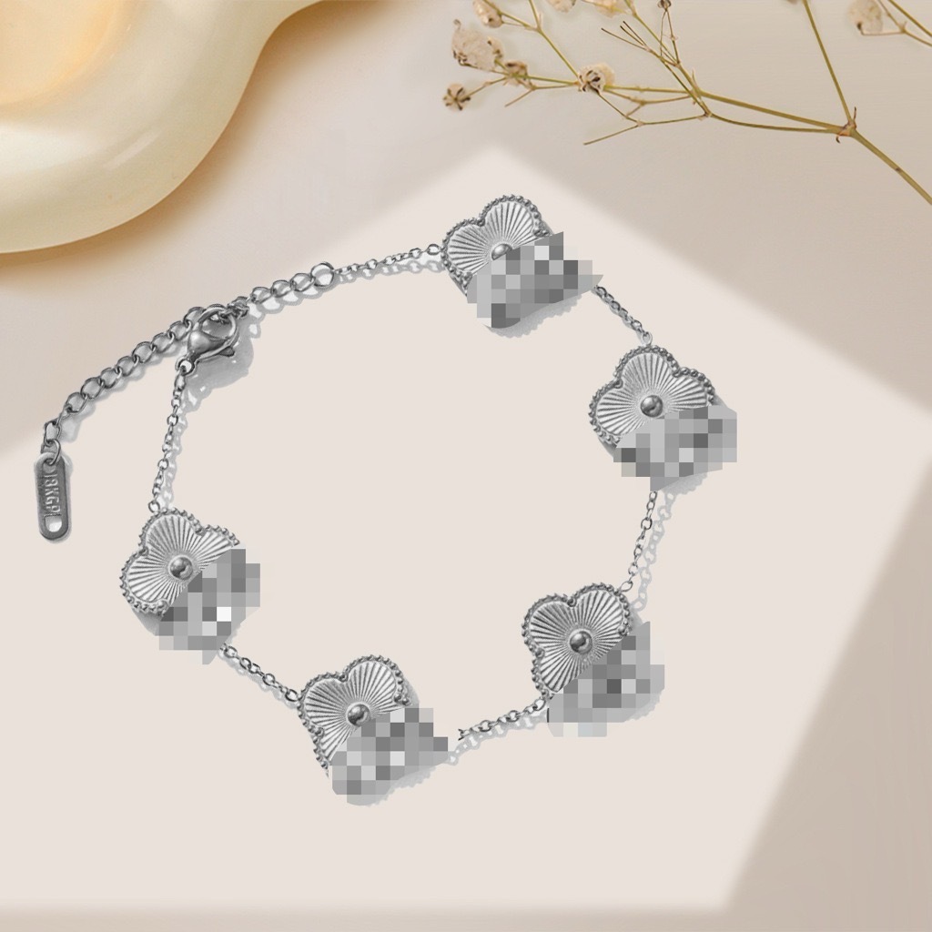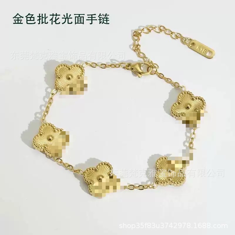 Cross-border Explosions 18K Laser Clover Stainless Steel Jewelry Women's Five-flower Laser Bracelet Light Luxury All-match Four-leaf Clover