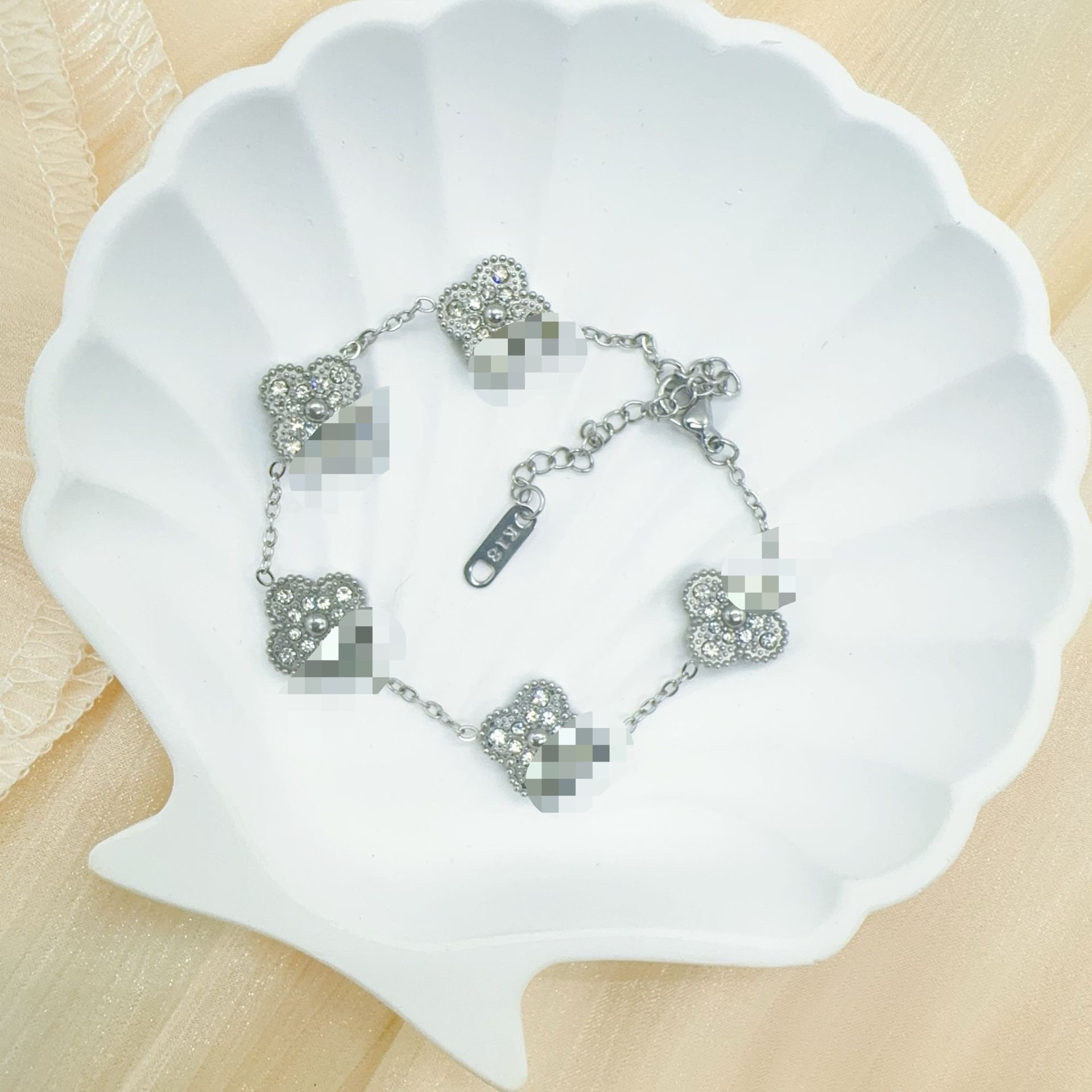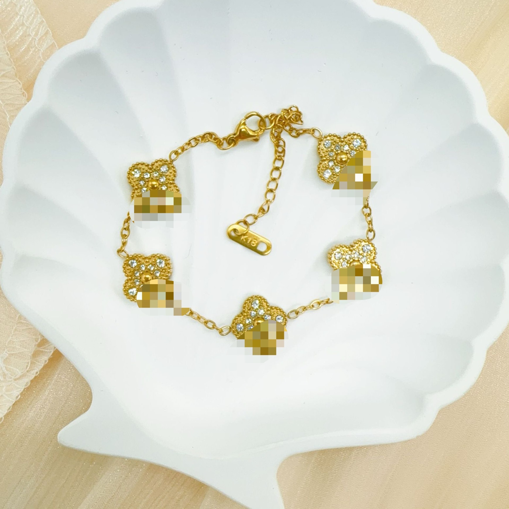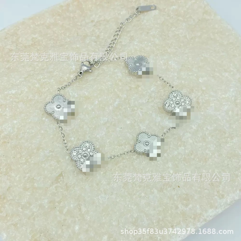 Cross-border Explosions 18K Laser Clover Stainless Steel Jewelry Women's Five-flower Laser Bracelet Light Luxury All-match Four-leaf Clover