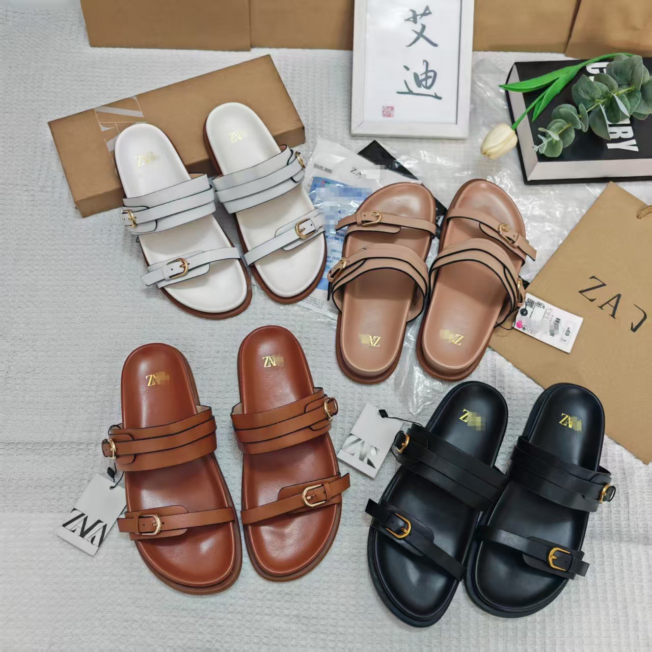 Eddie Shoes Ins Explosions Cross-border ZAR Original Single Women's Sandals One-word Slippers Platform Slippers Flat Shoes Wholesale