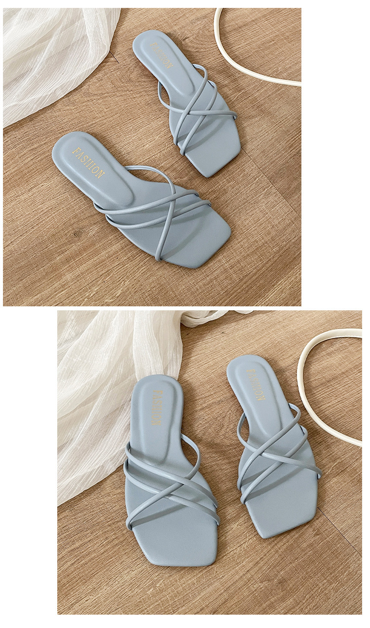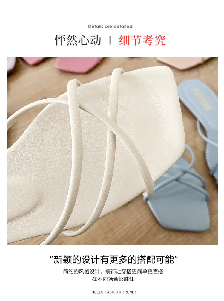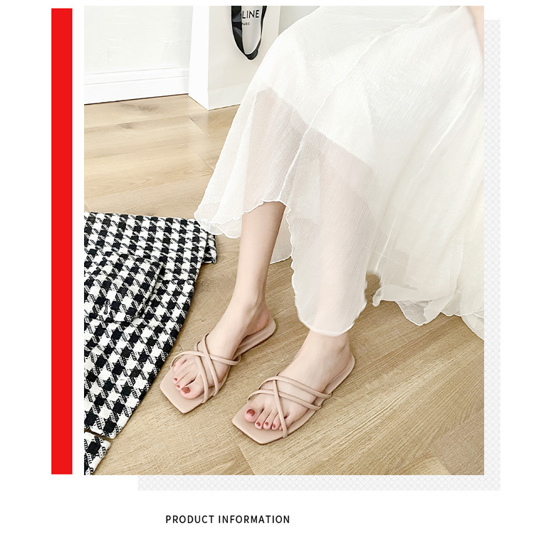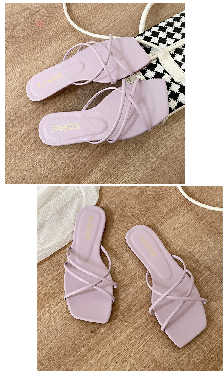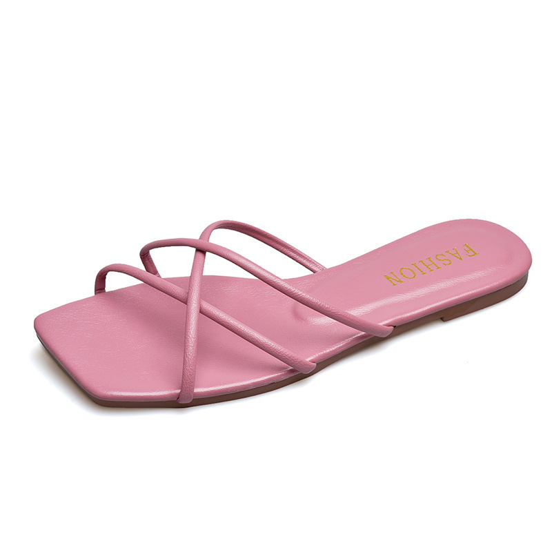 Fairy Style Slippers Women's New Summer Outer Wear Korean Style Simple Thin Strap Square Toe Flat Beach Slippers Trendy