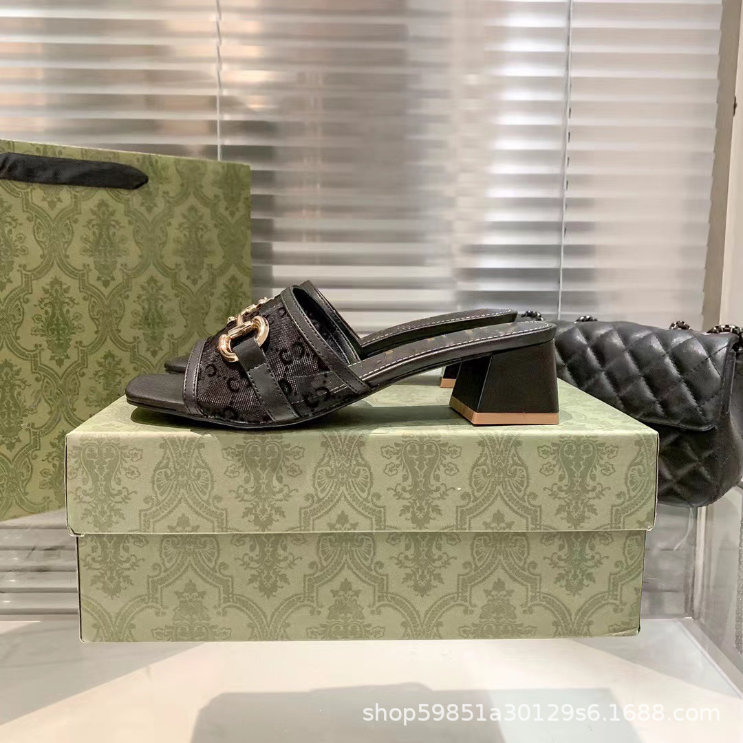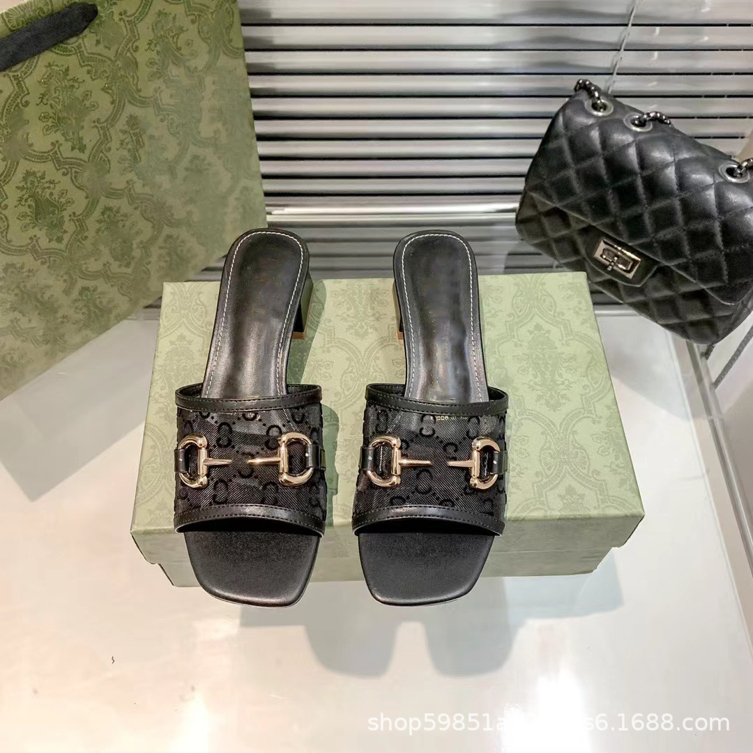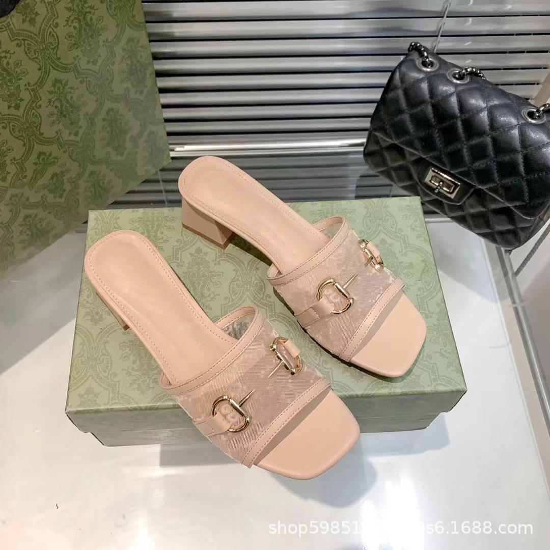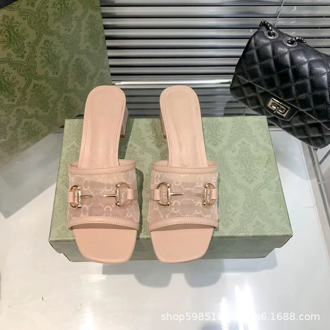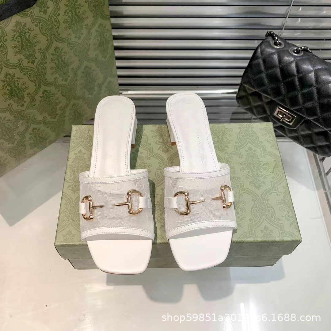 High Version French Elegant Horse Buckle Sandals Fashion Sandals Thick Heel Mesh Fish Mouth High Heel Women's Sandals