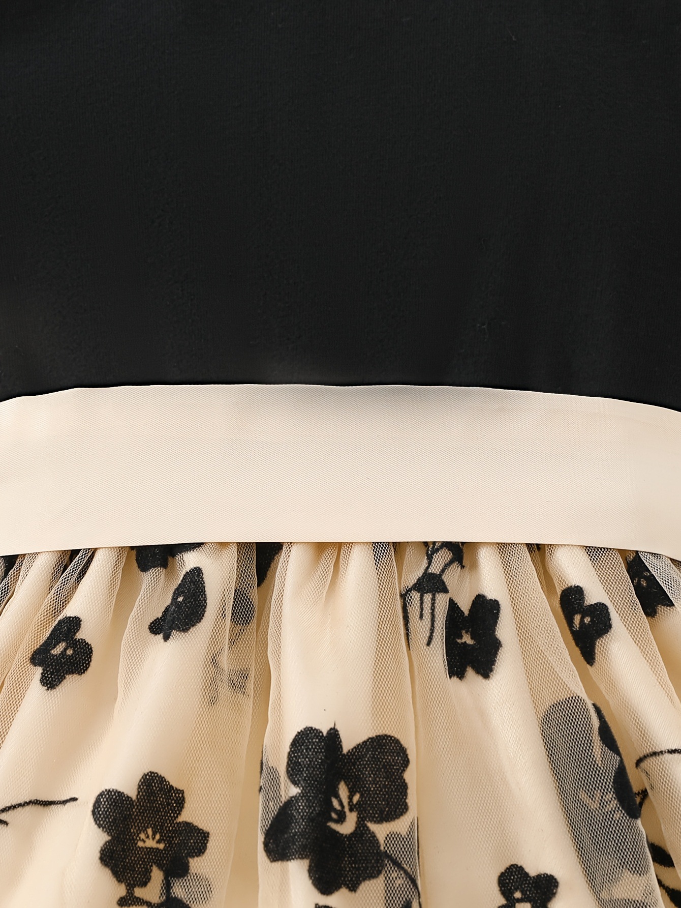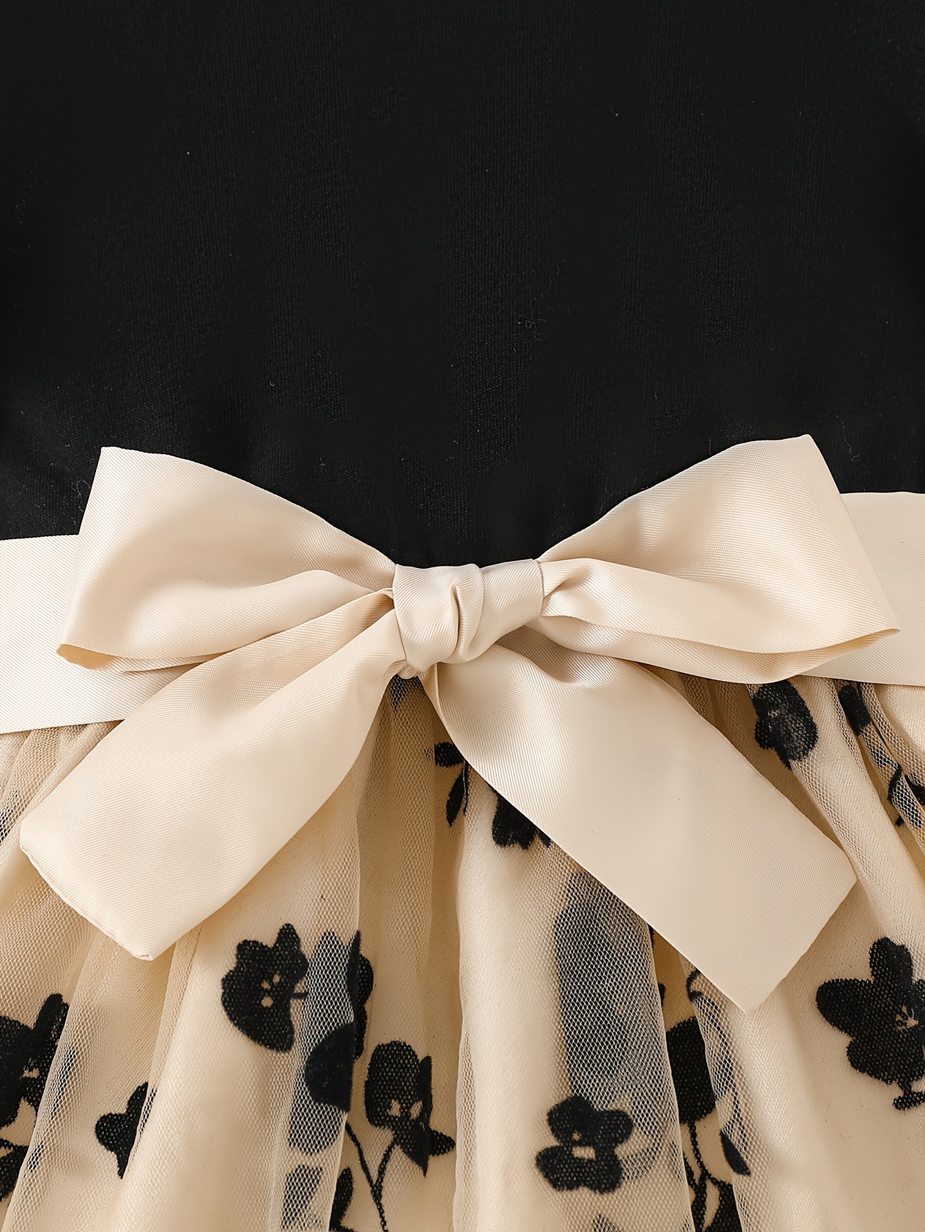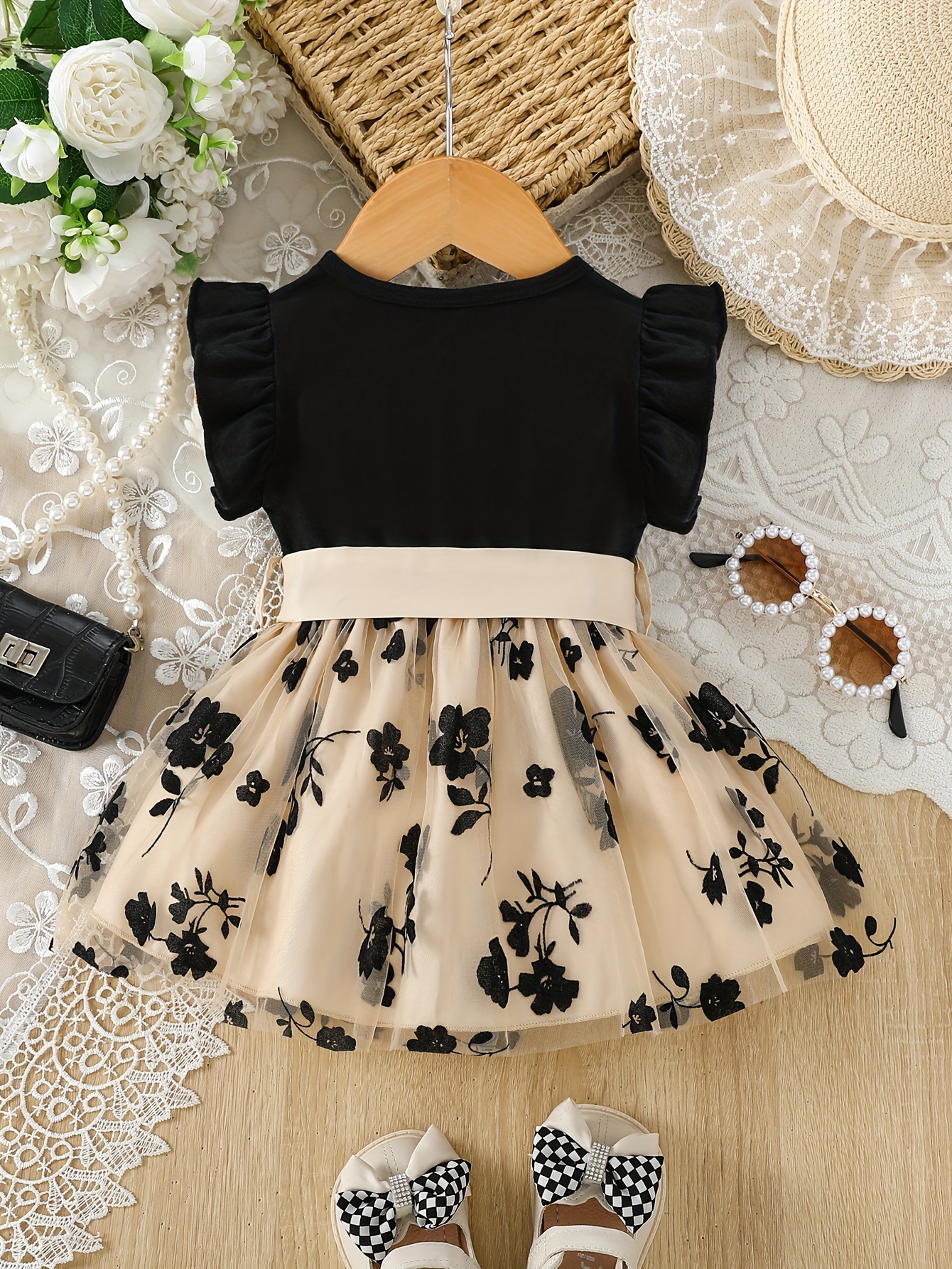 New Girls Mesh Embroidered Dress Flying Sleeve Stitching Bow Princess Dress Children's Dress