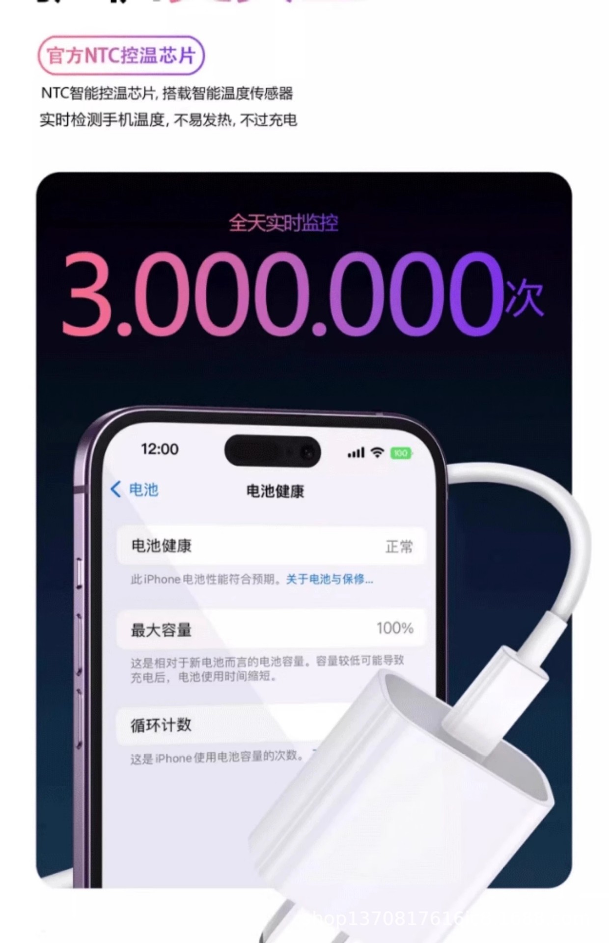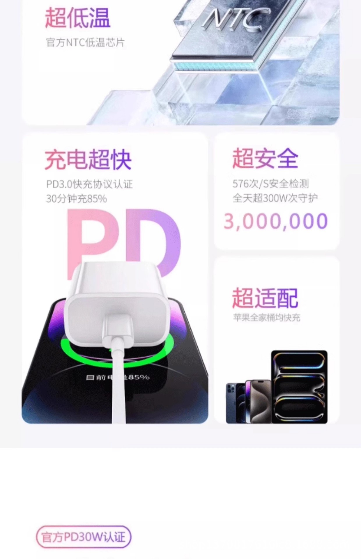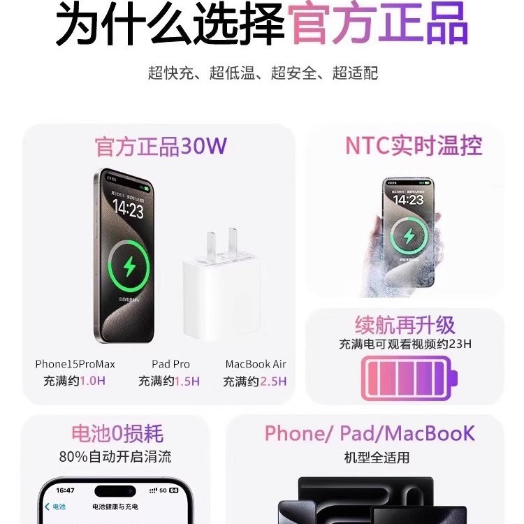 [applicable IPhone8_14] 30W Power Adapter 2.0 Meters C- Lighting Fast Charging Line