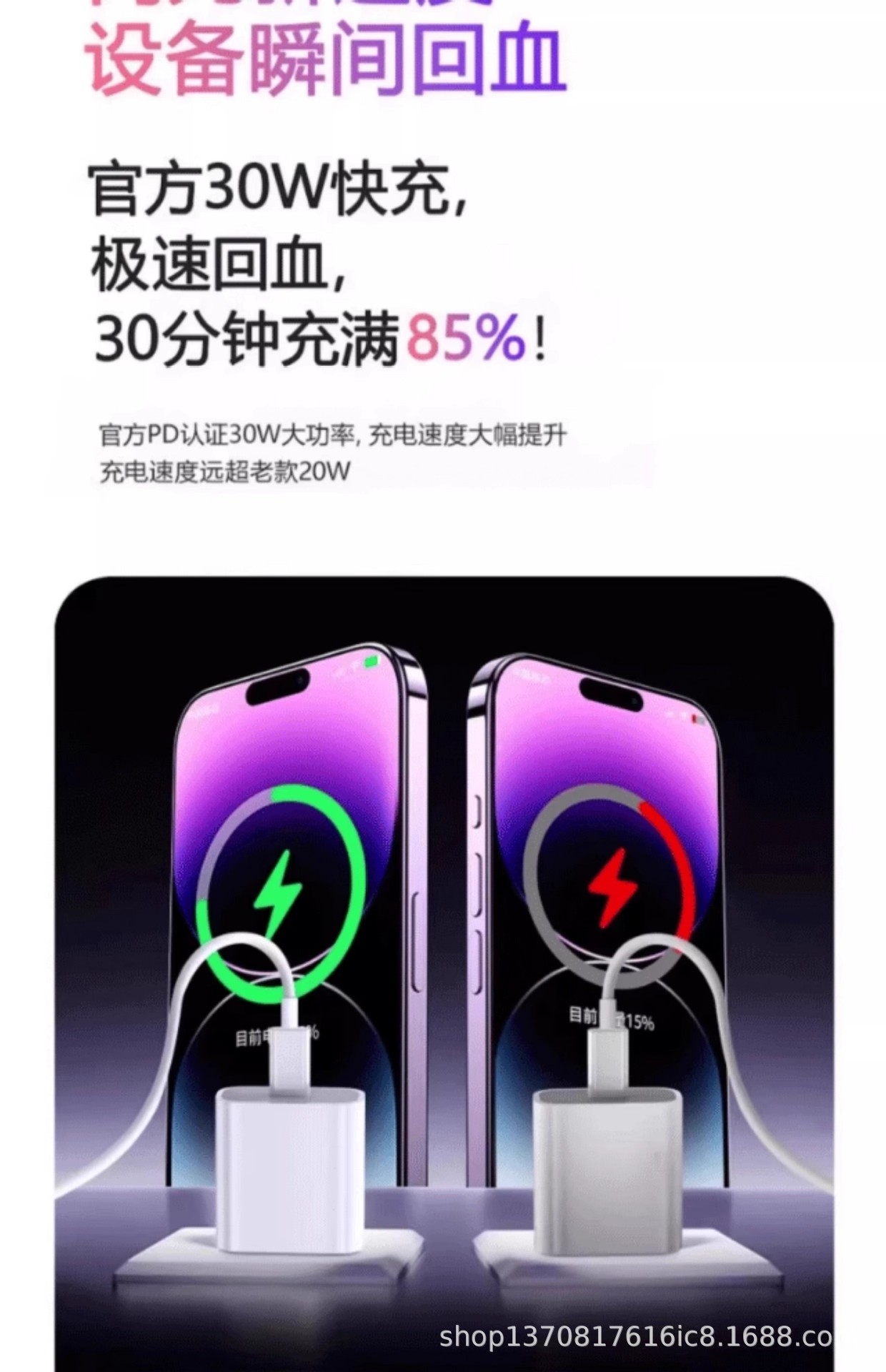 [applicable IPhone8_14] 30W Power Adapter 1.0 Meters C- Lighting Fast Charging Line